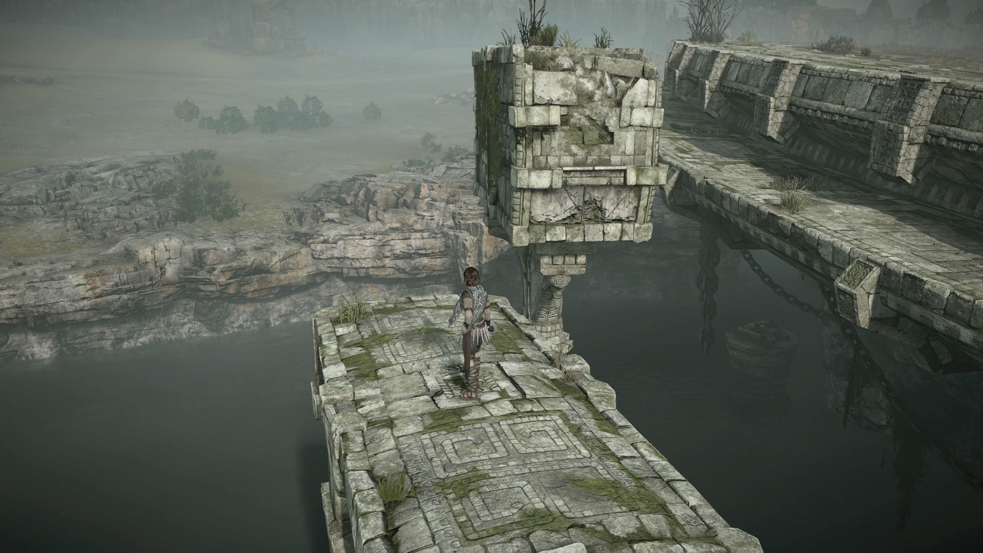 Lokacje wyglądają niesamowicie. Wypełnione są roślinnością, poruszającą się wodą i szczegółami. Jest to jednak zupełnie inny otwarty świat niż to, co znamy z dzisiejszych open worldów. Jest on przede wszystkim pusty. Nie znajdziemy tutaj innych ludzi, zwierząt czy misji pobocznych. Okazjonalnie napotkać możemy ołtarze przywracające nam życie, albo małe jaszczurki, które też możemy upolować. Ta pustka pełni jednak rolę w narracji opowiadanej tutaj historii. Mało który tytuł daje nam odczuć tego typu samotność, opuszczenie i zdanie się tylko i wyłącznie na własne umiejętności.