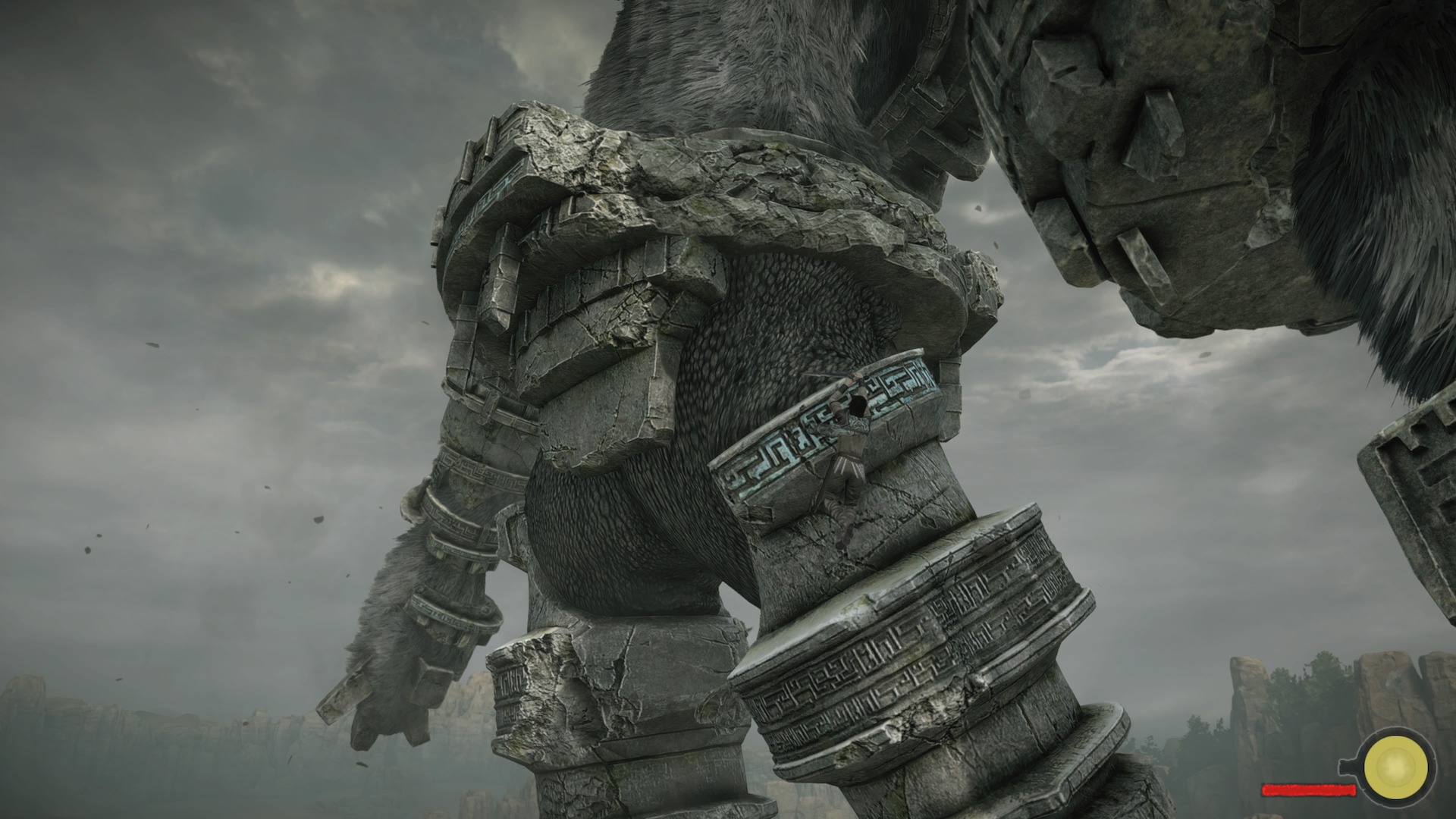 Wspinanie się po Kolosach jest ograniczone naszą wytrzymałością. Nie możemy trzymać się w nieskończoność. Od czasu do czasu będziemy musieli odpocząć. A przeciwnik może próbować nas strącić. Możemy w takim momencie chwycić się jego włosów pod warunkiem oczywiście, że nie jesteśmy wyczerpani.