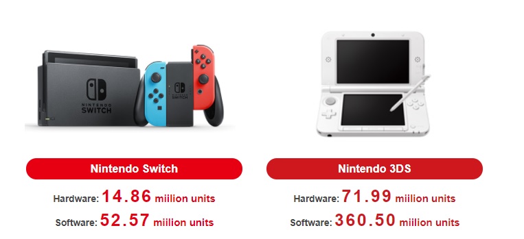 Od dnia 3 marca Nintendo sprzedało już 14,86 miliona konsol Nintendo Switch. Jest to świetny wynik, wyprzedzający w tym krótkim okresie czasu ogólną sprzedaż Wii U (13,56 mln konsol). Nieźle radzi sobie też rodzina Nintendo 3DS, składająca się łącznie z 6 konsol. Niewiele brakuje już do przekroczenia łącznie 72 milionów konsol. W przypadku gier Switch osiągnął już ponad połowę wyniku wygenerowanego przez Wii U od swojej premiery.