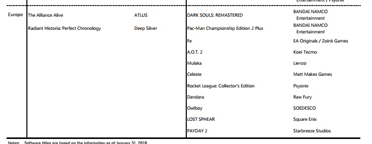 - Xenoblade Chronicles 2 (premiera: 1 grudzień 2017) – 1.06 mln sztuk