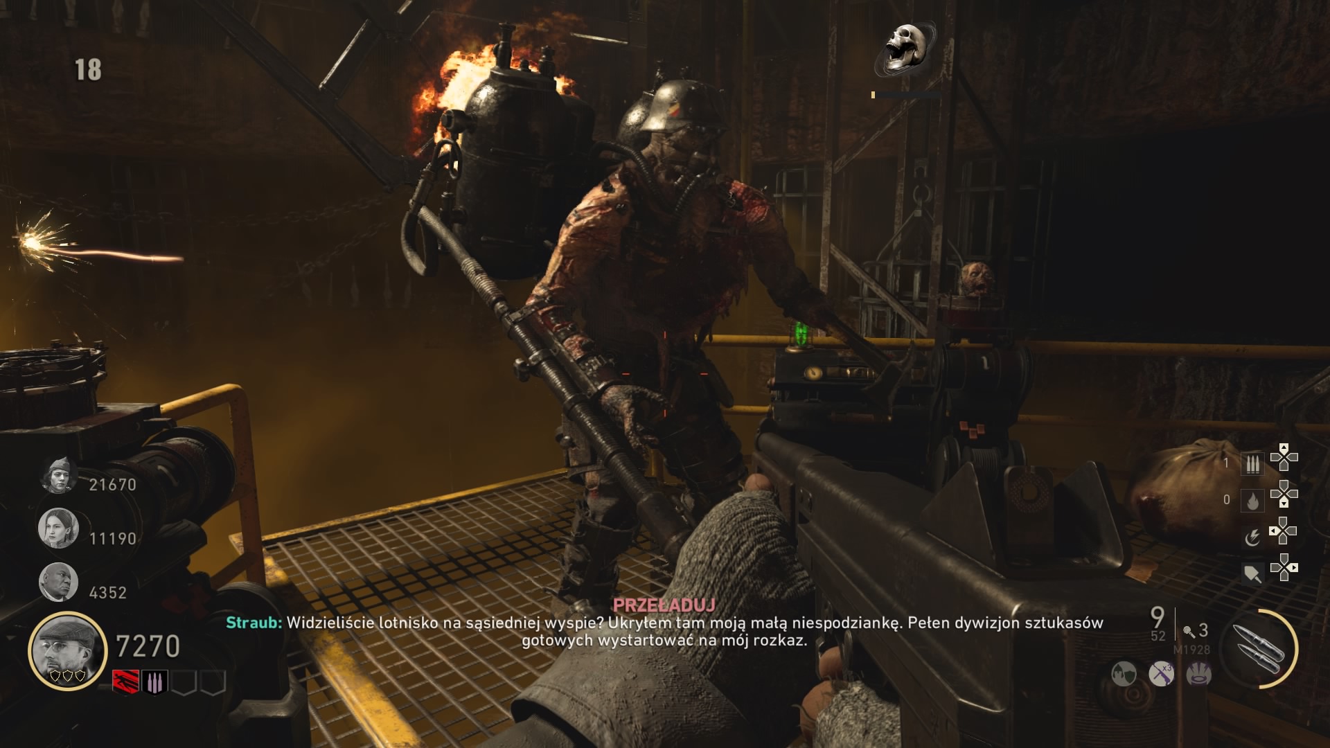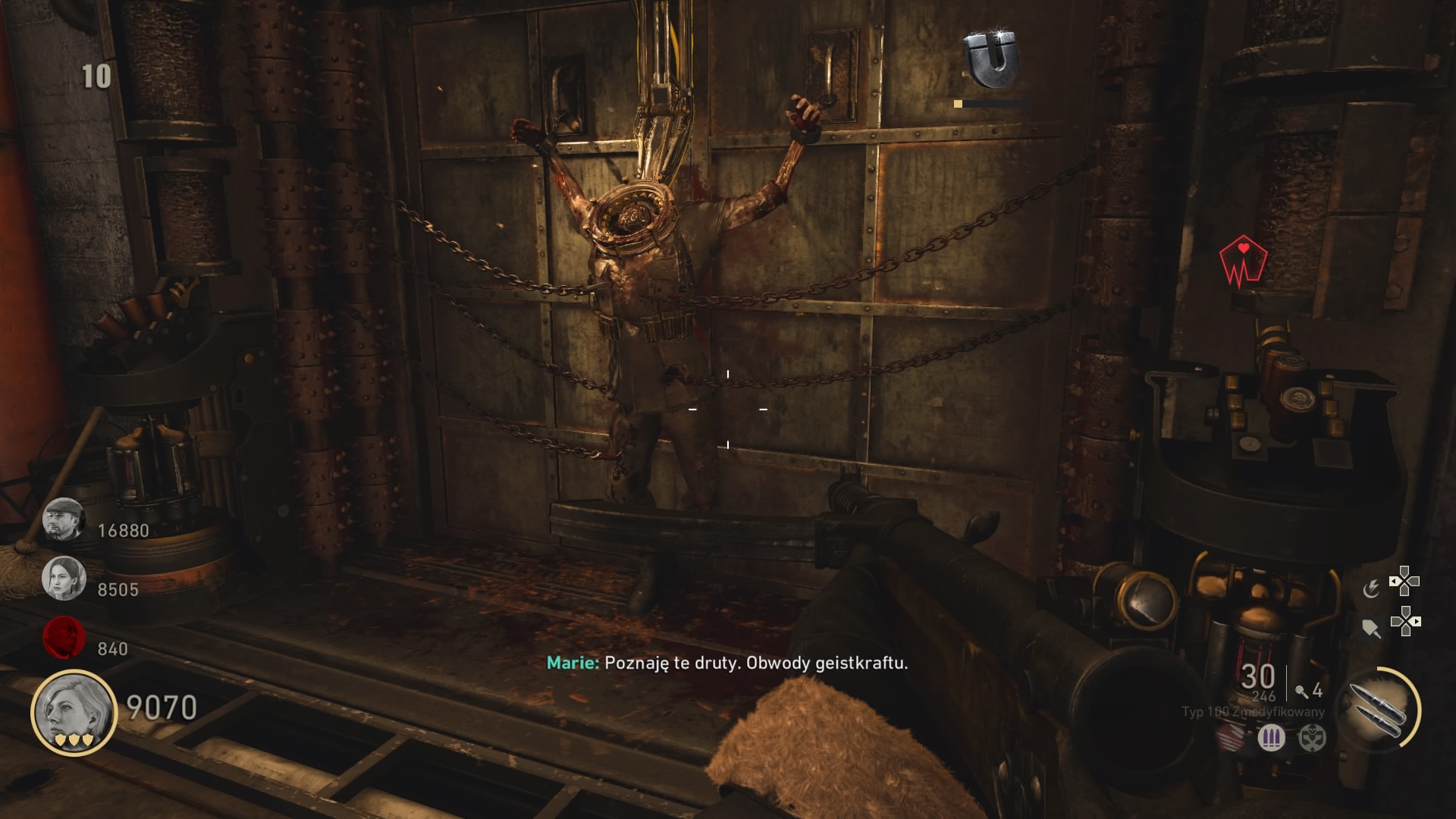 Po mrocznych wydarzeniach w Mittelburgu nasi śmiałkowie Marie, Drostan, Olivia i Jefferson trafiają na tajemniczą wyspę na północy od wybrzeży Niemiec w poszukiwaniu dr. Strauba. Zmagania zaczynają się bardzo nietypowo, nasza drużyna po wylądowaniu na brzegu jest od razu atakowana przez hordę zombie, która wychodzi na nich z wody. Przyznam, że taki początek bardzo mnie zaskoczył, na tyle, że LKM, który był zamontowany w oddali dostrzegłem dopiero po uporaniu się z pierwszą falą przeciwników z pistoletów. Wyspa na której się znaleźliśmy wypełniona jest działami przeciwlotniczymi oraz dokiem dla U-Botów. Standardowo na całej wyspie znajdują się bramy, które blokują drogę w głąb nowej krainy, nie brakuje automatów z dodatkowymi perkami, pancerzami oraz oczywiście pułapek. Na szczycie niewielkiego wzgórza umieszczono bunkier, w którym musimy włączyć zasilanie, a one odblokuje nam kilka bram oraz wagonik górski, ten z kolei zabierze nas do wnętrza wzgórza oraz na jego drugą stronę. Osobiście z przypadkowymi graczami udało mi się dotrzeć do 29 fali. W tym czasie cały czas biegaliśmy po wyspie i uruchamialiśmy kolejne urządzenia. Niestety zagadki są dużo trudniejsze niż podstawowej przygodzie, ale za to nowa wyprawa nie jest niestety mroczna. Tak naprawdę strasznie robi się tylko, gdy wyspę co kilka fal pokrywa mgła i praktycznie nic nie widać. Wtedy można poczuć nutkę strachu i dezorientacji, ale nic więcej, poza tym odniosłem wrażenie, ze zombie we mgle także poruszają się wolniej i w mniejszej grupie łatwiej ich zabić. Przygoda “na brzegu mroku” nie jest zła, ale jednak nie wciąga tak bardzo i nie jest tak mroczna, jak ta dostarczona z pełną wersją gry.