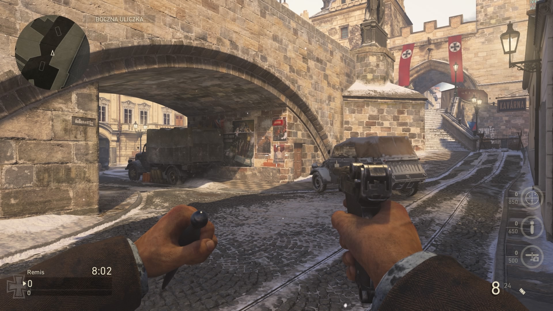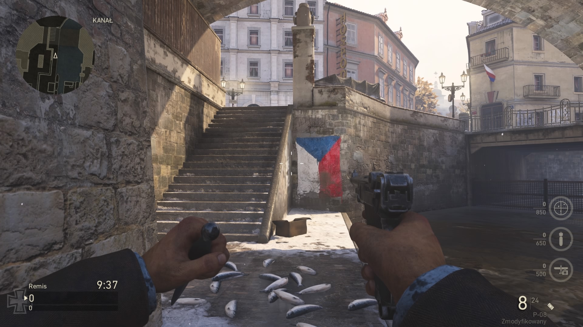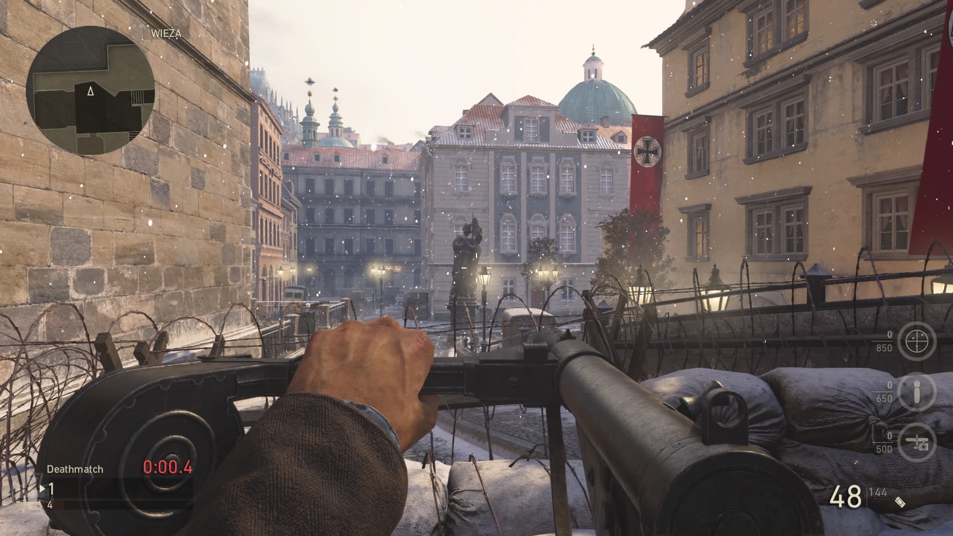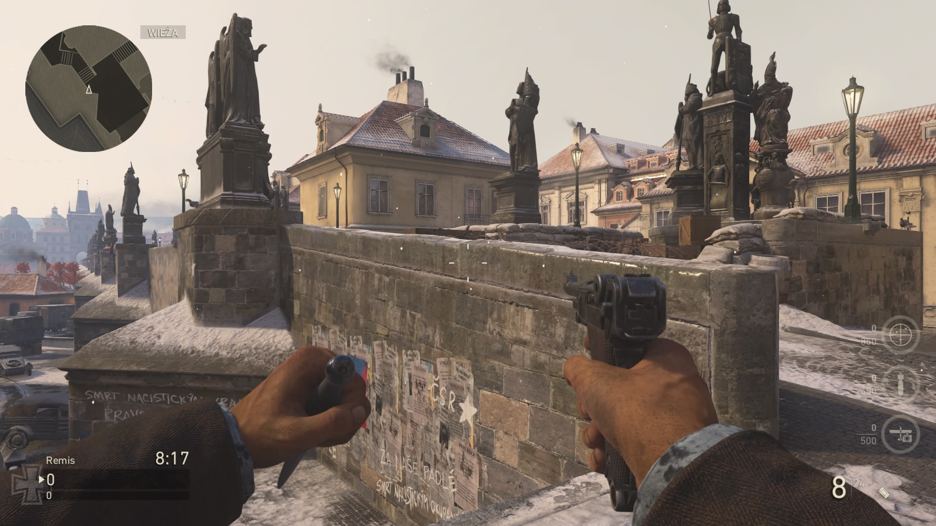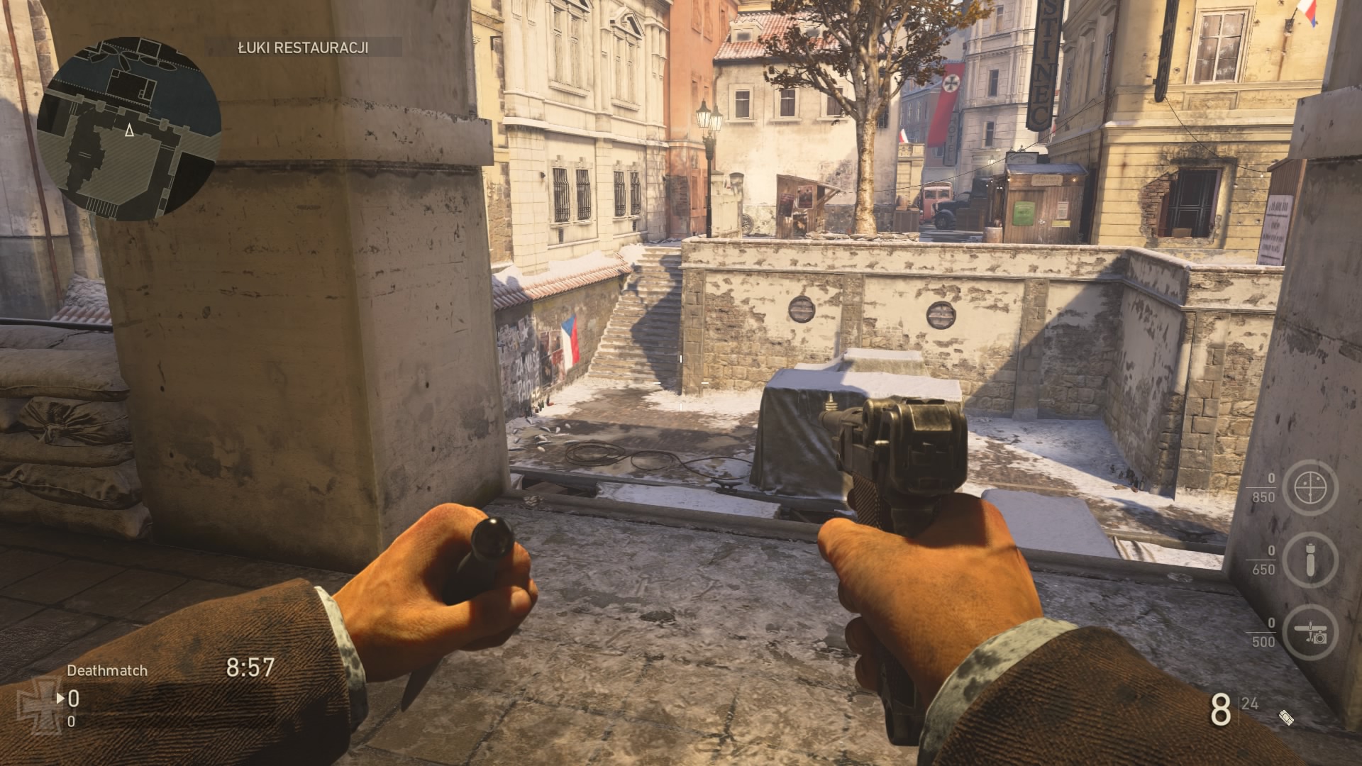 Ostatnią i najmniej udaną mapą pod względem rozgrywki jest Anthropoid, która umiejscowiona została w czechosłowackiej Pradze. Na pierwszy rzut oka mapa jest naprawdę ładna, to kolejna miejska miejscówka. Jednak tutaj nie wbiegamy do budynków, tylko walki toczymy miedzy pomnikami, czy straganami z owocami. Jest tutaj także kanał z wodą, w której możemy zanurkować. Mapa naprawdę pokazuje całe piękno Pragi, nie tylko zabytkowe kamienice, ale także wiele wspaniałych posągów, czy budynków. Aż szkoda, że dookoła są szlabany, czy inne blokady przejścia, bo chętnie przyjrzałbym się budynkom i pomnikom w niedostępnych rejonach. Wracając do samej walki, to mapa fatalnie prezentuje się w trybie dominacji. Punkt B jest tak źle pomyślany, że z jednego i drugiego punktu odradzania gracze bez problemu mogą zabijać nie tylko siebie, ale co najgorsze ludzi przejmujących ten punkt. Więc z jednej strony, to jedyna mapa w której mogą poszaleć snajperzy, ale z drugiej ich pole widzenia jest na tyle duże, że potrafią popsuć nie jedna rozgrywkę. Zdecydowanie najprzyjemniej gra się tutaj w zwykły deatchmatch drużynowy.
