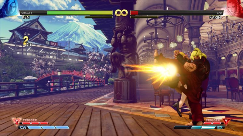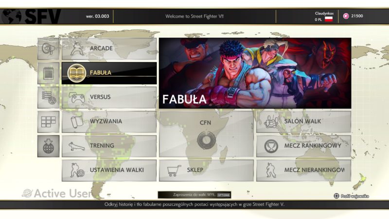 Jeśli mieliście do czynienia z Street Fighterem w 2016 roku to na pewno zaskoczyłby was obecny interfejs. Twórcy zrezygnowali z niebieskiej barwy na rzecz jasnych, piaskowych odcieni. Dzięki temu otrzymaliśmy ładny i schludny interfejs, który moim zdaniem lepiej pasuje do klimatu gry.