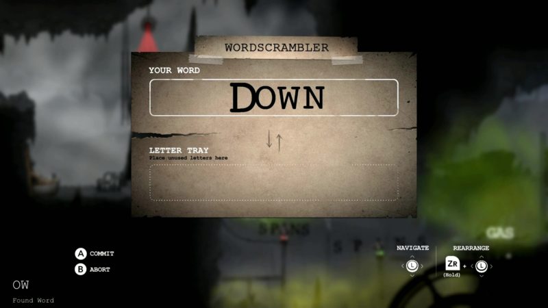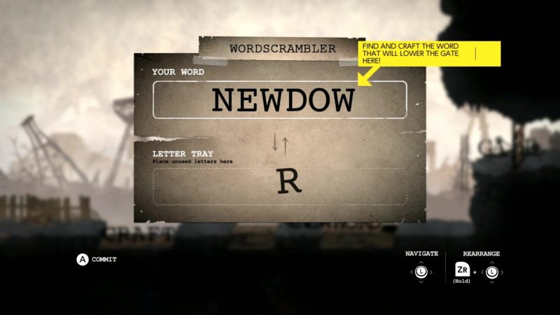 Najciekawszą częścią tego tytułu są jednak zagadki logiczne, oparte o ciekawe łamigłówki słowne. Wykorzystując obecne na danym obszarze litery mamy tworzyć odpowiednie słowa, otwierające nam dostęp do dalszej części mapy. Dla przykładu, gdy zbliżymy się do wyłączonej platformy, uruchomić ją możemy wyrazem “ON”. Zamkniętą bramę otwieramy składając słowo “OPEN”, a wysoko ułożoną drabinę ściągamy na dół za pomocą “DOWN”.