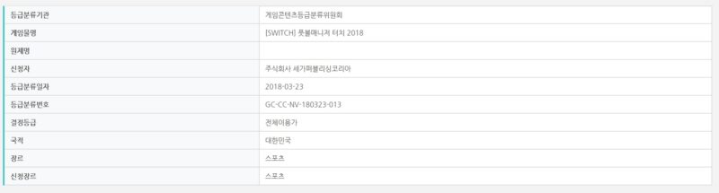 W bazie koreańskiej agencji ratingowej pojawiła się gra Football Manager Touch 2018 dla Nintendo Switch.