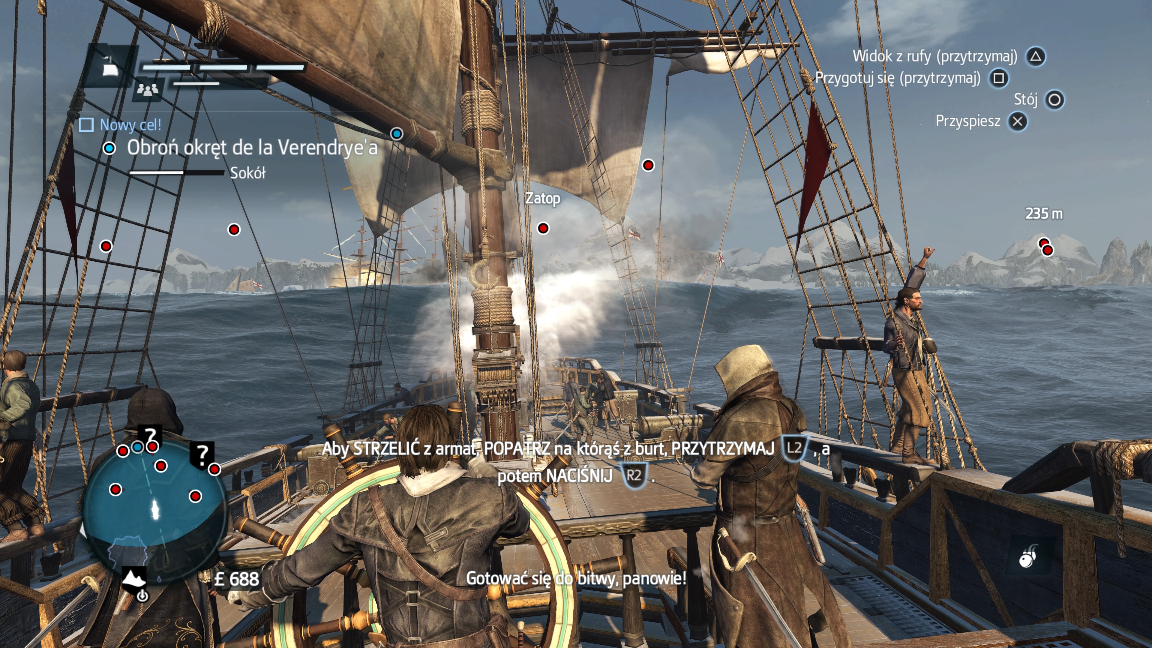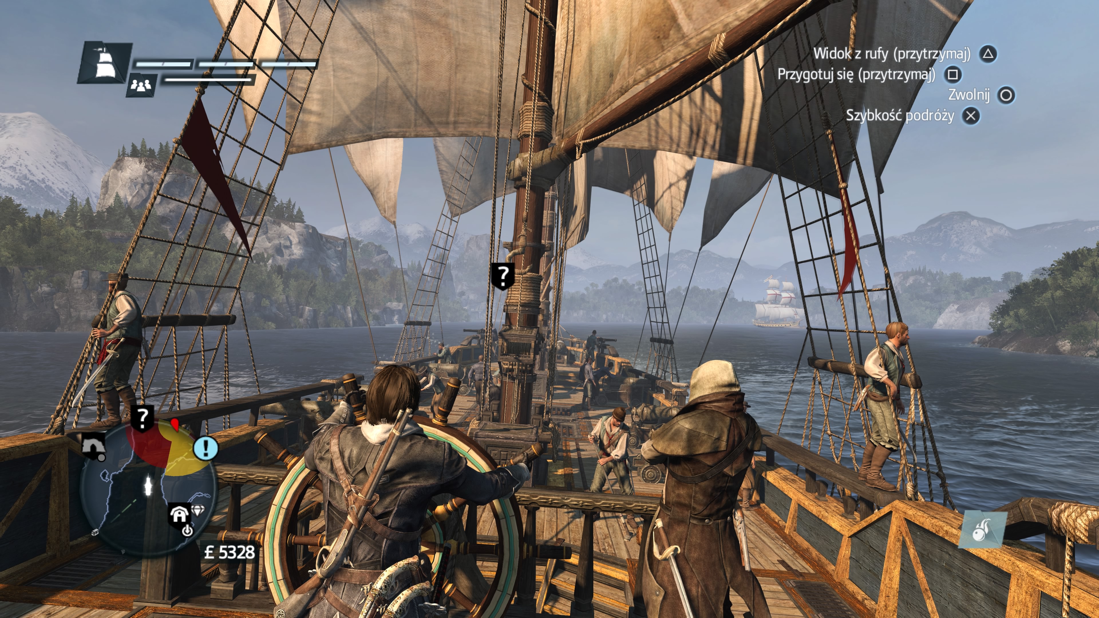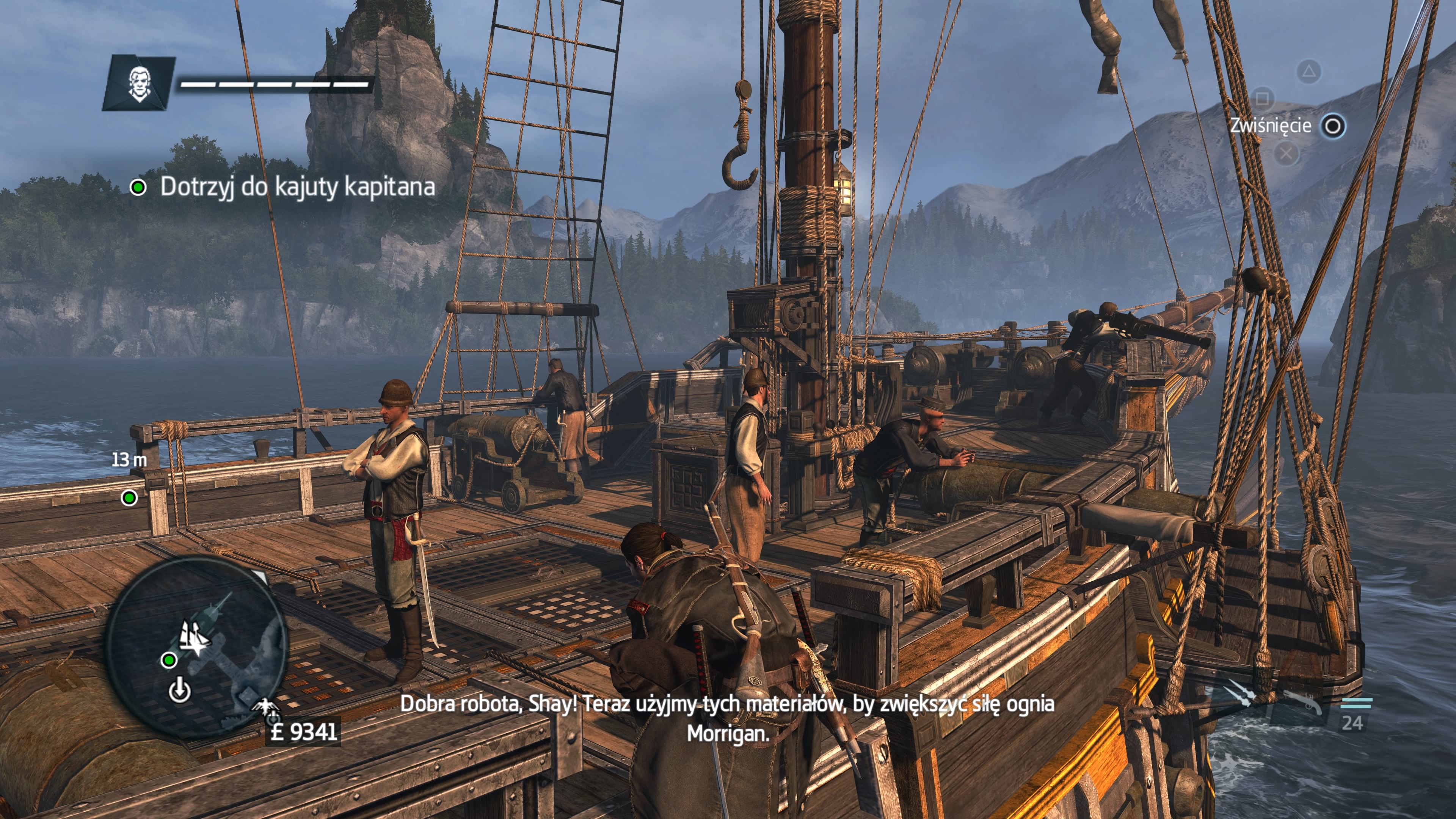 Większość rzeczy, które możemy tutaj wykonać jest żywcem wyjęta z Black Flag. Pływanie statkiem, walka morska, abordaże to główne danie serwowane nam przez Ubisoft. Nasz statek, Morrigan w większości działa dokładnie tak samo jak Kawka. Mamy różnego rodzaju kule, działa przednie czy moździerz. Od tyłu możemy atakować rozlewając płonący olej po tafli wody. Z wykorzystaniem tych narzędzi będziemy pływać po wodach, atakować inne statki zdobywając załogę czy ładunek. Część ładunku sprzedamy, ale zdecydowaną większość użyjemy do ulepszenia naszej łajby.