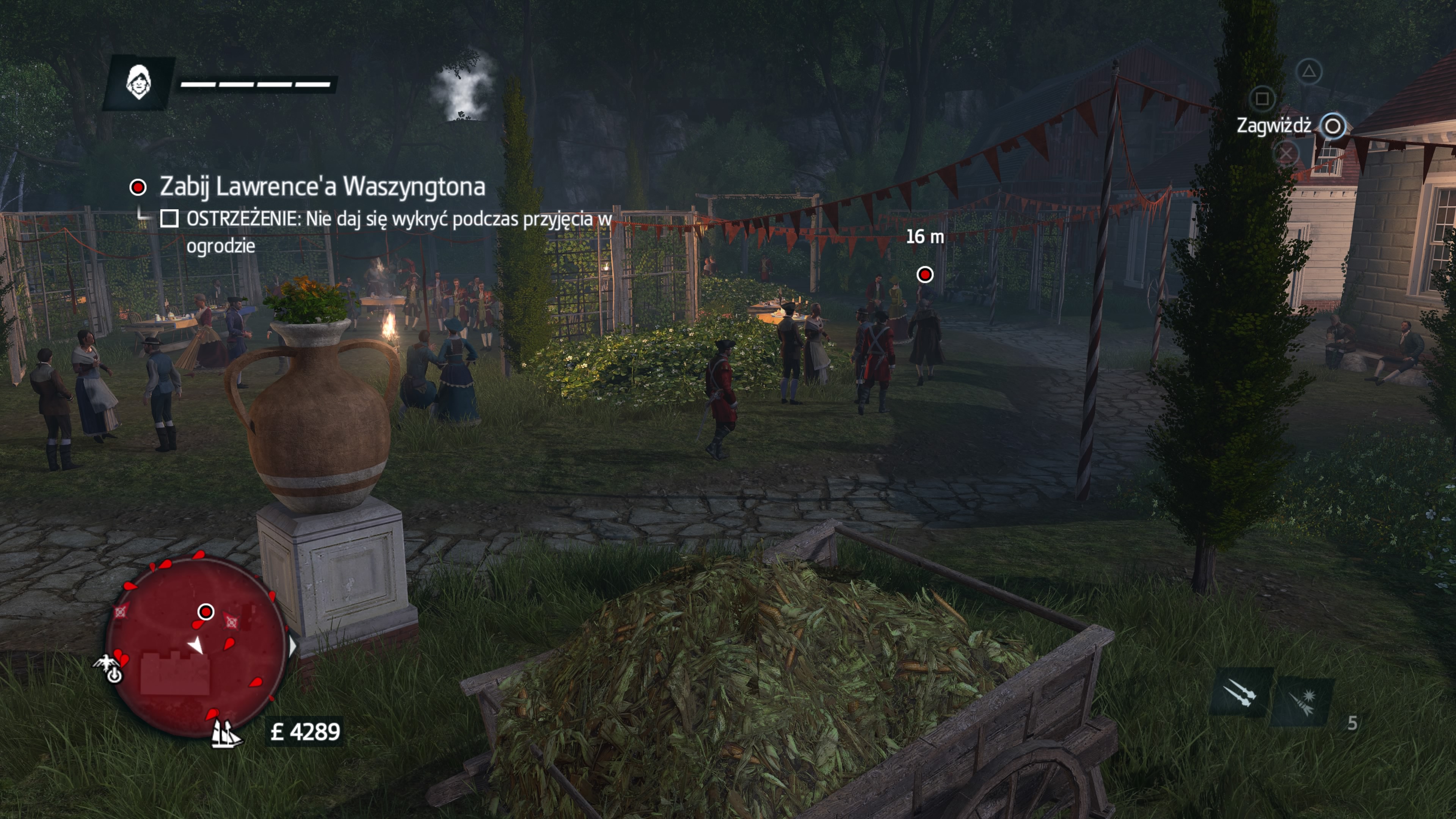 Takie wyposażenie przyda nam się, ponieważ pamiętać należy, że jesteśmy tutaj templariuszem, na którego polują asasyni. Trzeba być czujnym. Kiedy tylko usłyszymy szepty w grze warto włączyć wzrok orła aby odszukać czyhającego na nas skrytobójcę.