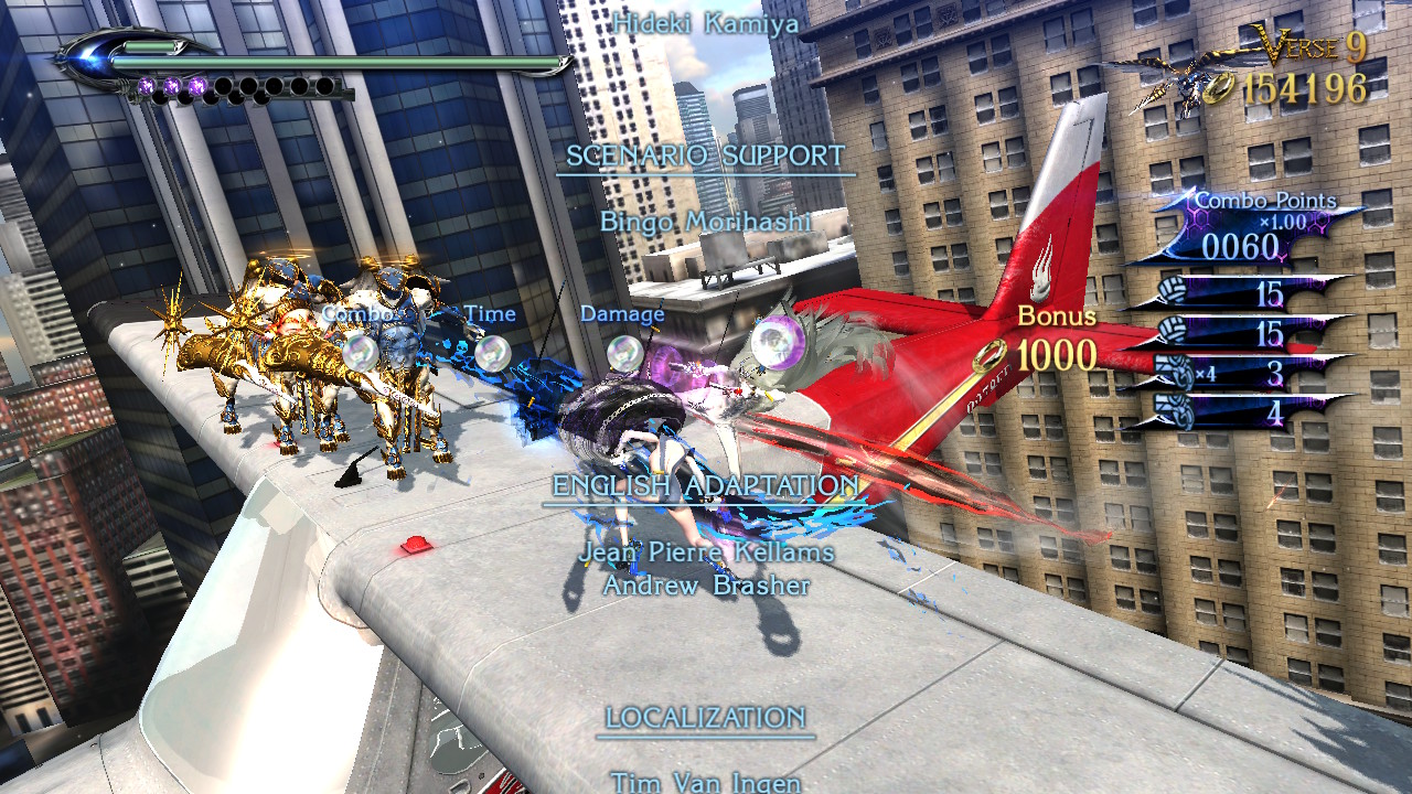 Teraz przechodzimy do najważniejszego elementu Bayonetty, 2 czyli systemu walki. Na pierwszy rzut oka, może się wydawać, że walka wygląda jak w każdym innym slasherze jednak diabeł tkwi w szczegółach. Zacznijmy od najważniejszego, czyli mechaniki “Witch Time” objawia się ona zwolnieniem czasu po idealnym uniku ataku wroga, dzięki czemu otrzymujemy możliwość wymierzenia dodatkowych ataków mogących szybciej zakończyć walkę. Poza tym mamy do dyspozycji możliwość zmiany trzymanych broni w locie, co oddaje w ręce gracza mnóstwo opcji do wyboru podczas każdej potyczki. Gdybym miał określić jednym zdaniem system walki w omawianej produkcji, powiedziałbym, że jest on taki sam jak główna bohaterka: szybki, efektowny i lubiący ryzyko oraz cholernie seksowny.