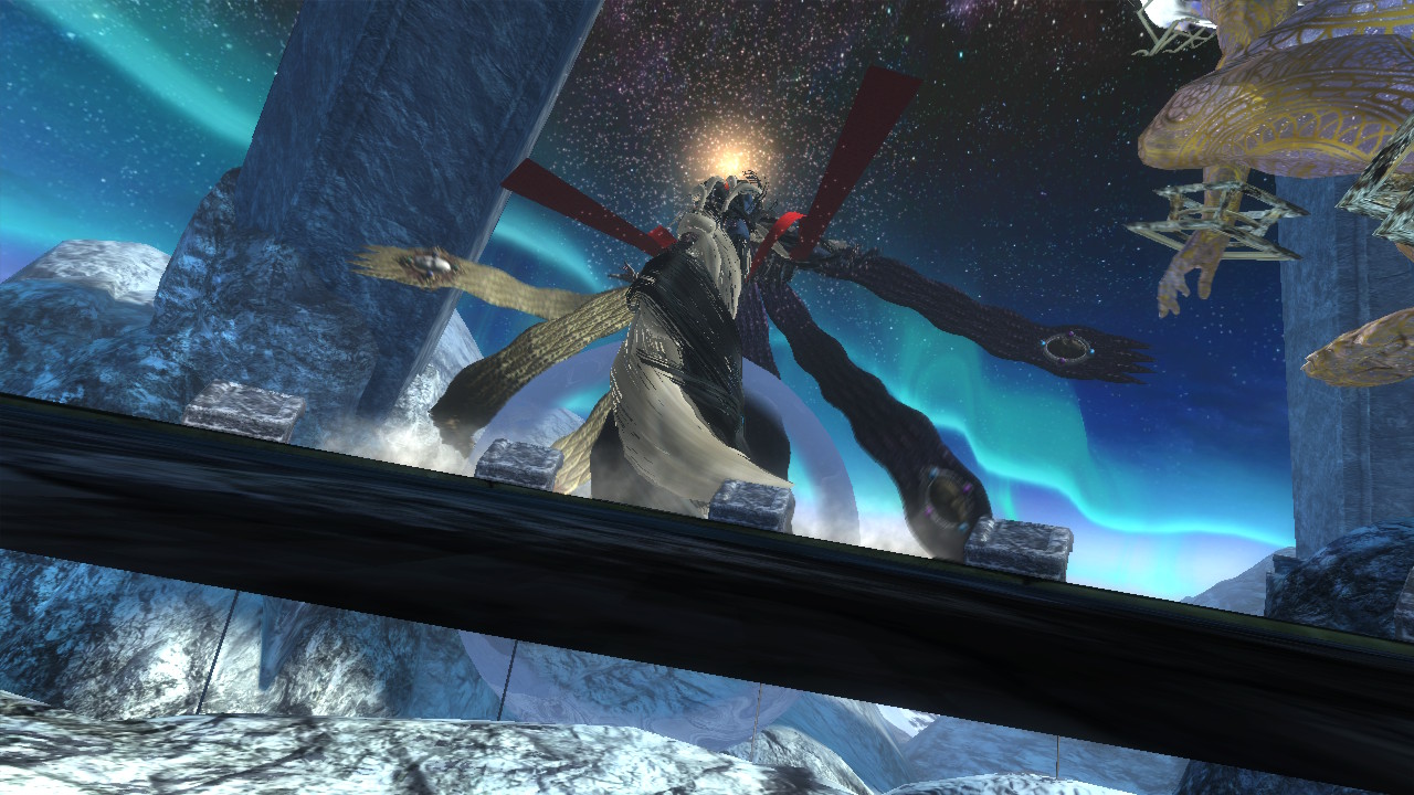 Druga część przygód Bayonetty nie bawi się w półśrodki, rzucając nas od razu w wir akcji. W ramach rozgrzewki gracz ma za zadanie rozprawić się z zastępami aniołów najpierw przy pomocy konwencjonalnego oręża, jakim jest broń palna i biała, a potem gdyby to było niewystarczające to w nasze ręce trafia kroczący pancerz wspomagany. Żeby podkreślić kameralny wydźwięk sceny, należy dodać, że główna bohaterka znajduje się na elementach katedry, która została wyrzucona w powietrze, a wokół niej latają istoty wielkości pociągów. Po tak intensywnej walce, przenosimy się do czasów teraźniejszych gdzie nasza ulubiona wiedźma rozkoszuję się wypadem na zakupy. Niestety sielanka nie trwa zbyt długo i w ułamku sekundy już znajdujemy się na dachu lecącego myśliwca, który lawiruje pomiędzy wieżowcami, tylko po to żeby po chwili na ścianie jednego z wieżowców Cereza przywołała jedną z podległych jej bestii przy pomocy swoich włosów. Oczywiście wymiary bestii jak i przeciwnika, z którym owa bestia ma walczyć swoimi gabarytami zawstydzają najwyższe drapacze chmur. Po wykończeniu bossa zostaje nam ogłoszone, że właśnie skończyliśmy pierwszy etap, i taka intensywność doznań jest utrzymana przez cały czas trwania gry. W opisanym wyżej prologu mamy również ukazany początek fabuły, (która rozpoczyna się w momencie zakończenia części pierwszej), gdzie główną oś fabularną stanowią tzw. Eyes of the World, które kontrolują równowagę pomiędzy siłami anielskimi i diabelskimi w uniwersum. Nie będę zagłębiał się w szczegóły fabuły, ponieważ najlepiej będzie, jeśli każdy gracz zapozna się z nią osobiście – jak na ramy gatunku jest ona całkiem wciągająca oraz mocno rozwija lore gry oraz bohaterów, z Bayonetta na czele.