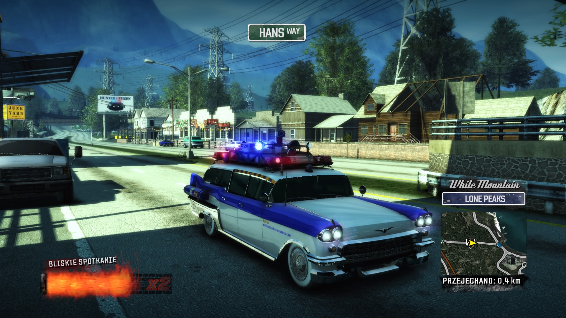 Cały garażowy zestaw, a właściwie kolekcja na złomowisku, to aż 150 pojazdów, w tym 33 policyjne wersje oryginalnych aut z Burnout Paradise, dwa piekielnie szybkie pojazdy z pakietu “boost”, małe pojazdy zabawkowe, które przypominają autka radio control, w tym bolid F1 oraz cztery motocykle, która brzmią fantastycznie i jazda nimi po Paradise City, to prawdziwa przyjemność. Moim ulubionym pojazdem został P12 88 Special, który wzorowany był DeLoreanie DMC-12 z filmu Back to the Future. Ten pojazd chyba jako jedyna posiada modyfikacje w czasie jazdy, gdy wciśniemy lewy analog, to pojazd unosi się do góry, koła się chowają, silnik spalinowy gaśnie i lewitujemy nad jezdnią. “Kultowe samochody, to chyba najlepszy dodatek, bo mamy w nim jeszcze pojazd z filmu Ghostbusters oraz słynnego KITTa, ale niestety tego z nowej wersji serialu Knigh Raider z 2008 roku. Tutaj trzeba zaznaczyć, że wszystkie pojazdy z DLC są dostępne od razu, co zaburza trochę progres i przyjemność odblokowywania coraz to lepszych samochodów. Czy jest to minus? Dla mnie trochę tak, bo znacząco ułatwia rozgrywkę.
