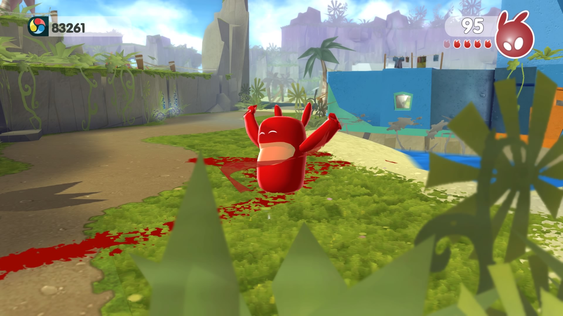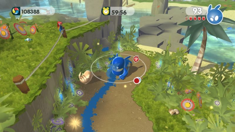Nasz Blob podczas gry będzie mógł się rozwijać- pomagają mu w tym rozmieszczone na planszach „inspiracje“ czyli żaróweczki. Dzięki nim ulepszymy Bloba – np. zwiększając jego chłonność farb. Wszystkie lokacje są uroczo kreskówkowe i przyjemne dla oka. Gra jest przyjemna i nieskomplikowana zarówno pod względem sterowania, jak i fabuły, dzięki czemu nadaje się również dla młodszych odbiorców, a przy tym plusem jest możliwość gry we dwójkę. W dialogach, których nie ma zbyt wiele, usłyszymy piskliwe głosiki i wymyślony „język“. Całość zrobiła na mnie pozytywne wrażenie- no bo czy może być przyjemniejszy sposób na ratowanie świata, niż przywrócenie mu barw?
