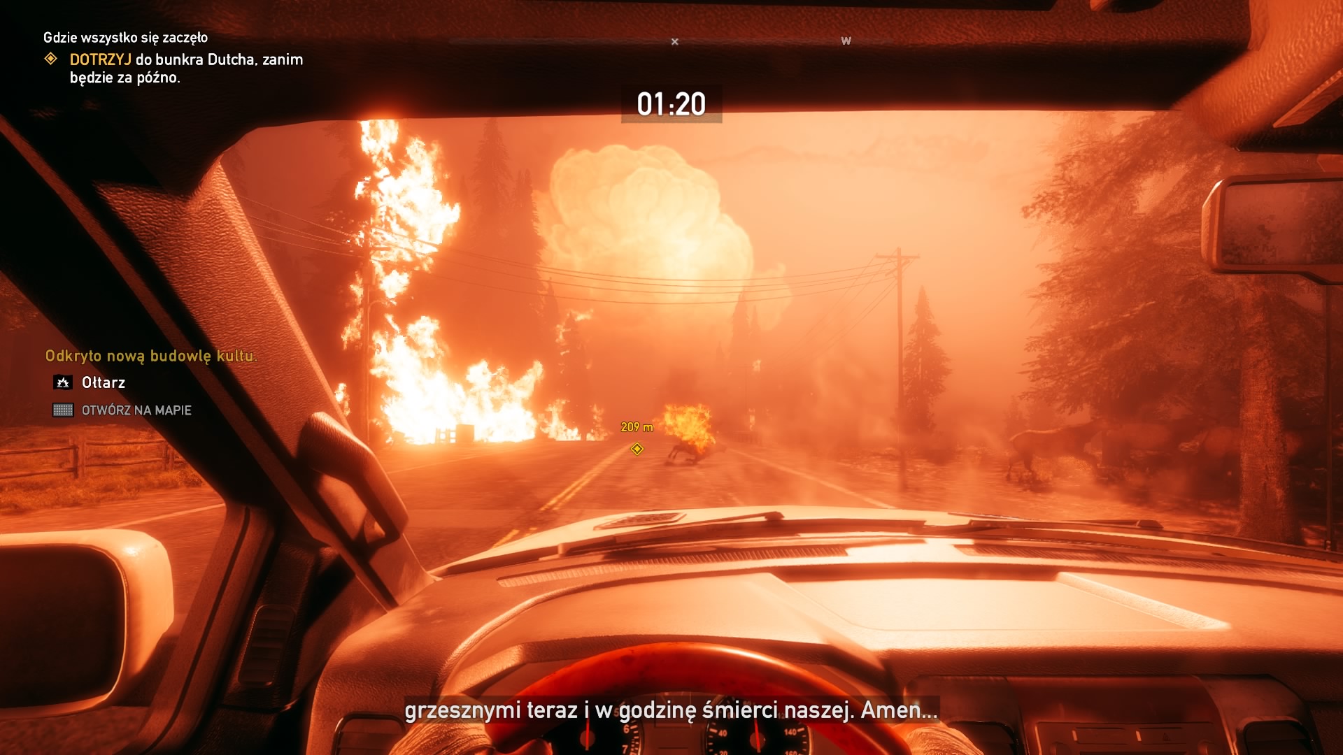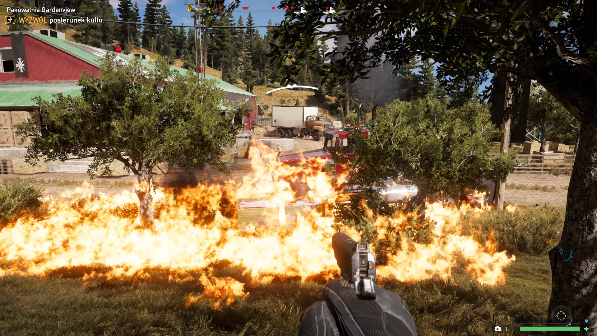 Aby ktoś z rodziny Seedów zacząć się nami interesować musimy integrować się z mieszkańcami na jego terenie. Najlepiej jest pomagać kluczowym osobom i wykonywać misje fabularne oraz poboczne, gdyż za ich wykonanie otrzymujemy najwięcej punktów ruchu oporu. W Hope County nie ma dużych fortec do zdobywania, ale za to mamy bardzo wiele mniejszych miejsc do wyzwolenia, jak sklepy, stacje benzynowe, fabryki i masę rożnych budynków, które przywłaszczyli sobie fanatycy religijni Bram Edenu. Praktycznie na każdym kroku znajdziemy się w sytuacji, w której możemy komuś pomóc lub uwolnić go, krzyki pojmanych ludzi słychać tutaj bardzo często. Nie mogło zabraknąć także efektownych destrukcji otoczenia, możemy niszczyć ołtarze postawione przez kultystów, silosy (zawierają materiały wybuchowe sekty) oraz pojazdy z amunicja, benzyną, czy narkotykami. Gdy już osiągniemy wymagany limit punktów, to przychodzi moment konfrontacji z członkiem rodziny. Jednak wcześniej przydarzą nam się dwa momenty pojmania, które moim zdaniem są w grze całkowicie zbędne. Chodzi o to, że zanim nastąpi konfrontacja, to członek rodziny porywa nas dwa razy, próbuje zastraszyć, torturuje, a następnie porzuca gdzieś w Hope County.
