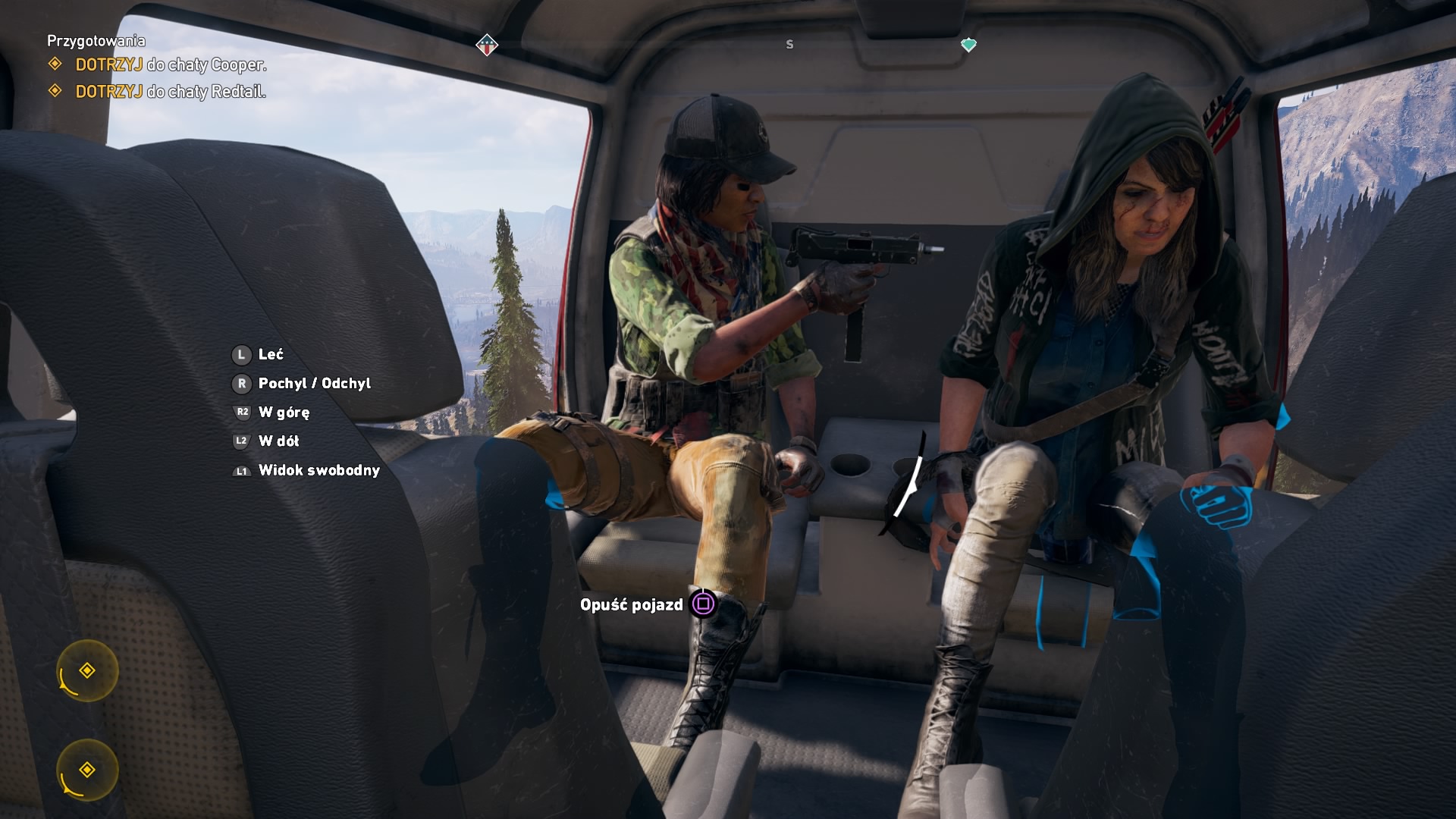 Stan Montana, to tereny najmniej zamieszkałe w całych Stanach Zjednoczonych, wszędzie jest daleko, wiec deweloper nie szczędził nam sporej ilości pojazdów latających, pływających oraz jeżdżących. Jestem pod ogromnym wrażeniem nie tylko ilości, ale i jakości ich wykonania. Szczególnie nie mogłem się nadziwić temu, że w każdym pojedzie działa kokpit. Poruszają się wskazówki od obrotów silnika oraz prędkości, a w samolotach nawet działa sztuczny horyzont! W samolotach bojowych w kokpicie widzimy, jaki rodzaj amunicji mamy ustawiony. Najwięcej jest oczywiście pojazdów drogowych: quady, buggy, pickupy, półciężarówki i ciężarówki. Traktory, auta zwykłe i sportowe typu muscle car. W powietrze wzbijemy się samolotami, oraz helikopterami, te wyposażone w działka mogą strzelać z karabinów maszynowych, puścić salwę rakiet, a nawet bombę na ziemię – bombardowanie konwojów, silosów oraz ołtarzy sekty z samolotu było fantastyczną zabawą. Najmniej do zaoferowania ma strefa morska, tutaj znajdziemy tylko skutery wodne i łodzie patrolowe z karabinem maszynowym. Dla osób niezdecydowanych, które nie wiedzą, czy lepsza będzie droga morska, czy powietrzna powstały hydroplany, najlepiej w wersji z bombą na pokładzie, którą można na coś zrzucić.