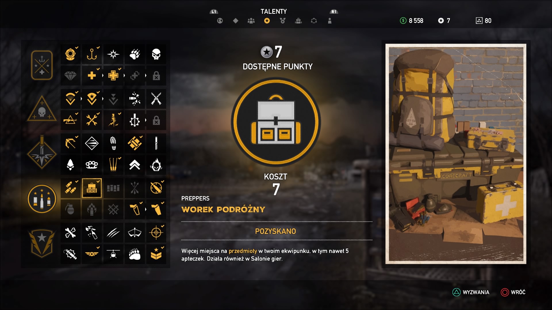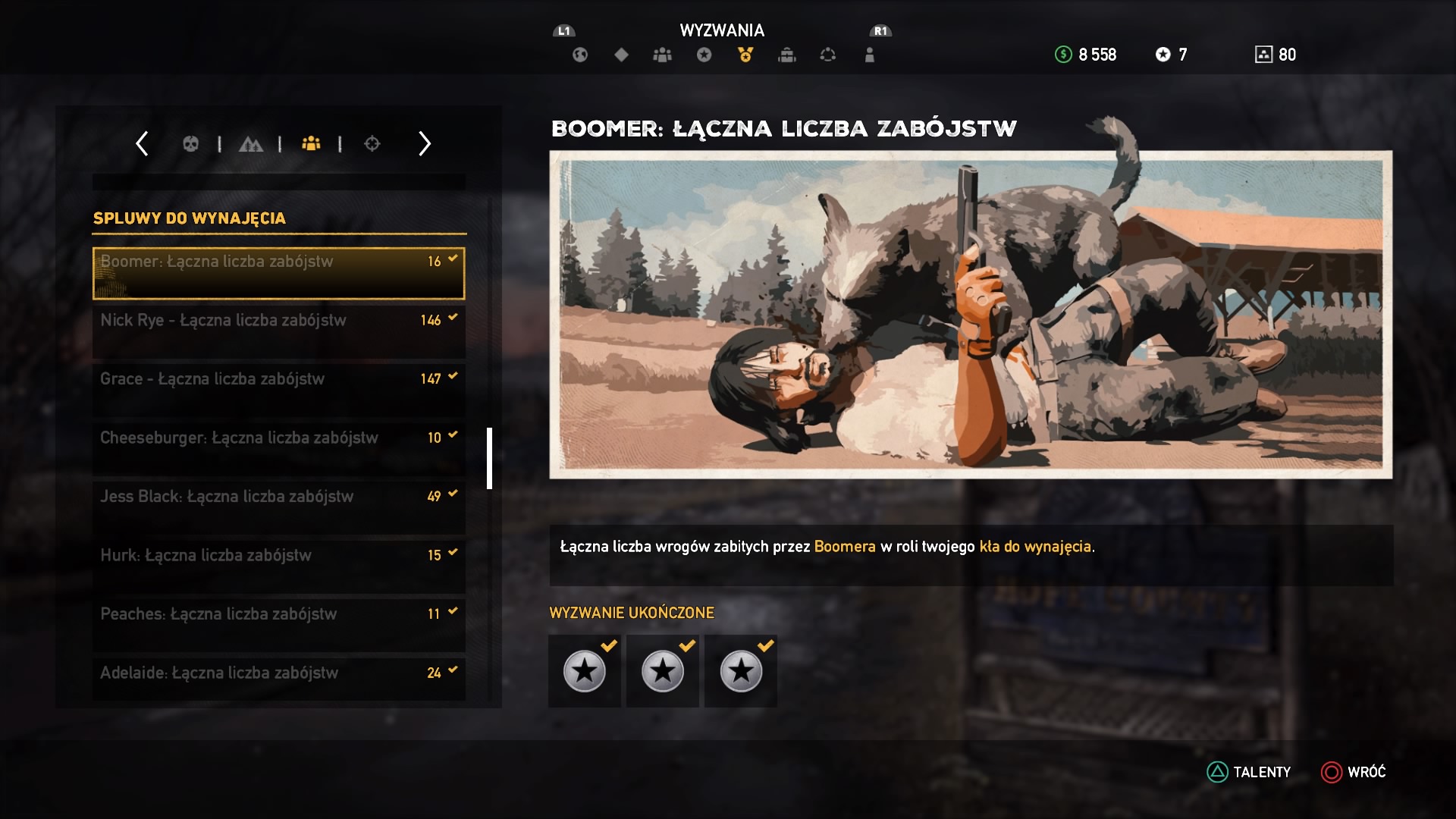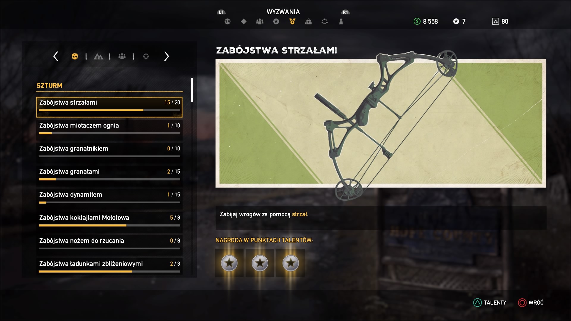 Słów kilka o rozwoju naszej postaci, nadal do dyspozycji mamy ogromne drzewko umiejętności, w którym odblokowujemy nowe talenty. Jednak teraz nie wbijamy kolejnych poziomów postaci i nie czekamy do któregoś tam levelu, aby zdobyć konkretną zdolność. Zdolności odblokowujemy teraz za punkty, które zdobywamy w wyzwaniach – im trudniejsze wyzwanie, tym więcej punktów dostaniemy, od jednego do czterech. Wyzwań jest bardzo wiele, w tym zabijanie konkretnymi rodzajami broni, dużo jest wyzwań łowieckich, w których musimy oskórować każde zwierze i złowić każdą rybę. Do tego trzeba pomagać cywilom, eksplorować świat i współpracować z każdą spluwą i kłem do wynajęcia. Przyznam, że system ten bardzo mi przypadł do gustu, z jednej strony szybko odblokowałem sobie upragnione zdolności, a z drugiej odkrywałem co raz lepsze smaczki z używania konkretnych broni, czy współpracy z towarzyszami.