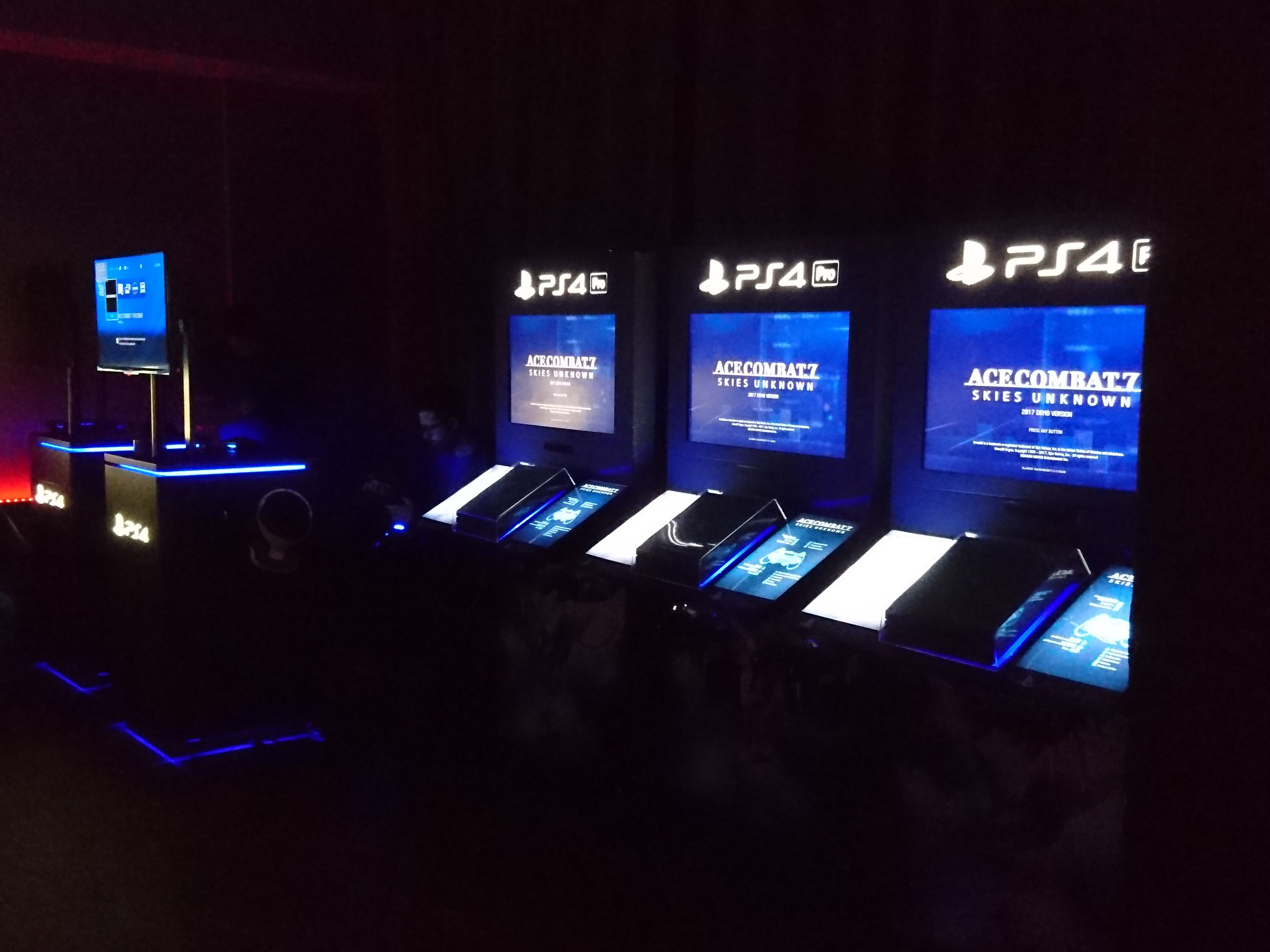 Będąc w połowie listy tytułów do ogrania postanowiłem, że spróbuje swoich sił w najbardziej nierealistycznym symulatorze lotów czyli Ace Combat 7. Na imprezie mieliśmy dostęp do dwóch wersji gry: klasyczną oraz drugą gdzie zakładając gogle VR mogliśmy osobiście zasiąść za sterami maszyny. Niestety nie wystarczyło mi odwagi na testowanie wirtualnej rzeczywistości więc zostałem przy normalnym ogrywaniu produkcji. W nasze ręce została oddana jedna misja z kampanii fabularnej podczas której mogliśmy zapoznać się z podstawami rozgrywki. W tym miejscu muszę zaznaczyć, że był to mój pierwszy kontakt z serią, ale po tym demie na pewno nie będzie to moja ostatnia interakcja z super szybkimi myśliwcami. Od strony rozgrywki otrzymujemy w pełni zręcznościowy tytuł w którym osiąganie prędkości rzędu 2500 km/h i precyzyjne manewry to chleb powszedni. Niestety takie połączenie czasami jest zdradliwe, co objawiło się bliskim spotkaniem trzeciego stopnia z gruntem. Podczas misji otrzymaliśmy dostęp do dwóch myśliwców z ograniczonym uzbrojeniem, jednak w moim przypadku zabieg ten sprawił, że na pewno zaopatrzę się we własny egzemplarz w celu poznania wszystkich samolotów dostępnych w grze.
