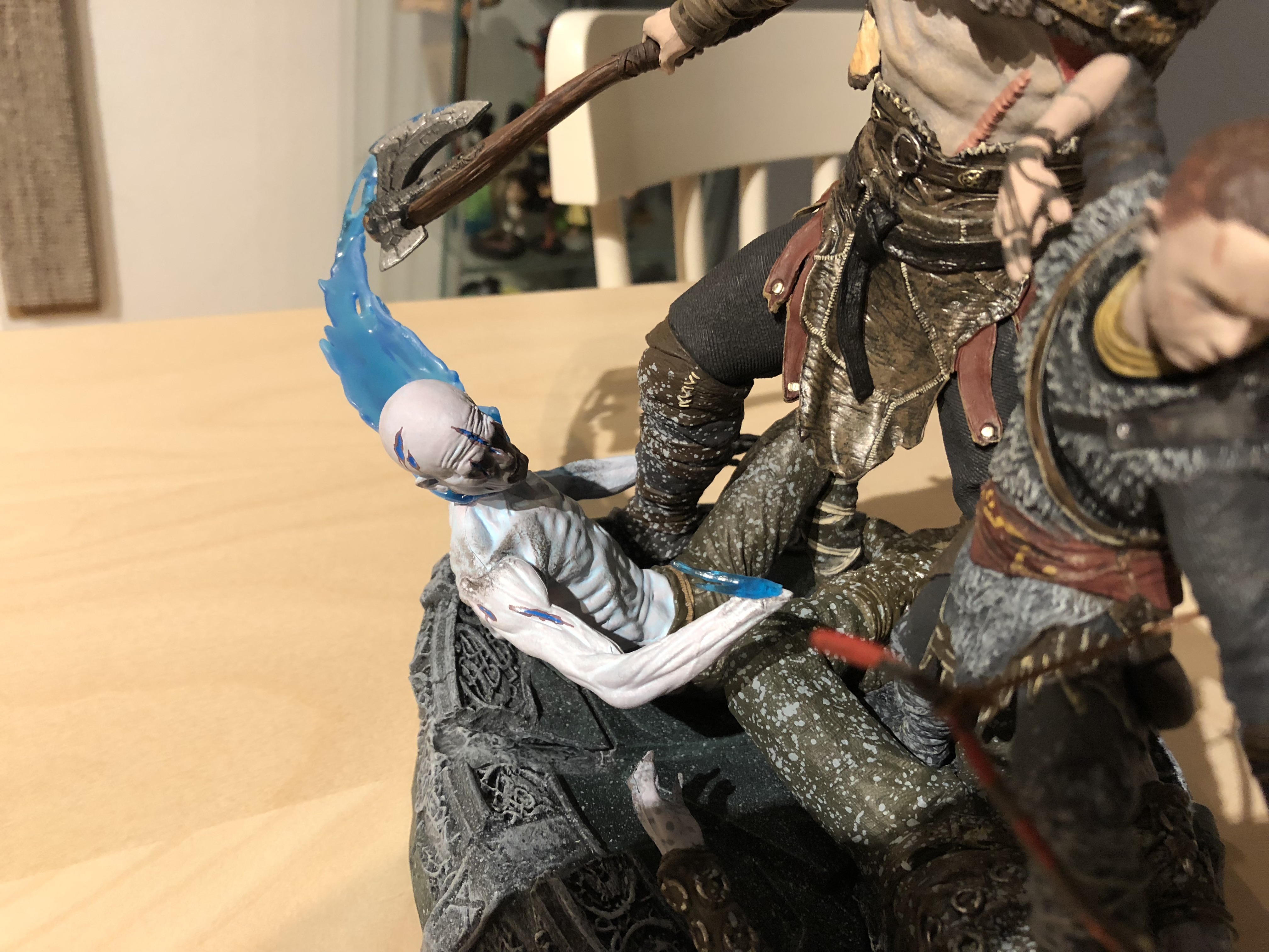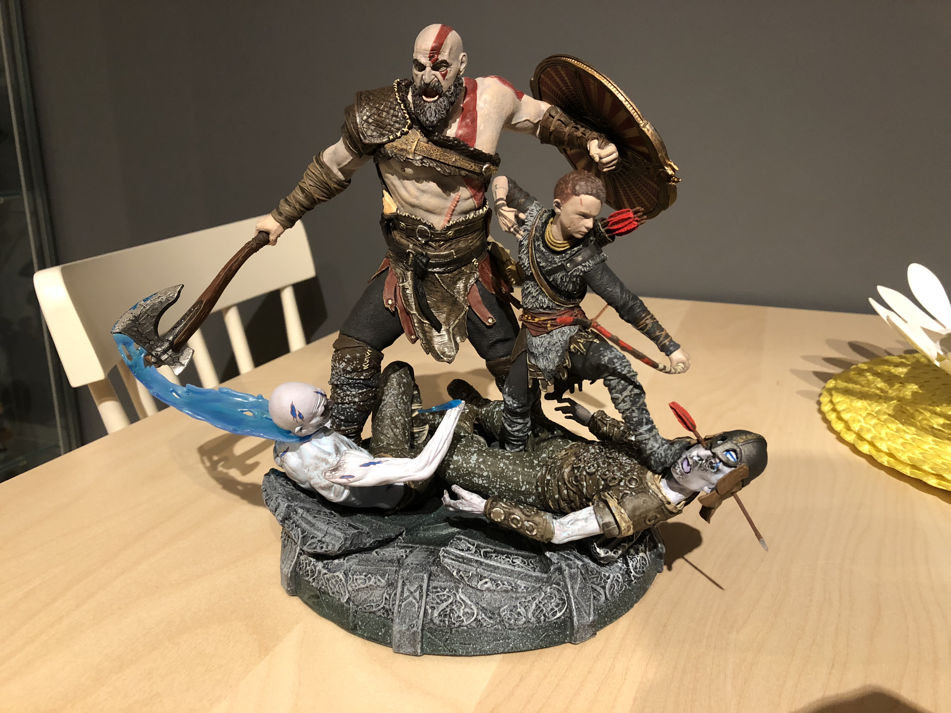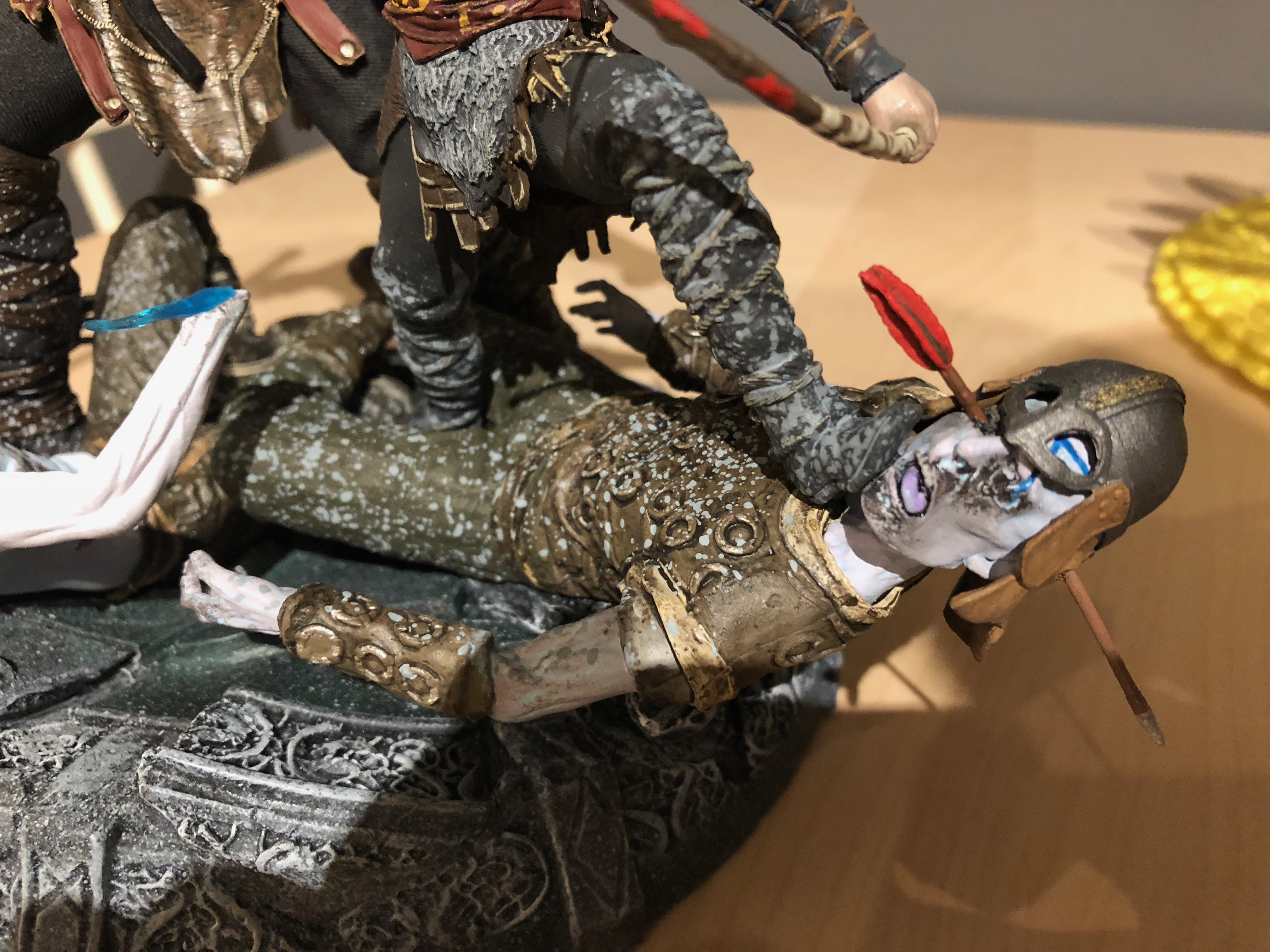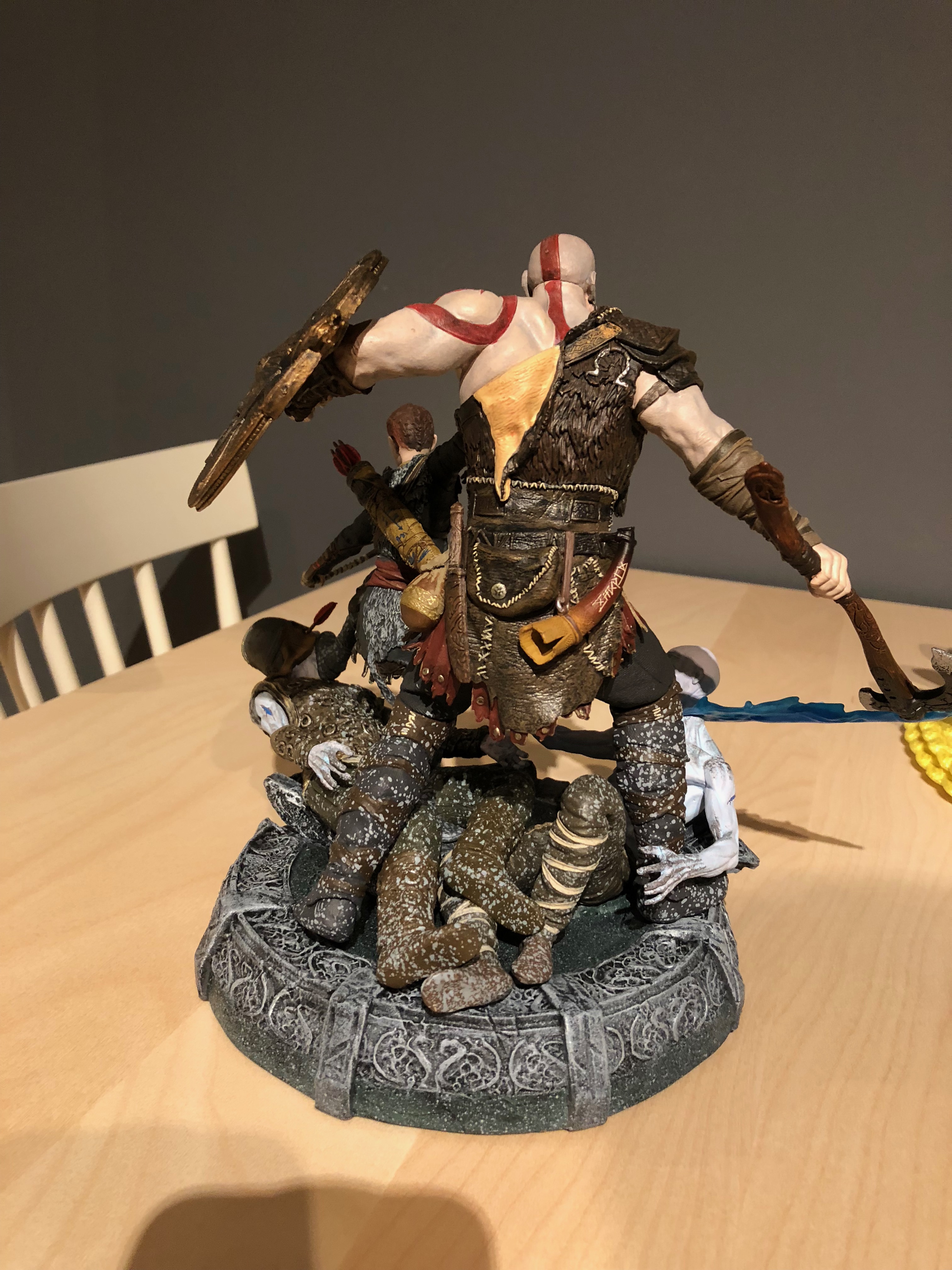 Głównym daniem edycji jest zdecydowania figurka Kratosa i Atreusa. Obaj przedstawieni są bardzo wiernie i z dużym przywiązaniem do detali. Malowanie figurki nie jest tanie i całość prezentuje się wyśmienicie. Zresztą zobaczcie sami.