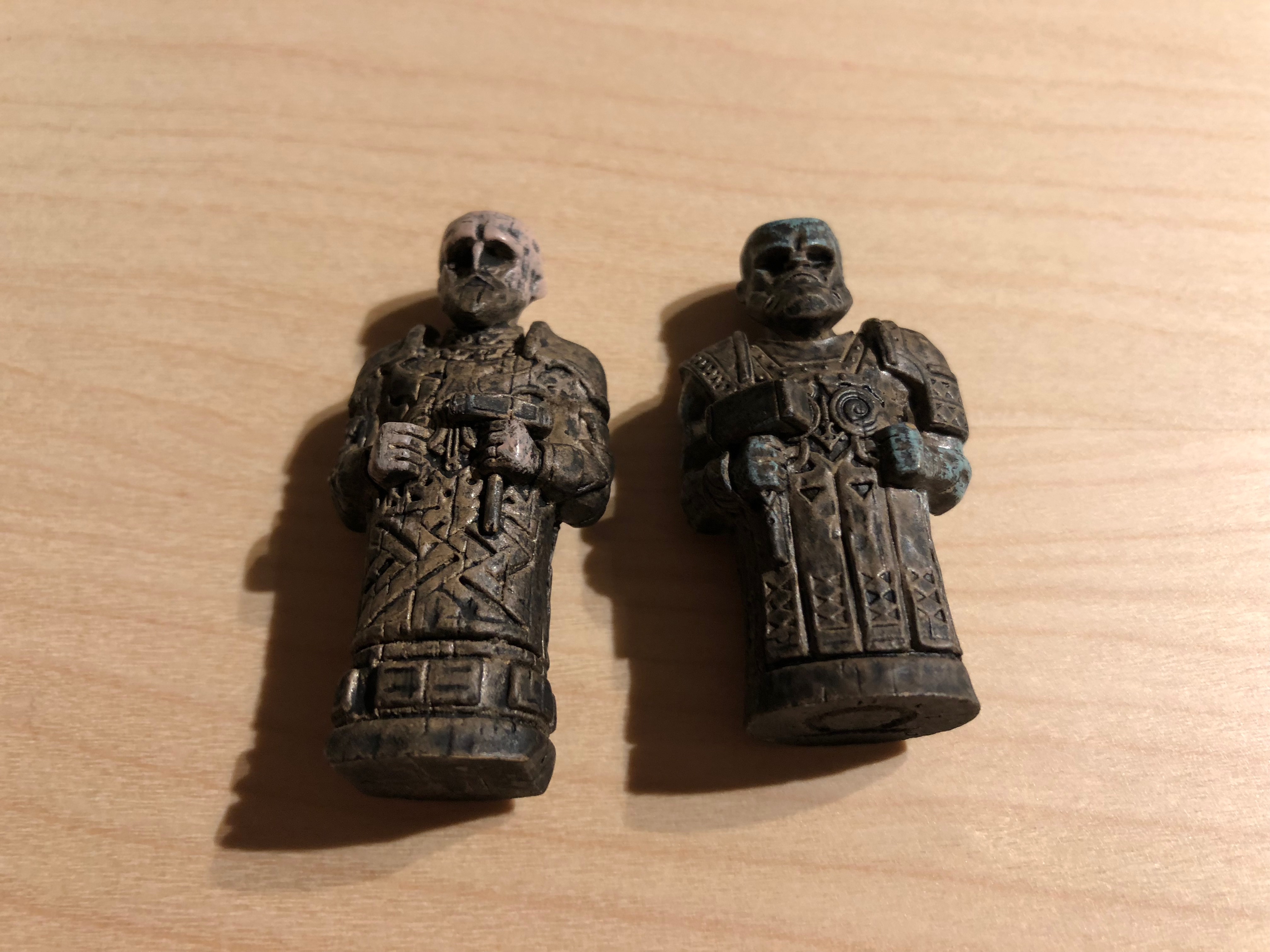 Oprócz dużej figurki w zestawie znajdziemy też dwie, mniejsze, imitujące wystrugane postaci.
