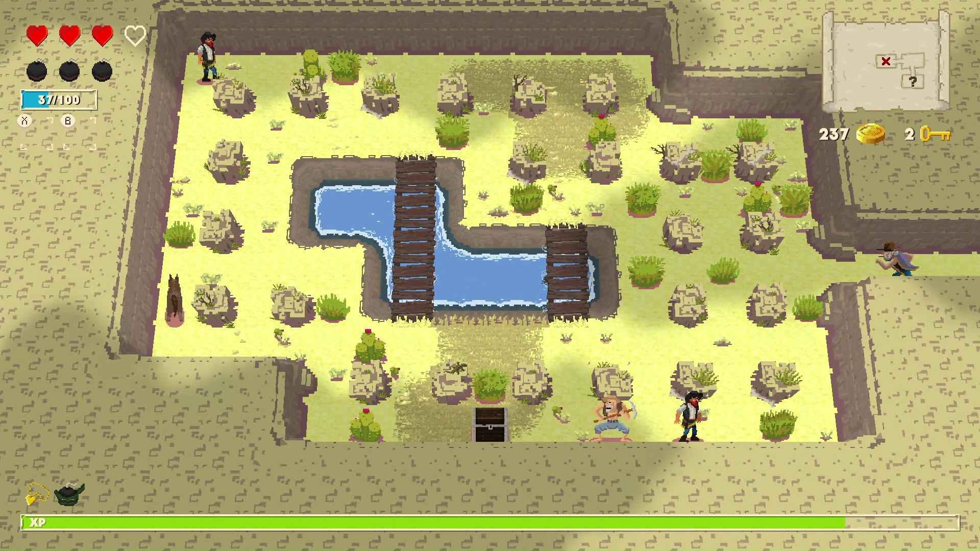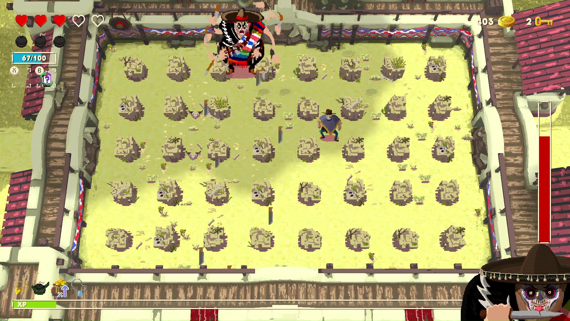 Oprawa audiowizualna gry wypada bardzo dobrze. Twórcy postawili na nieźle wyglądający pixelart, a poszczególne plansze są czytelne. Przyjemna dla ucha ścieżka dźwiękowa idealnie wpasowuje się w klimat Dzikiego Zachodu. Całość na Nintendo Switch działa bez większych problemów. Nawet podczas rozgrywki 4-osobowej nie uświadczyłem żadnych spadków płynności.