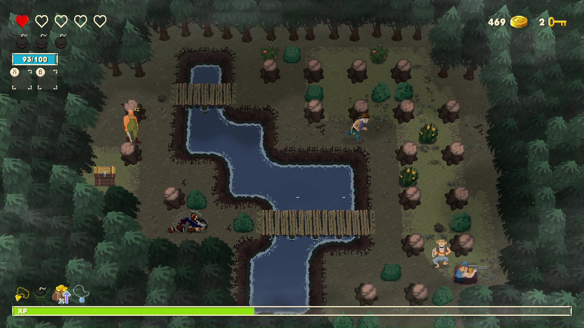 Poszczególne etapy w trybie przygody są generowane losowo oraz składają się z od kilku do kilkunastu mniejszych plansz. Każda z nich budową przypomina poziomy klasycznego Bombermana. Jeżeli na danym obszarze jest choć jeden żywy przeciwnik, musimy go wysadzić, by móc udać się dalej. Każdy etap kończy pokonanie bossa. Utrata wszystkich serc oznacza naszą permanentną śmierć i konieczność przechodzenia wszystkich plansz od nowa.