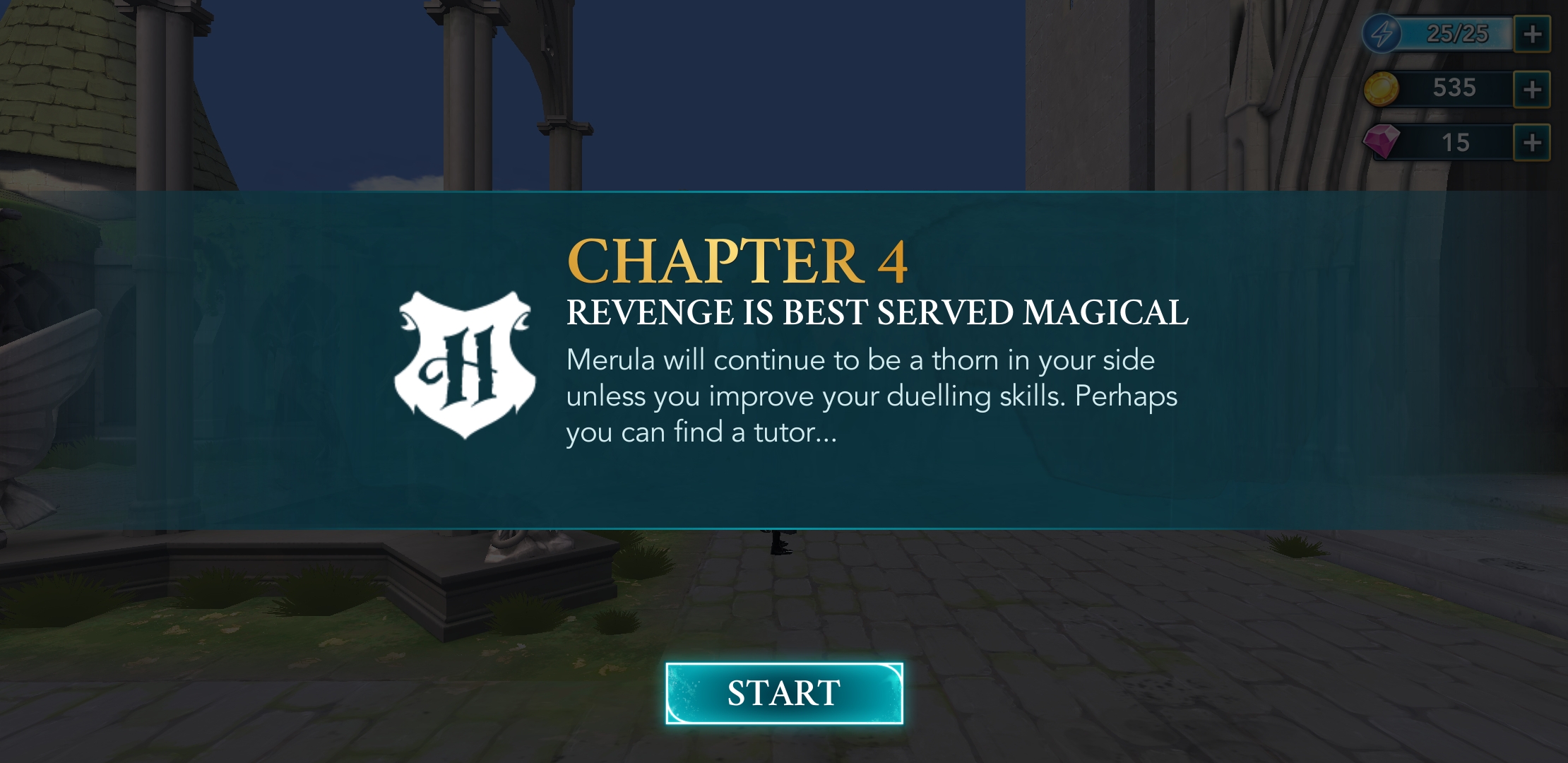 Ku mojemu zaskoczeniu od samego początku gra jest bardzo liniowa. Musimy przechodzić rozdziały, w których mamy do wykonania konkretne zadania. Co prawda możemy zwiedzać Hogwart, ale brakuje mi tutaj chociażby możliwości zagadywania do losowych postaci. Zwłaszcza, że same zadania są bardzo proste i nie wymagają od nas specjalnych umiejętności. Jedyne co musimy zrobić to klikać w zaznaczone na niebiesko przedmioty, czasami wykonać odpowiedni ruch palcem na ekranie czy odpowiedzieć na pytanie. To wszystko kosztuje punkty energii, których na starcie mamy 25. Kolejne generują się co 4 minuty. Co oznacza, że po około 30 minutach zabawy stan naszych punktów energii równy jest zeru i musimy odłożyć telefon i grzecznie czekać na załadowanie. Chyba, że preferujemy szybsze rozwiązanie, ale to niestety kosztuje około 5 dolarów. Mi nie uśmiecha się wydawanie pieniędzy na grę, która polega na kilkukrotnym kliknięciu w odpowiednie miejsce, dlatego moja przygoda skończyła się na tym etapie.
