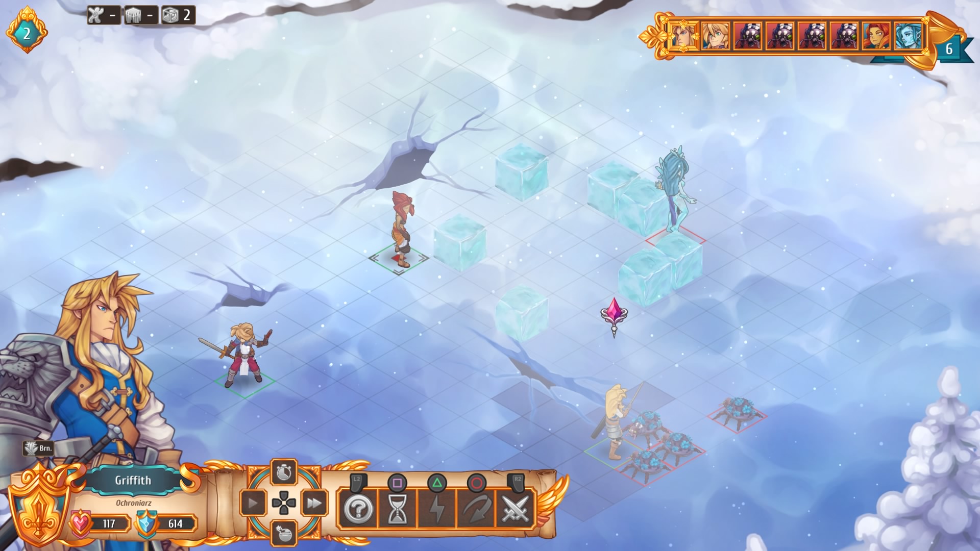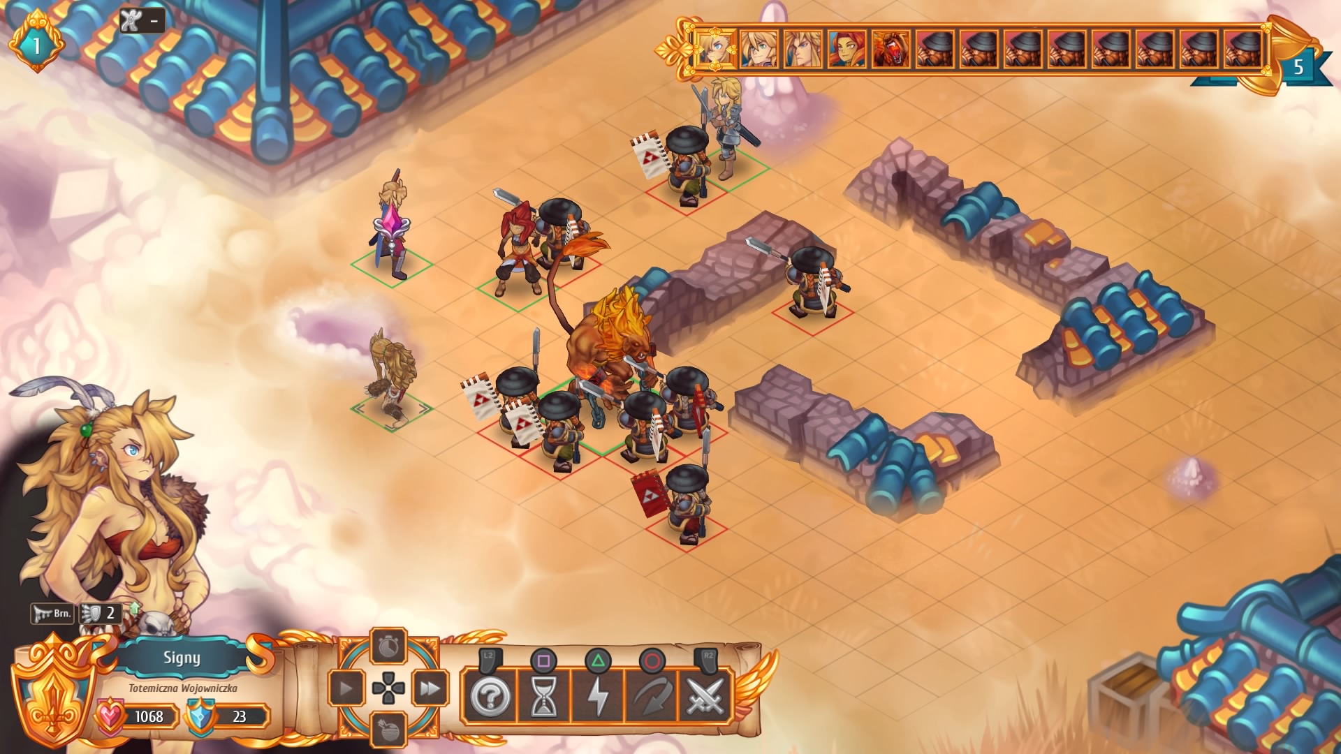Do samych bitew nie mam zastrzeżeń, bo jak na system turowy są prowadzone w bardzo fajny sposób. Pola są podzielone na kwadraty i zawierają kilka przeszkód lub osłon. Każdy z wystawionych bohaterów dysponuje pięcioma umiejętnościami, z czego ta piąta jest super zdolnością, ale aby jej użyć musimy posiadać punkty autorytetu, które są wspólne dla całej drużyny i generują się powoli w czasie bitwy. Wachlarz umiejętności naszych bohaterów jest bardzo bogaty, tak jak i ich różnorodność. Grono dostępnych postaci jest bardzo urozmaicone, mamy tutaj postaci ofensywne, defensywne tanki, bohaterów atakujących z ukrycia, na dystans, magów itd. Bohaterowie mogą sobie pomagać odnawiając życie, czy rzucając pancerz (podstawowa rola niestety głównego bohatera). Do tego większość postaci potrafi atakować wiele celów na raz lub przywalać dodatkową istotę na pole bitwy. I jeszcze ważna informacja, która dla mnie była miłym zaskoczeniem, mamy absolutną swobodę w atakowaniu i poruszaniu po polach dostępnych dla danego bohatera. Możemy przykładowo podejść, zaatakować i odsunąć się na kilka pól lub zaatakować pobliskiego wroga i daleko uciec.