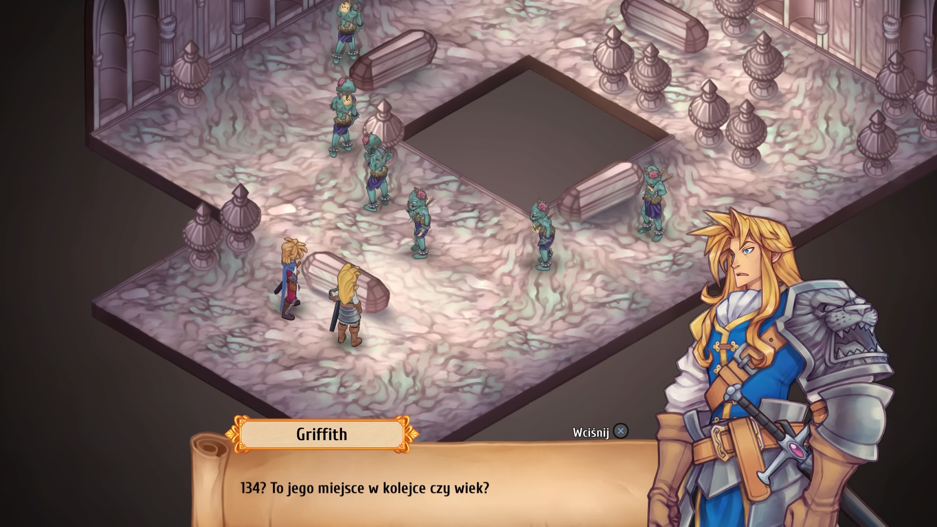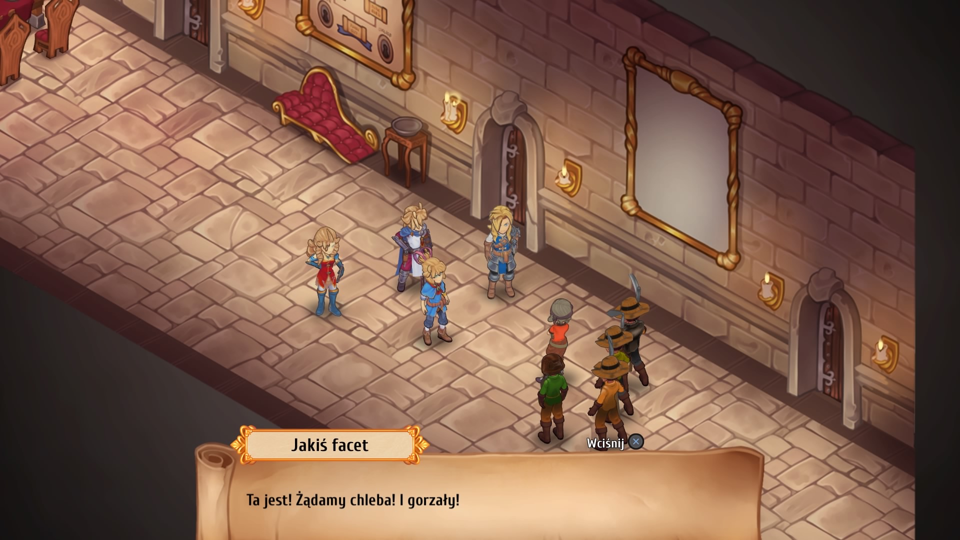 Zadań do wypełnienia jest bardzo wiele i tylko od nas zależy, czy będziemy częściej walczyć, co wiąże się z eksploracją lochów o rożnych poziomach trudności, czy częściej dbać o rozwój królestwa, w tym o budowanie budynków, wytwarzanie rożnych przedmiotów, czy podnoszenie relacji z mieszkańcami i członkami naszej drużyny. Wszystko jest tutaj ze sobą doskonale powiązane, bo nie rozbudujemy przecież królestwa bez potrzebnych surowców, a surowce dostajemy tylko po wygranych bitwach. Ale aby wygrać bitwę, musimy mieć, no właśnie… “Przed wyruszeniem w drogę, należy zebrać drużynę” – cytując klasyka. Nasza drużyna może składać się maksymalnie z sześciu bohaterów, ale na pole bitwy możemy wystawić tylko czterech. I tutaj mam tak naprawdę jedyne zastrzeżenia dla twórców gry, bo nie rozumiem, jaki jest sens zabierania sześciu bohaterów na wyprawę, a walczyć może tylko czterech – w grze także nie znalazłem żadnego wyjaśnienia. Tym bardziej, że często gęsto walczymy z przeciwnikami, których ilość na mapie jest zbliżona, a nawet przekracza dziesięć jednostek. I jak to rozumieć? Wystawiam czterech bohaterów, a pozostałych dwóch chowa się za kamieniem i obserwuje pole bitwy? Przyznaję, że nie rozumiem tego systemu wystawiania bohaterów do walki. To tak naprawdę jedyny mój minus dla tej gry. No dobra jest jeszcze drugi, ale taki mały, to bardzo częste, ale krótkie ekrany ładowania gry.