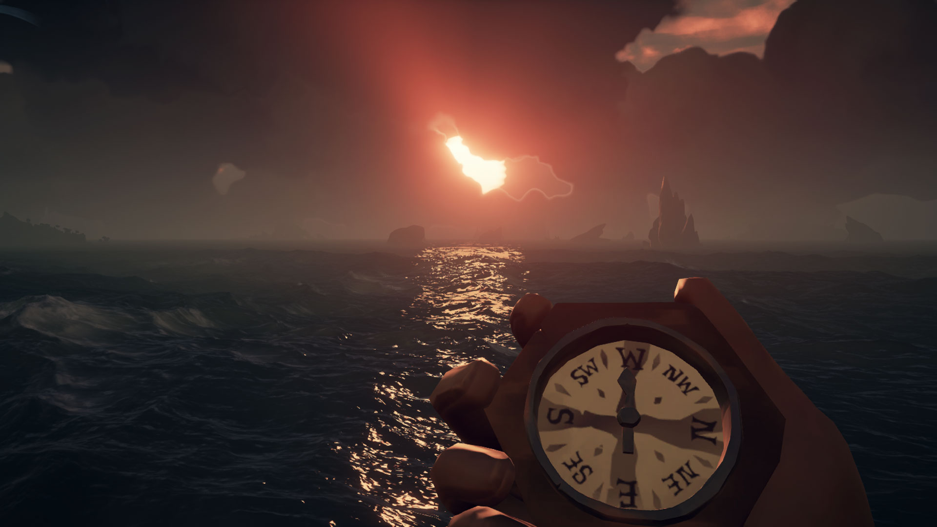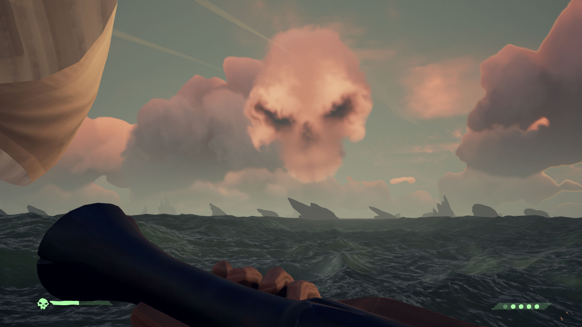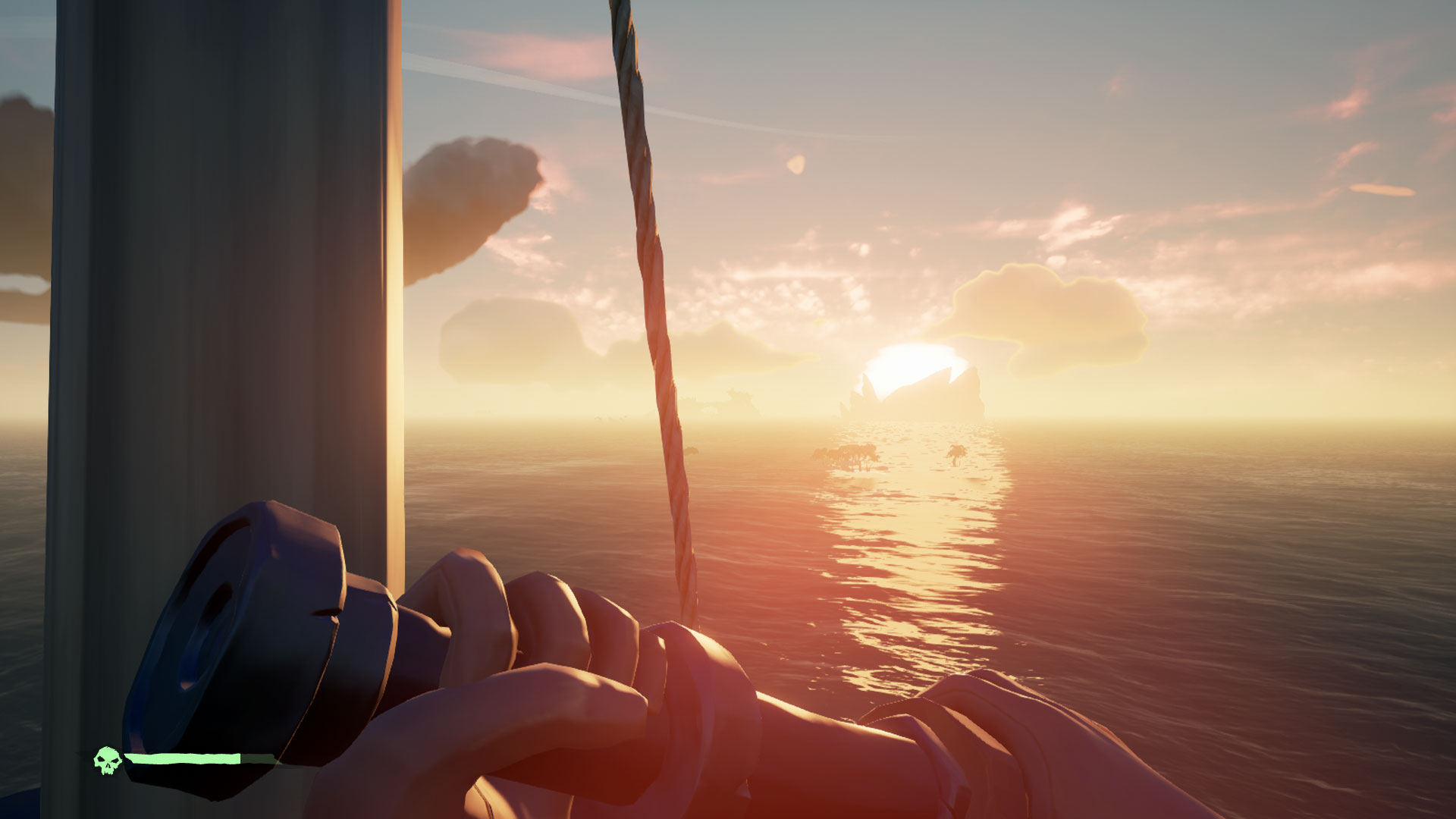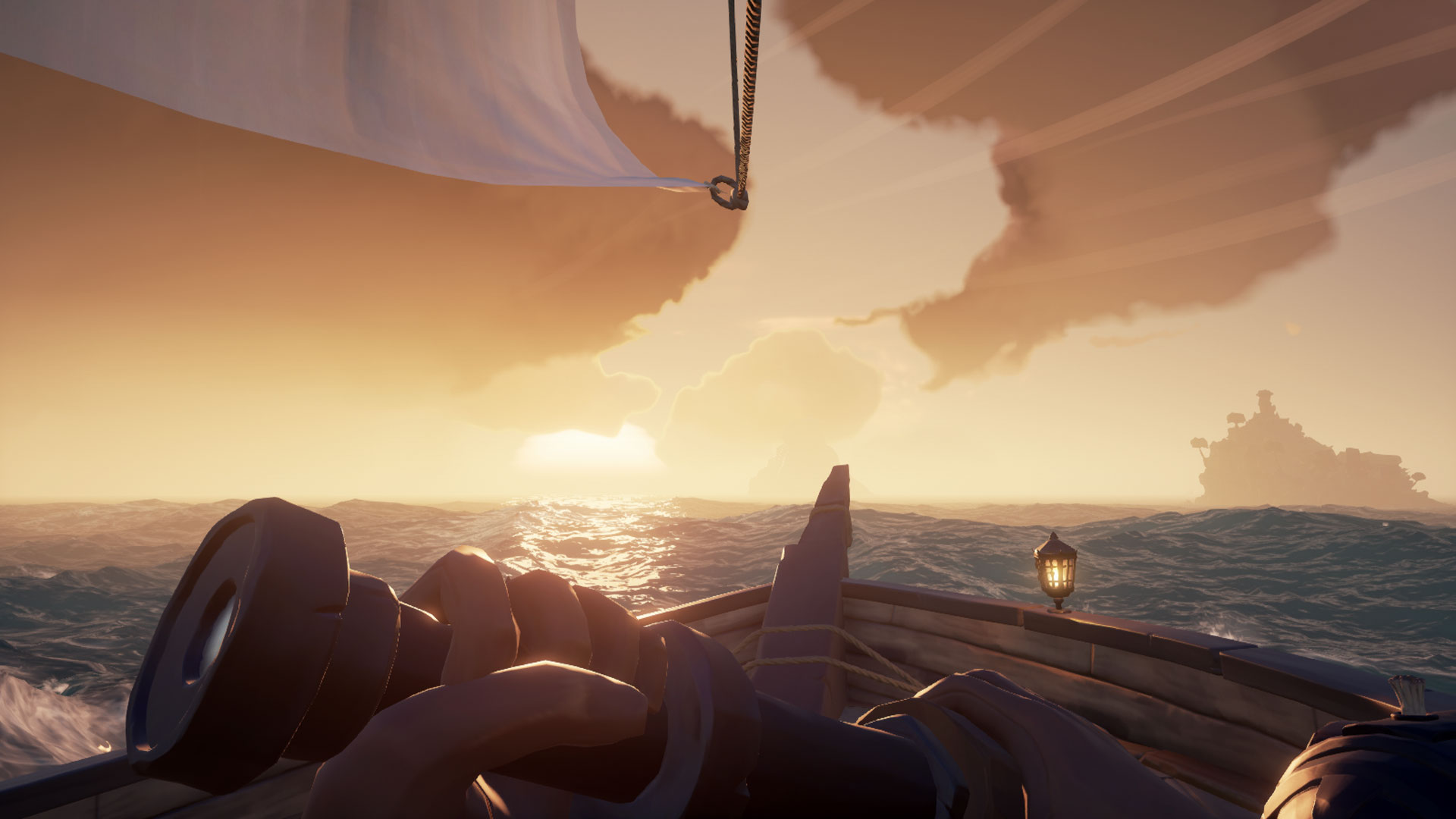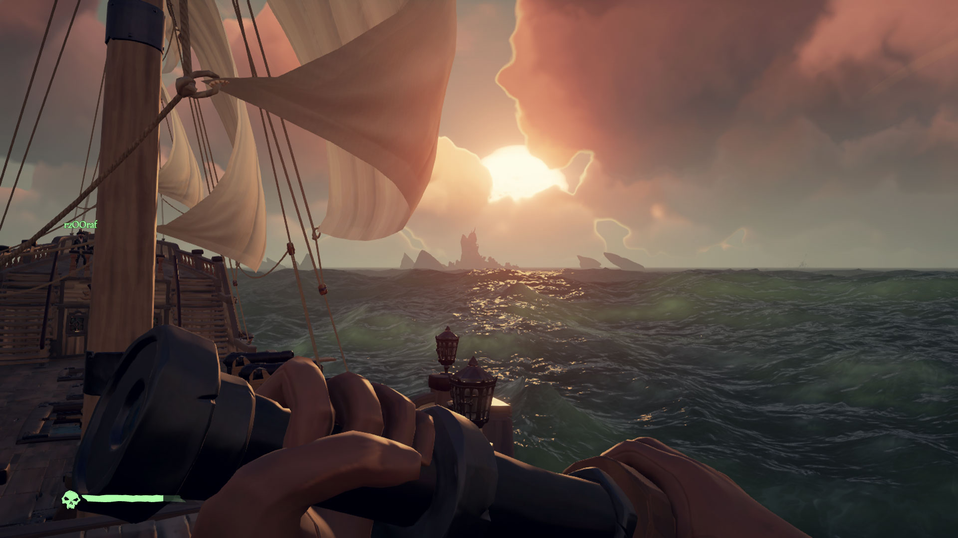 O grafice w Sea of Thieves można by pisać długo. Wręcz zapiera dech w piersi. Twórcom udało się połączyć kreskówkowy styl wysp, statków i postaci z realnymi warunkami pogodowymi. Sztormy wyglądają groźnie i realistycznie. Zachody słońca są przepiękne i nawet umieszczono w grze zorzę.