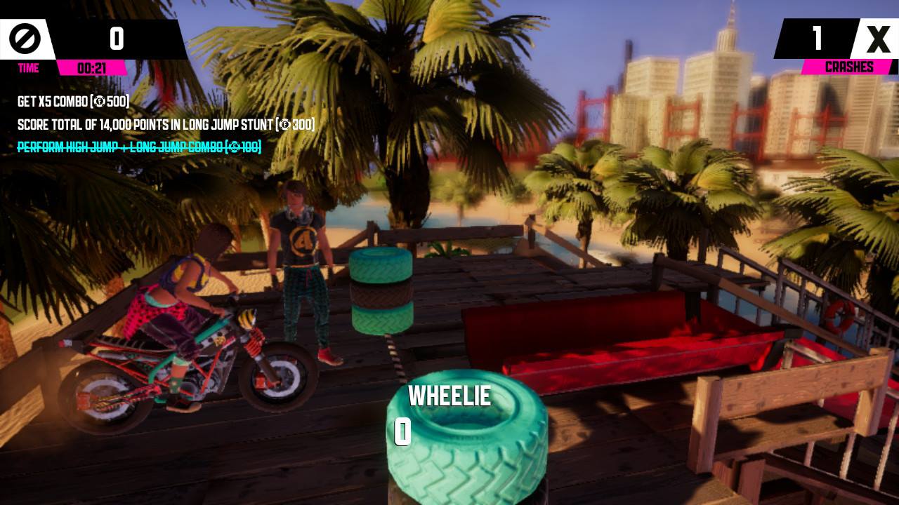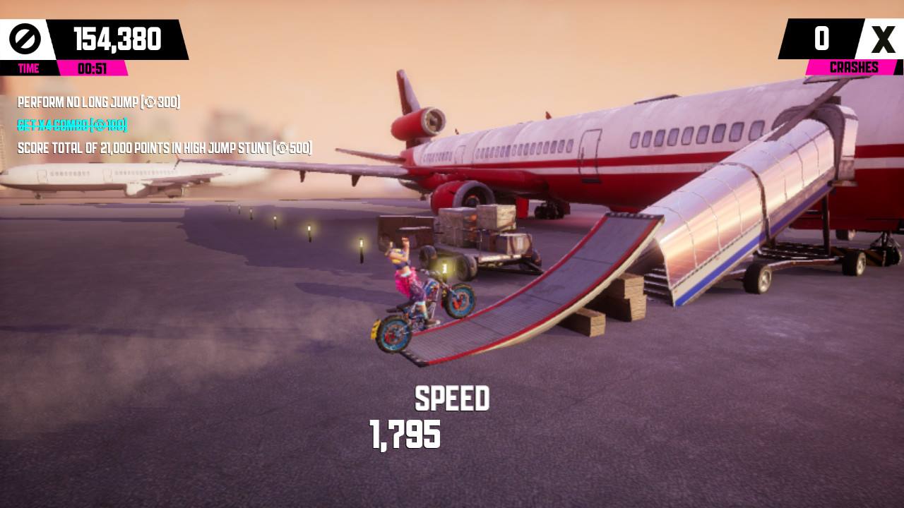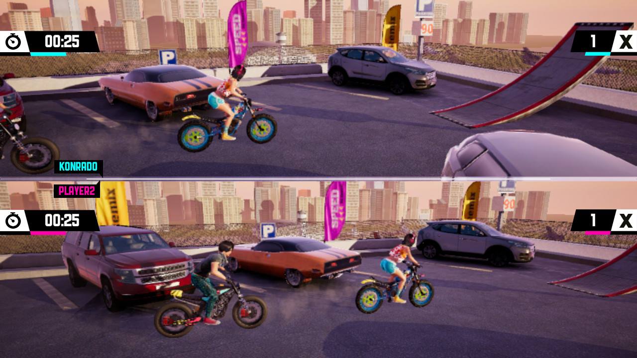 Do Urban Trail Freestyle mam więc wielki sentyment i bardzo się ucieszyłem, gdy ogłoszono Urban Trial Playground na Nintendo Switch. Dla takich gier po prostu kupuje się handheldy! Urban Trial Playground, to połączenie wyścigów i platformówki. Tytuł posiada trójwymiarową oprawę, jednak sama rozgrywka jest w 2,5D, Gra została oparta na silniku Unreal Engine 4. Zadaniem gracza jest pokonanie krótkiej trasy na motocyklu w jednym z dwóch trybów. Pierwszy, to freestyle, czyli wykonujemy rozmaite triki. Zazwyczaj wybijamy się z rampy i wykonujemy obroty motocyklem do przodu lub do tyłu. Możemy jeździć na tylnym kole lub wykonywać stoppie na przednim. Kluczem do sukcesu jest łączenie wielu kombinacji oraz unikanie upadków. Drugim trybem jest czasówka, w której musimy zapomnieć o popisywaniu się i tak wykorzystać elementy otoczenia, aby jak najszybciej dojechać do mety. Ważne jest tutaj doskonałe lądowanie po skokach, najlepiej jest wylądować na tylnym kole, aby jak najszybciej rozpędzić motocykl. Tryby Freestyle i Time zawierają sieciowe tablice wyników, na nich gracze mogą porównać swoje najlepsze czasy i zdobycze punktowe.