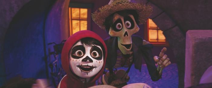 Muzyka. Tu mam naprawdę duży zarzut – piosenki oraz warstwa dźwiękowa mnie nie zachwyciła. Nie są to przeboje na miarę choćby Krainy Lodu. Piosenki nie wpadają w ucho. Nie porywają. Przyznać jednak należy, że „finałowa piosenka”, a raczej sposób jej wykonania wzruszy każdego widza. Jest to chyba po śmierci Mufasy z Króla Lwa – najbardziej wzruszająca scena. „Rozmowa” Miquela z prababcią Coco jest przepięknym obrazem rodziny – jest smutek, nadzieja, miłość i szacunek, młodość i starość, a przede wszystkim pamięć o tych, co odeszli i tych, którzy żyją. Krótka scena jest prawdziwym pomostem łączącym rodzinę i pokolenie tych, którzy niedługo odejdą z tego świata i tych którzy dopiero piszą swoją historię – a wszystko ukazane w sentymentalnej, magicznej otoczce. Przy finałowej piosence Pamiętaj mnie – wyśpiewanej w tak emocjonalny i przy tym kameralny sposób, przy akompaniamencie gitary, naprawdę trudno nie uronić łzy. Krótka scena, a dla mnie jest esencją całej animacji i pokazuje kunszt moralizatorstwa.