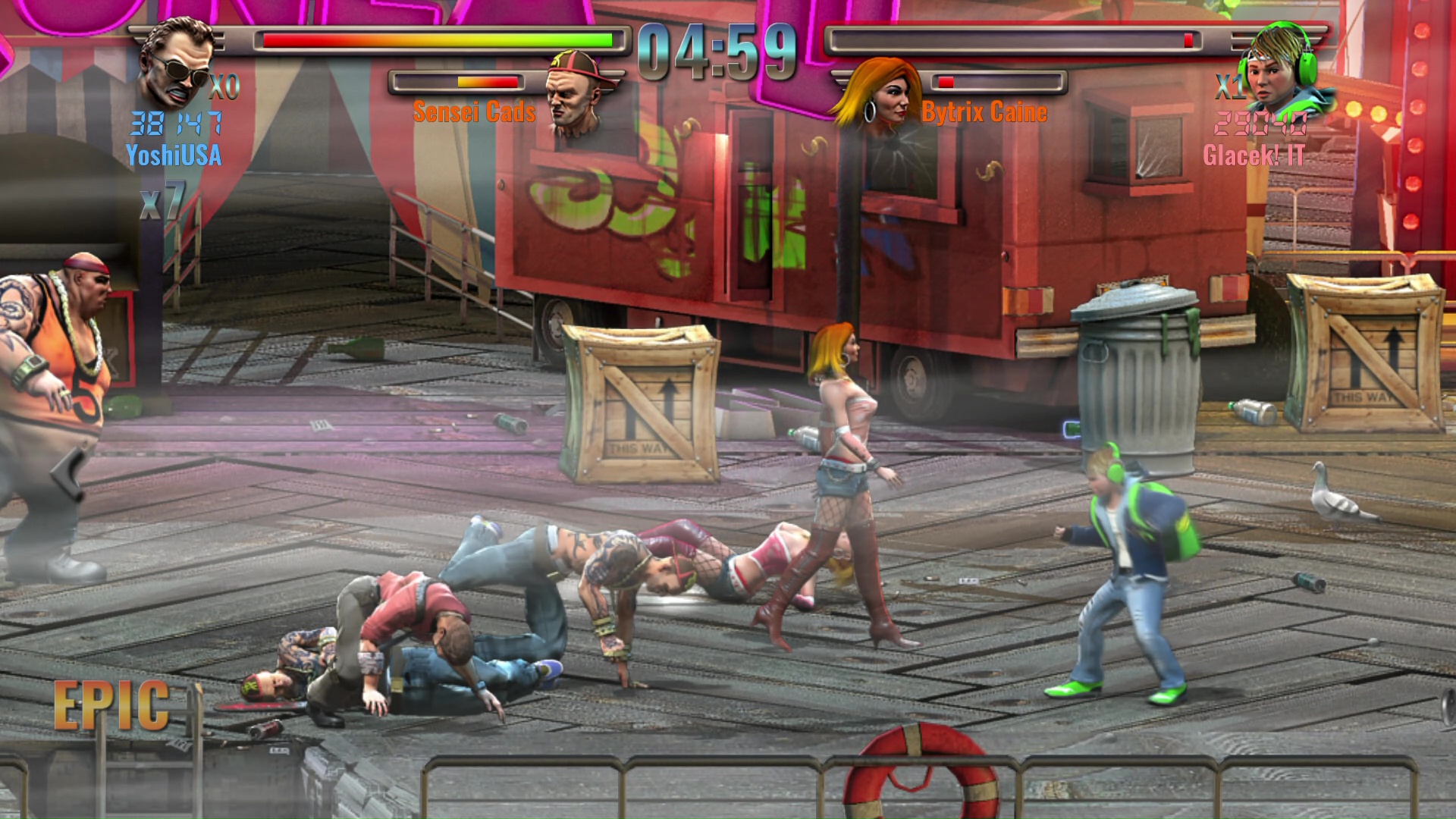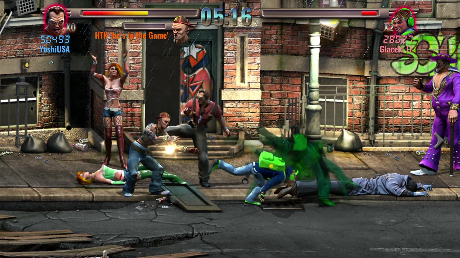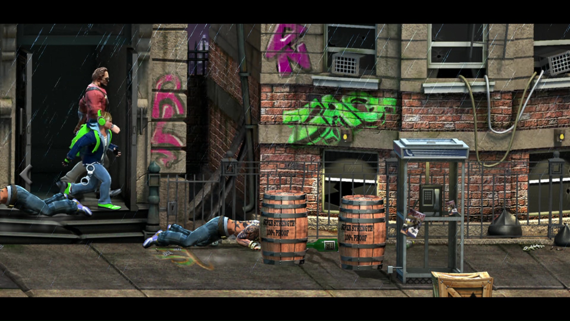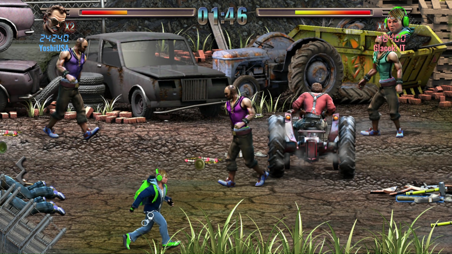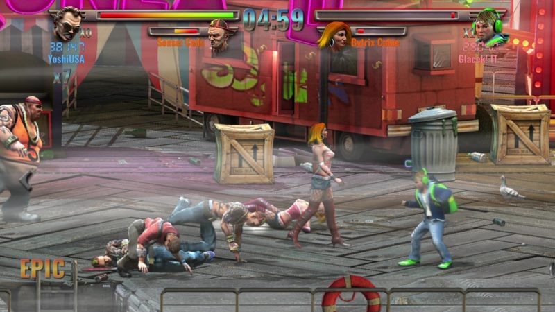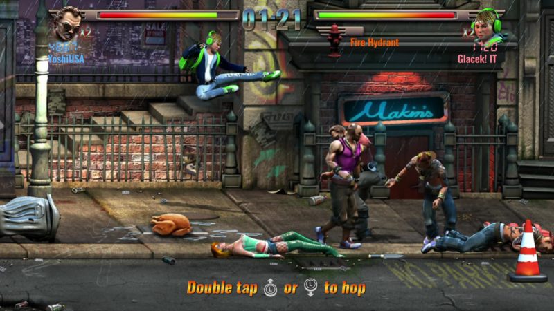 Zanim rozpoczniemy zabawę, wybrać możemy jedną z trzech postaci. Niestety, poza wyglądem różnice między nimi są marginalne. Każdy bohater potrafi wykonać parę podstawowych ataków, mocny ruch specjalny odejmujący nam część pasków zdrowia, czy dash. Podczas pojedynków skorzystać możemy także z leżących na ziemi przedmiotów, wszystkie z nich niestety już po paru ciosach się rozpadają. Wśród nich znajdziemy między innymi kije bejsbolowe, butelki, noże, czy siekiery.
