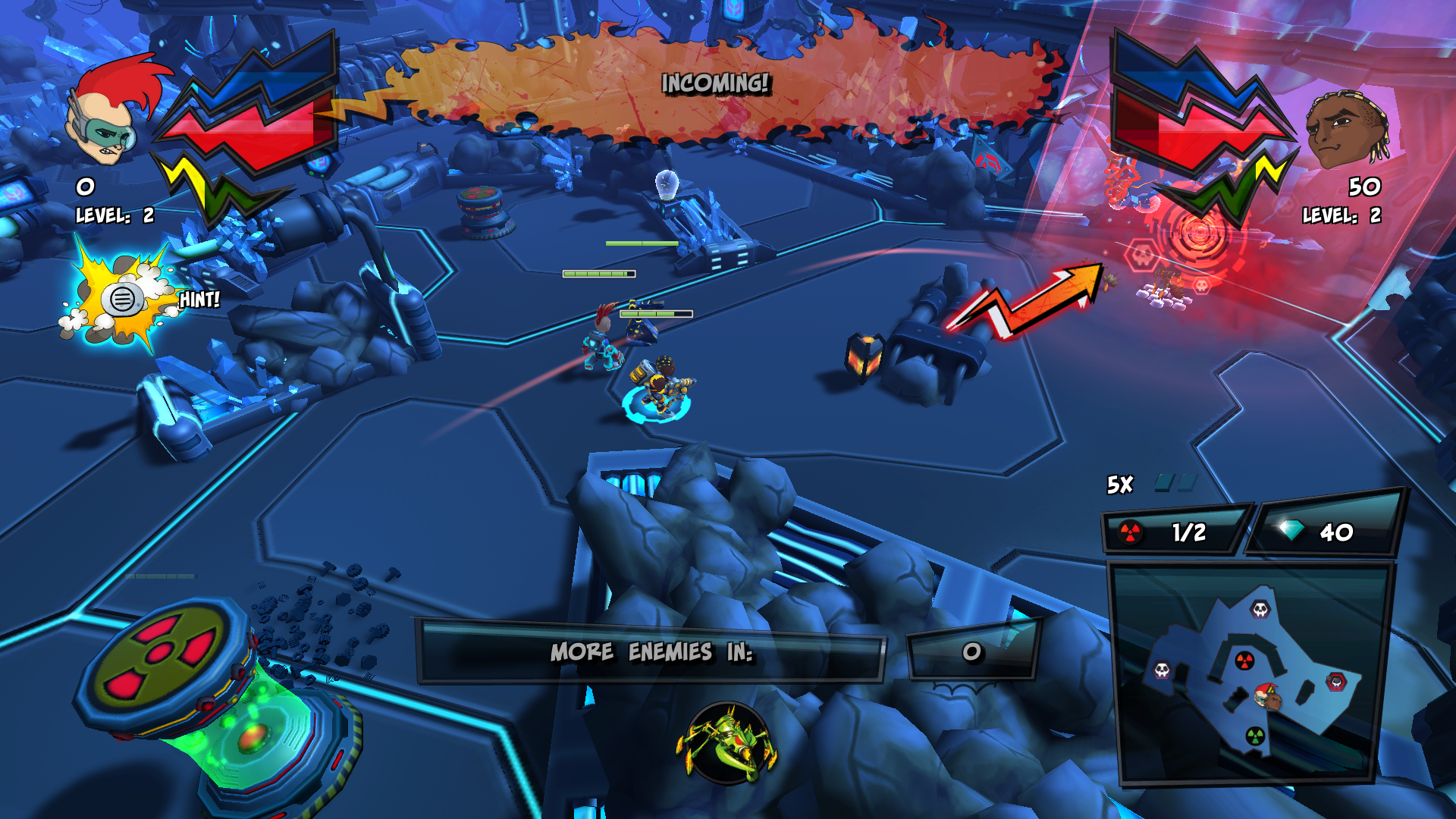Całość gry sprowadza się do aktywowania reaktorów rozmieszczonych na mapie i ich obrony przed kolejnymi falami przeciwników. Jeżeli w trakcie walki, któryś z naszych bohaterów polegnie, wystarczy podejść do jednego z tych reaktorów i odczekać 6 sekund w jego pobliżu, by go wskrzesić.