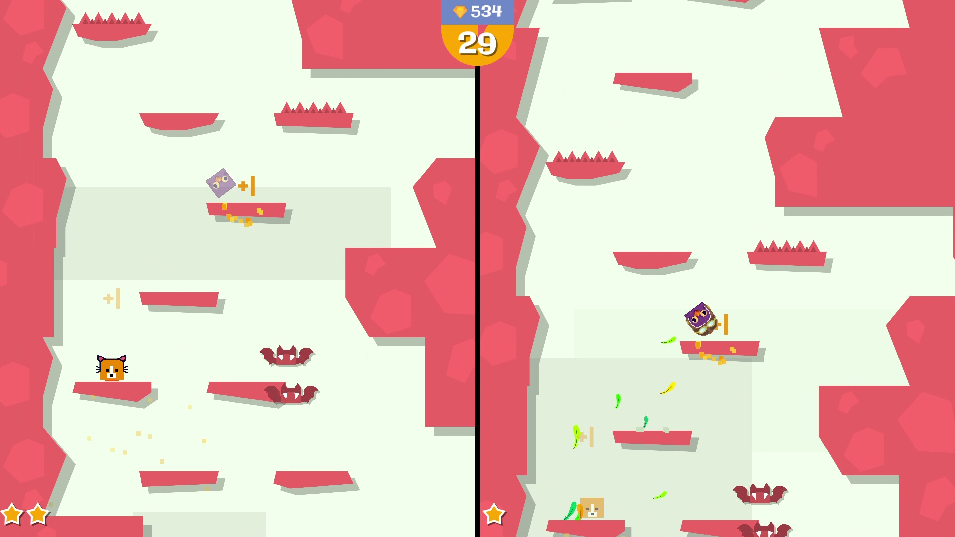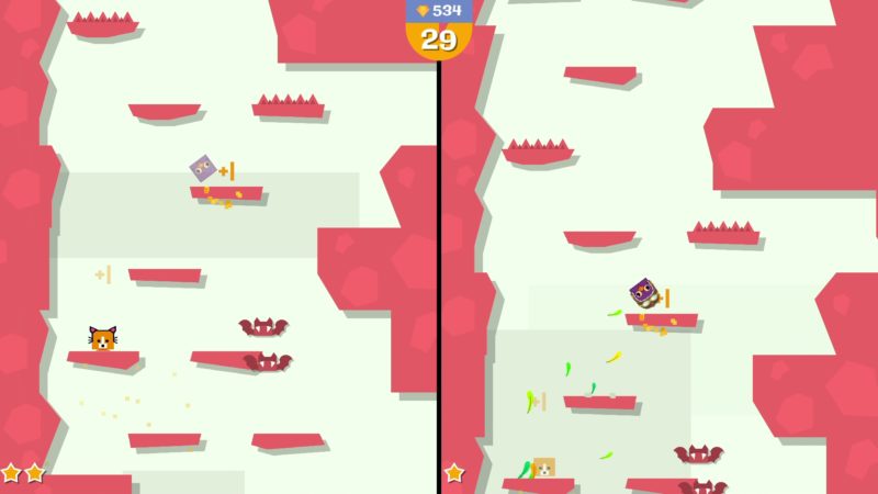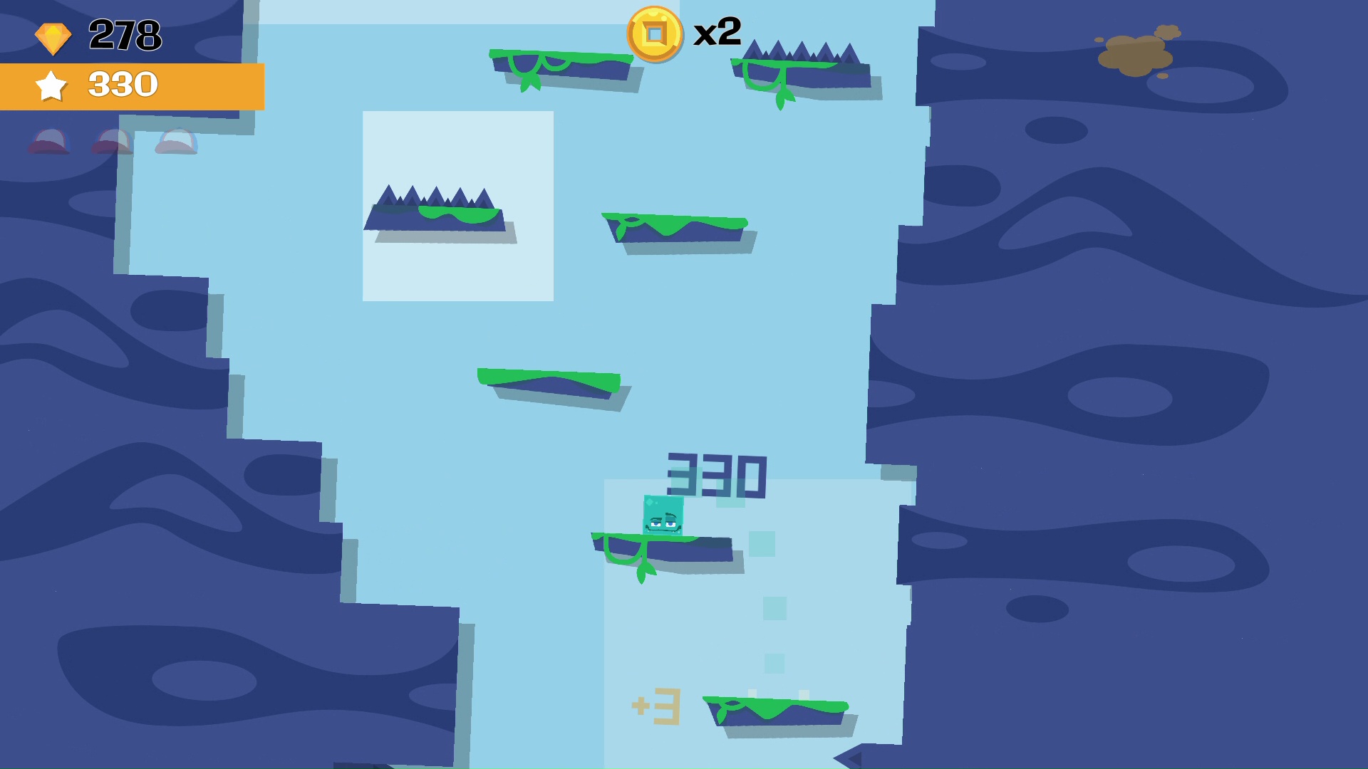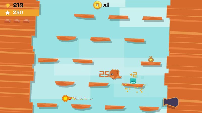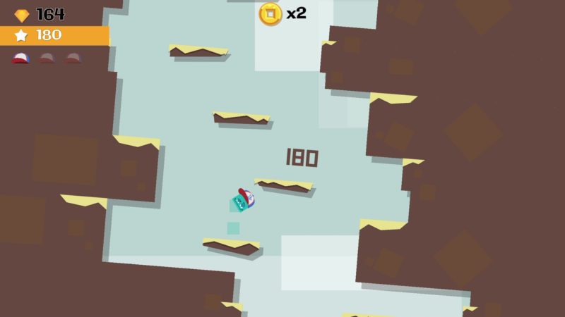 Drobną pomocą dla nas podczas podróży są jednak power upy, mające drobny wpływ na rozgrywkę. Dzięki czapce możemy bezkarnie uderzyć o jedną przeszkodę, rakieta wysyła nas w górę o pewną liczbę pięter, a żeton pozwoli na koniec rundy na wylosowanie bonusów. Po drodze zbieramy także kryształy, będące walutą wewnątrz gry. Dzięki niej możemy odblokowywać i ulepszać dodatkowe postacie.