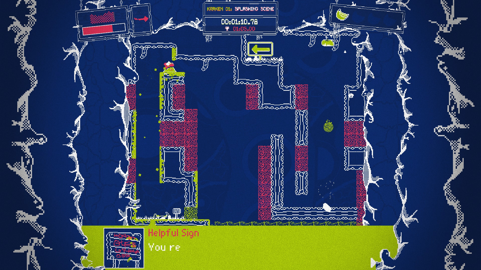 Slime-san to, jak nazwa wskazuje, slime. Wiecie te takie glutowate cosie co przyklejają się do wszystkiego. Pewnego dnia został połknięty przez ogromną dżdżownice i tak rozpoczyna się nasza podróż przez jej układ trawienny, by wydostać się z powrotem przez usta. Po drodze, nie ma czasu do namysłu, bo goni go ściana kwasów trawiennych.