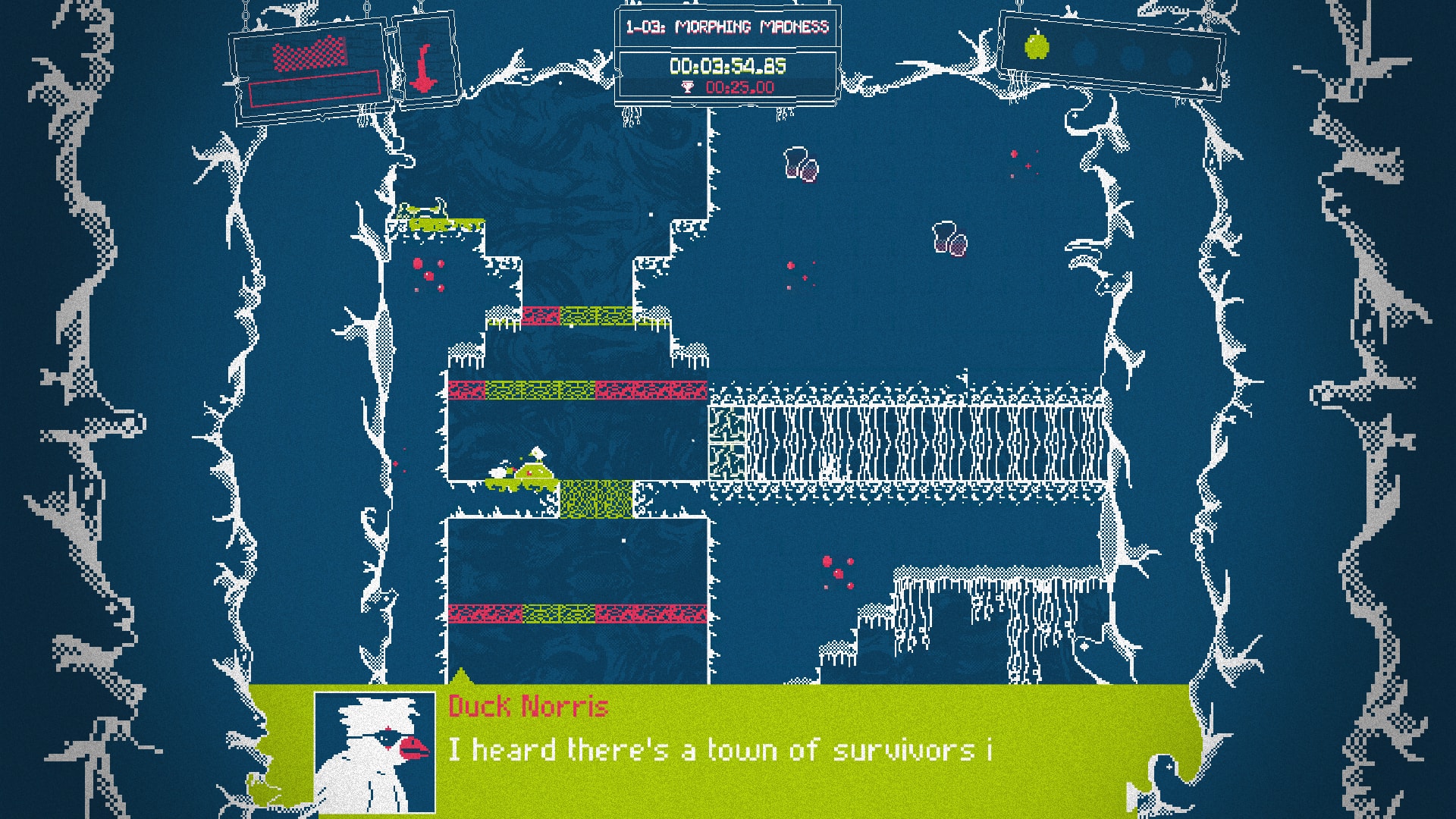 Rozgrywka w tej grze jest prosta, każdy poziom ma jeden cel przejść – z punktu startu do punktu wyjścia. W tym celu dysponujemy szeregiem zdolności. Do wyboru mamy podwójny skok, zmianę kształtu i dashe. Dodatkowo na chwilę możemy przykleić się do ściany. Na chwilę, bo po mniej niż sekundzie zaczniemy się ześlizgiwać w dół – z reguły ku naszej zagładzie.