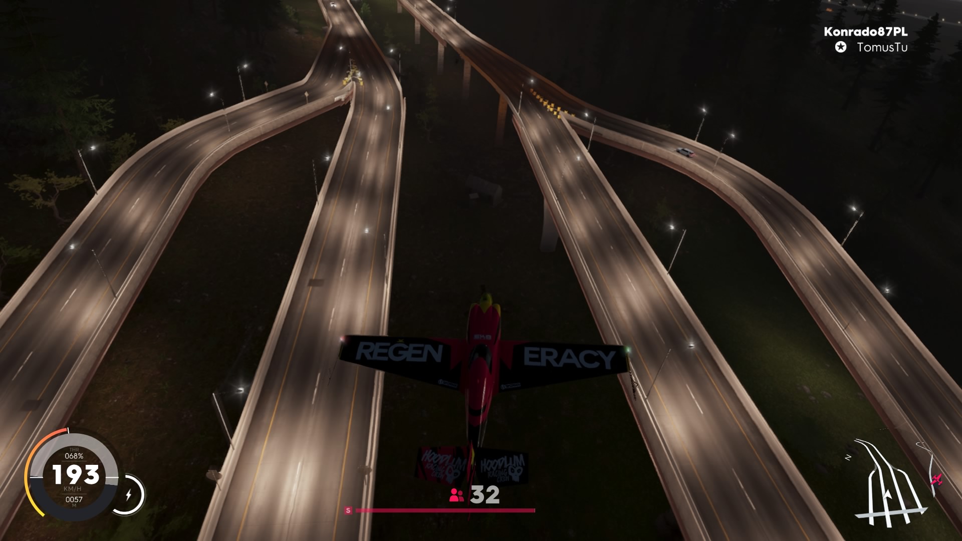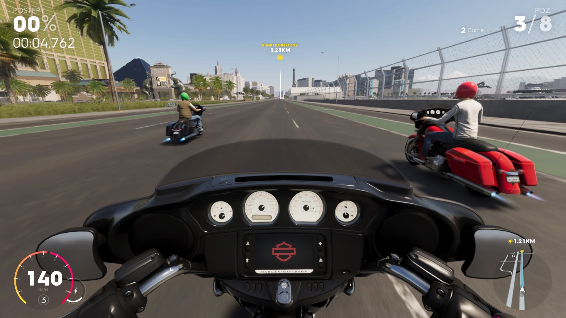 Wyścigi uliczne odbywają się w kilku wielki miastach Stanów zjednoczonych. Możemy śmigać po ulicach: Los Angeles, Las Vegas, Nowego Yorku, czy Miami. Street Racing, to nie tylko jazda z dużą prędkością po centrum miasta, trasy dodatkowo zostały urozmaicone licznymi skrótami i rampami – kilka z nich jest na tyle dużych, że będziemy jeździć nawet po dachach wysokich budynków. W Street Racingu możemy ściągać się także motocyklami sportowymi, jednak dla samych ścigaczy nie ma żadnych osobnych zawodów. Jest tylko jeden bardzo fajny wyścig po wiejskich rejonach USA dla chopperów Harleya Davidsona. Niestety wszystkie wyścigi uliczne możemy zrobić jednym samochodem, szkoda, że deweloper nie pokusił się o urozmaicenie i podział na rodzaje nadwozia, napęd, kraj lub kontynent. Dla mnie to duży minus, gdyż w The Crew 2 jest naprawdę dużo samochodów, ale gra sama z siebie nie zachęca do ich testowania. Gdy już znudzą nam się wyścigi uliczne, to możemy spróbować swoich sil w zawodach długodystansowych dla hipercarów, czyli najszybszych samochodów w grze. To bardzo długie wyścigi po całych Stanach, które mogą trwać od 10 do 40 minut. Same trasy są zaprojektowane bajecznie, śmigamy po miastach, lasach, terenach wiejskich. Niestety zwycięstwo w tych zawodach jest bardzo trudne, ponieważ nie wiedzieć czemu zakręty w tych zawodach nie są oznaczone! Gracz musi cały czas polegać na małej mini-mapie. To jest strasznie frustrujące, że w wyścigach zręcznościowych nikomu nie chciało się oznaczyć zakrętów znakami lub hologramami. Pędzisz 200-300km/h musisz unikać ruchu ulicznego i jeszcze patrzeć na radar, aby wypatrywać zakrętu.
