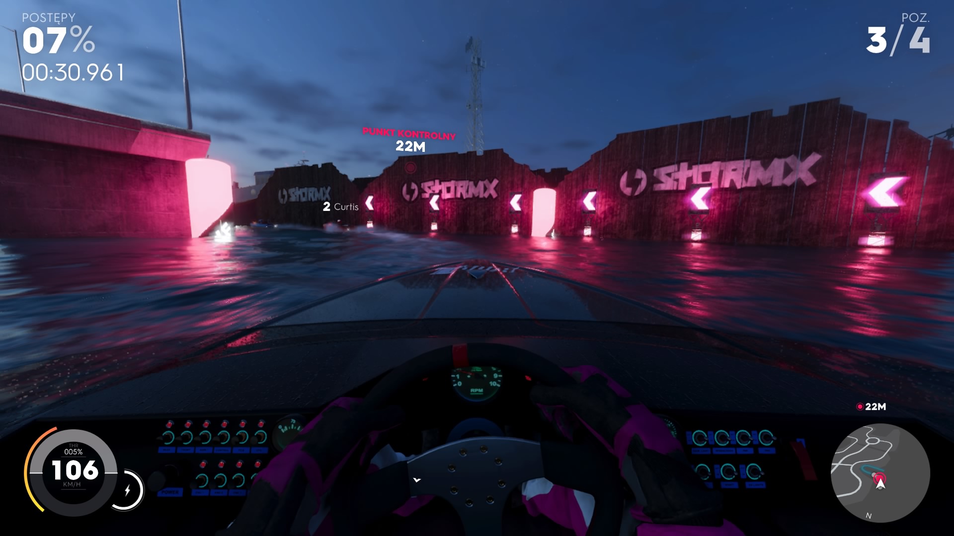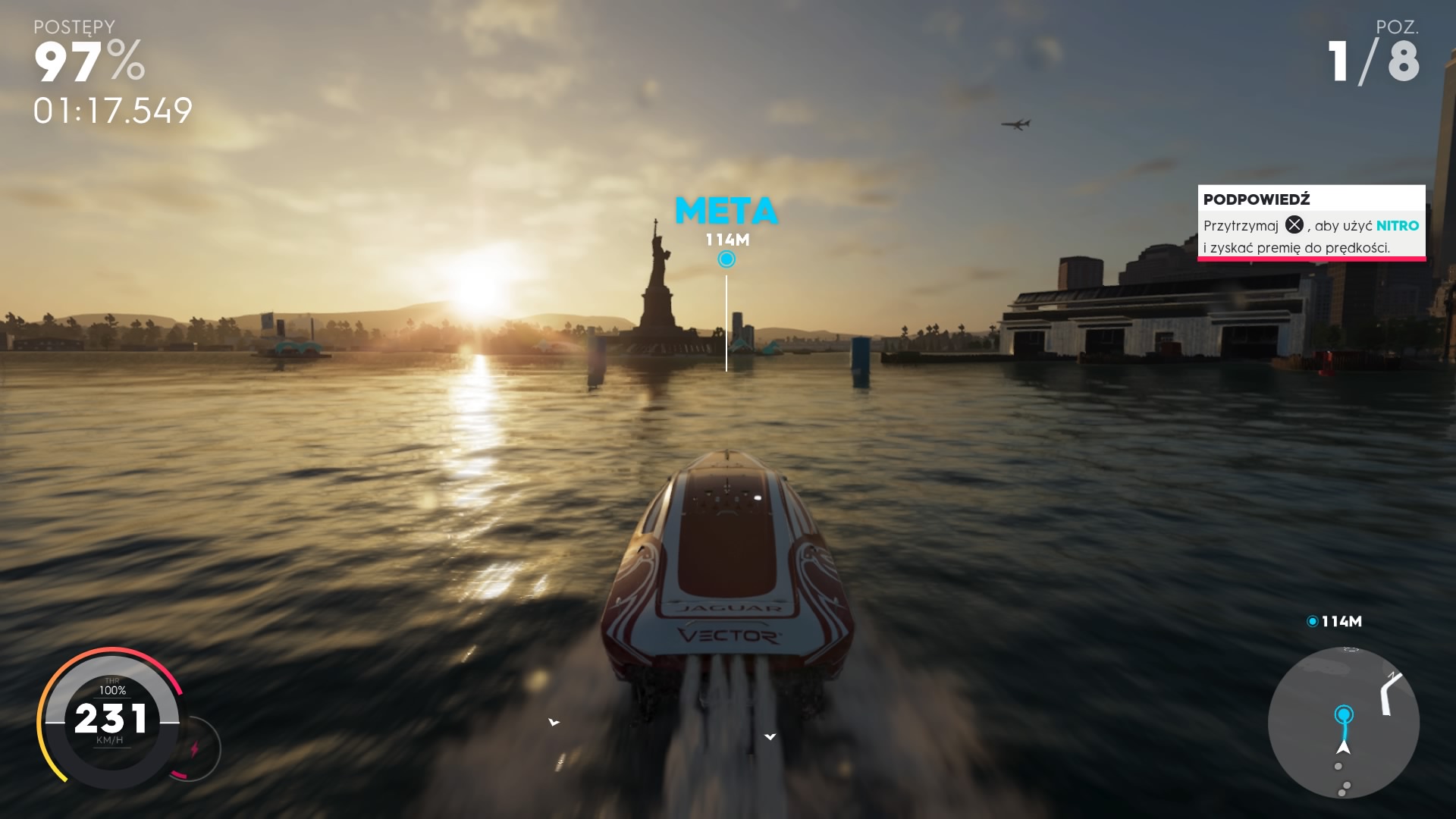 Zawody pokazowe, w których musimy pobić wymaganą liczbę punktów. Będziemy robić akrobacje samolotami w powietrzu, a na lądzie zasiadamy za kierownicą wielkich monster trucków. Trafiamy na stadion, który wypełniony jest różnymi przeszkodami, naszym celem nie są tutaj jedynie skoki, ale zbieranie monet, które znacznie wpływają na końcowy wynik. O ile samoloty szybko się potrafią znudzić, bo co chwile wykonujemy te sam triki (pętla, beczka, lot tuż nad ziemią). Nie wiem natomiast, co tutaj robią wyścigi małych jedno osobowych łodzi zwanych jet sprint. Możemy ścigać się z bootami lub płynąc przez punkty kontrolne na czas. Od normalnych wyścigów motorówek, o których przeczytacie kilka akapitów niżej jet sprint wyróżnia się tym, że te male łódki są piekielnie szybkie oraz niesamowicie zwrotne, wystarczy tylko delikatnie wychylić analog, aby gwałtownie wejść w zakręt.