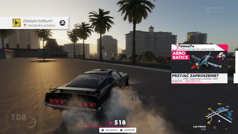 Gra wyścigowa bez trybu wieloosobowego na premierę? Niestety tak to wygląda w przypadku The Crew 2. PvP zostanie dopiero udostępnione w grudniu, pół roku po premierze, dla mnie brzmi to strasznie. Do tego czasu pozostaje tylko granie z kilkoma znajomymi w tytułowej “Ekipie”. Plus kooperacji jest taki, że nawet jak ktoś nie jest dobrym kierowcą, to wystarczy, aby jeden z członków grupy wygrał wyścig lub dojechał na podium, a nagrody otrzymają wszyscy. W kooperacji zrobiłem 3/4 wyścigów i bawiłem się całkiem dobrze.