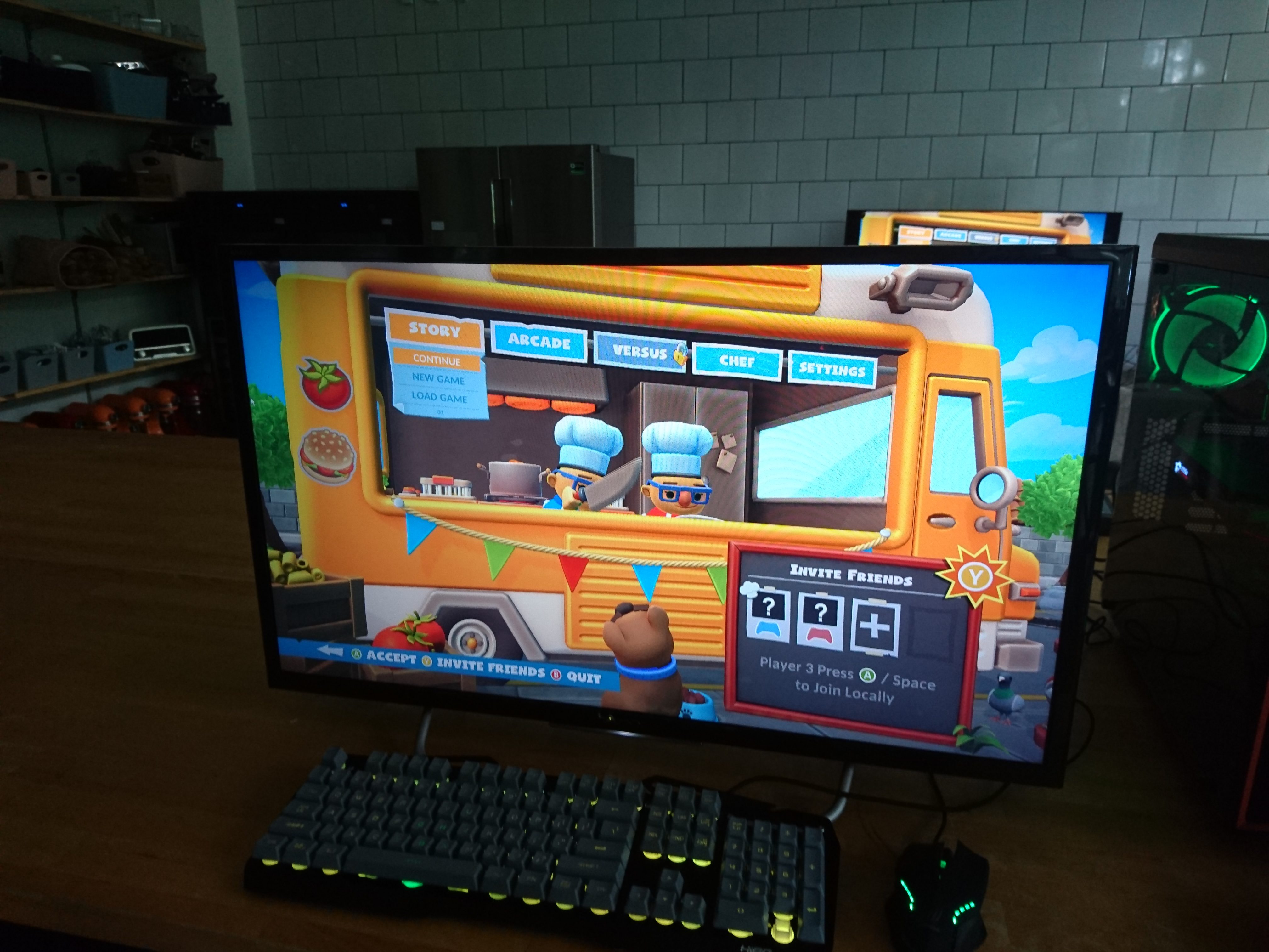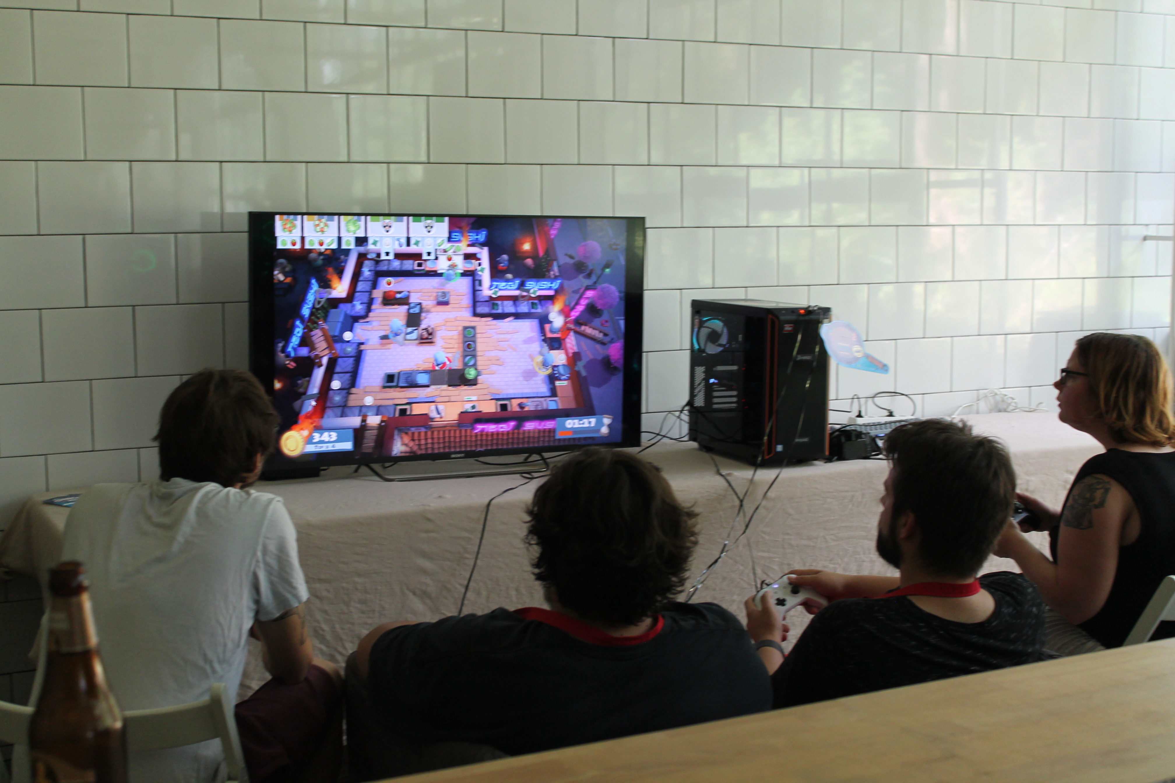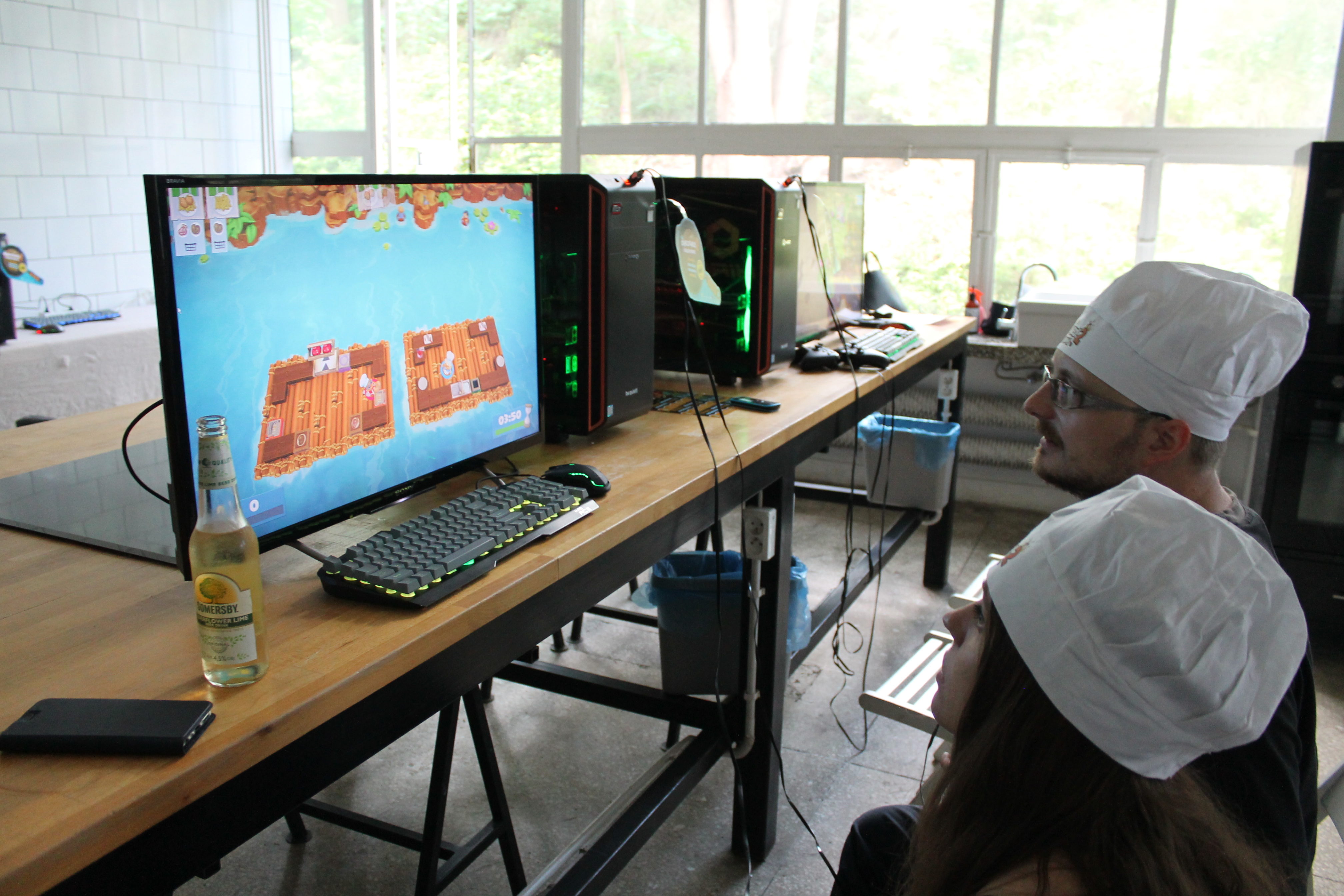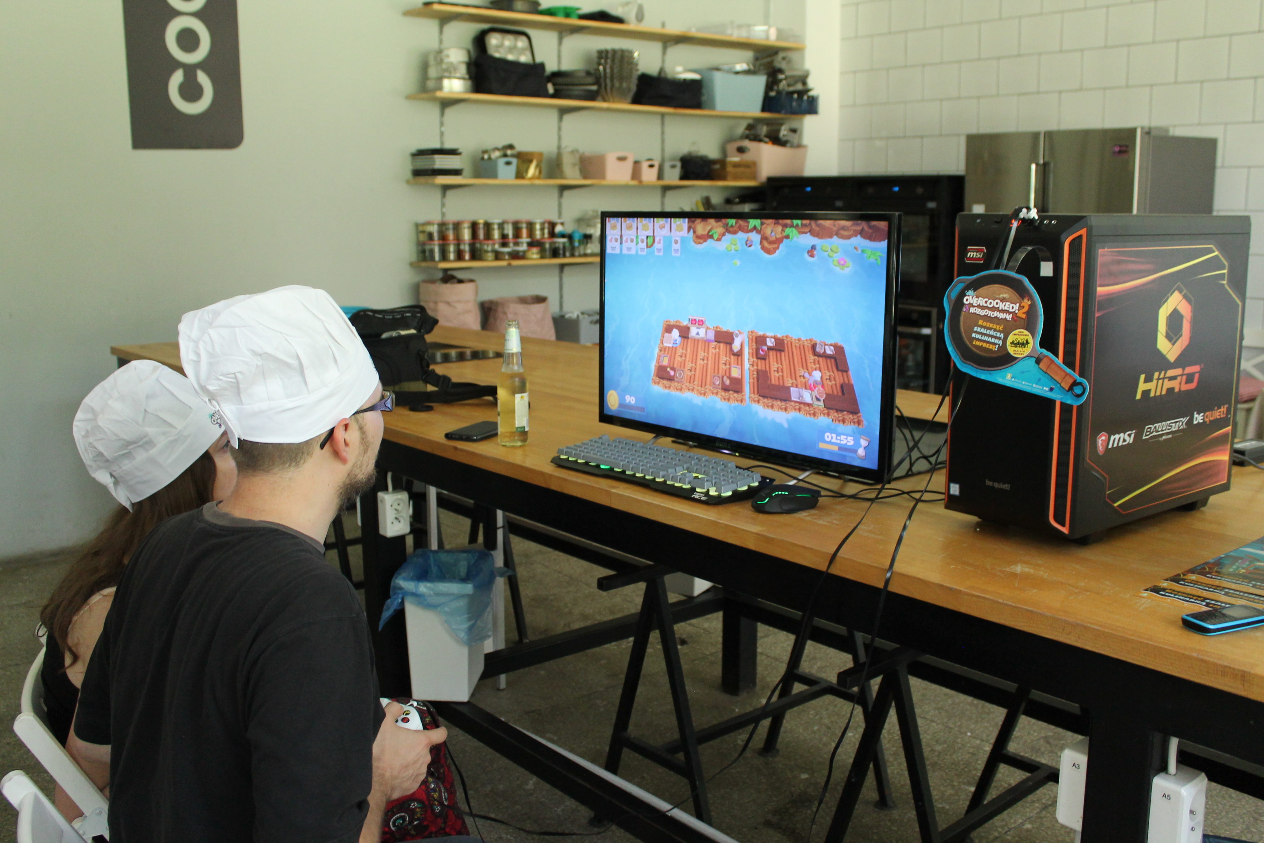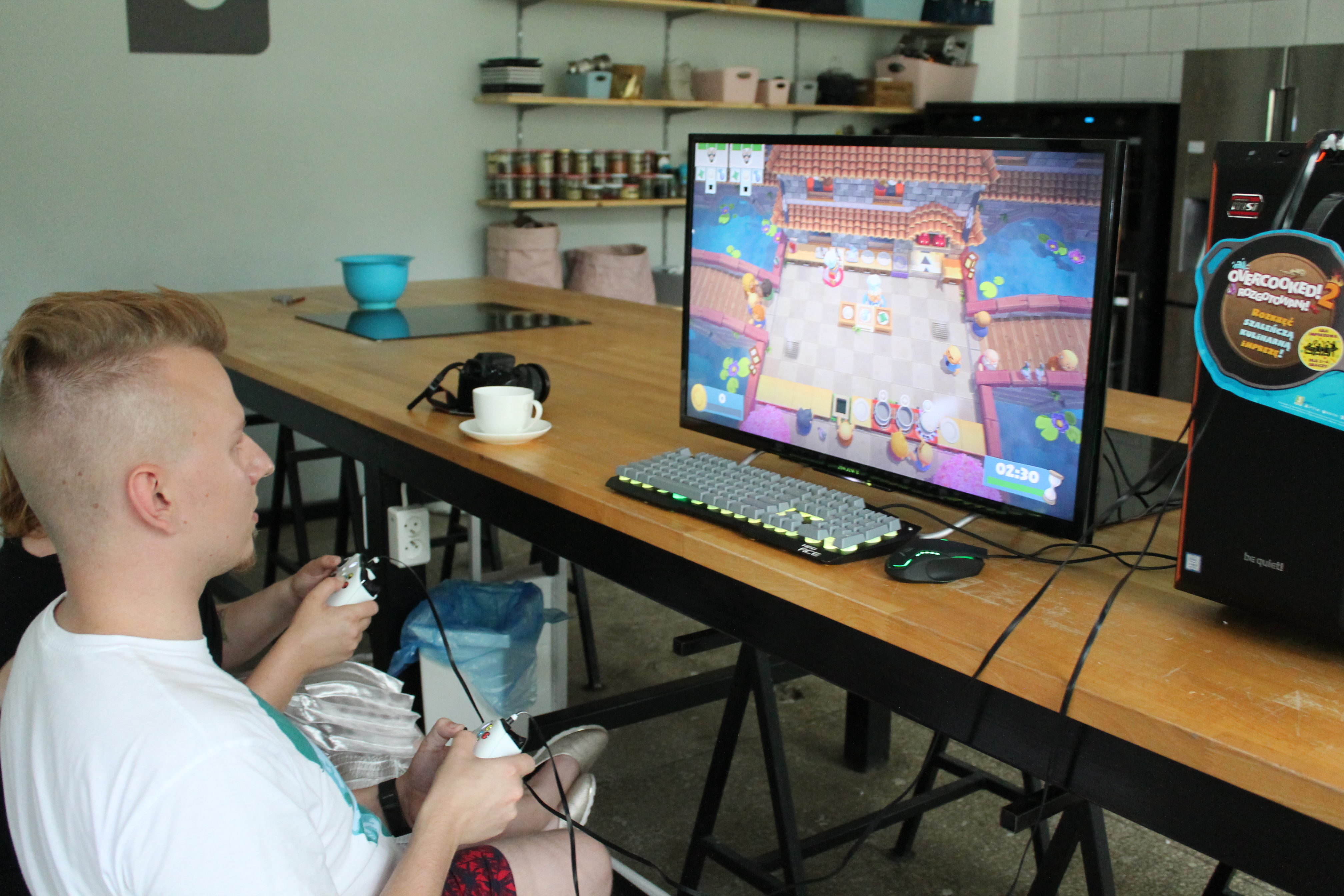 Impreza miała miejsce 26 lipca (czwartek) w Akademii COOK UP w Warszawie. Na miejsce zajechałem koło wpół do jedenastej i moim oczom ukazały się 3 stanowiska z odpaloną grą (dwa przeznaczone dla dwóch graczy i jedno dla czterech kucharzy). Jednak nie to rzucało się najbardziej w oczy. Atrakcją, która czekała na nas tego dnia miało być jednoczesne testowanie gry umilone warsztatami kulinarnymi, w których to my mieliśmy coś upichcić. W okolicach godziny jedenastej impreza rozpoczęła się oficjalnie, a my zostaliśmy podzieleni na dwie grupy. Pierwsza drużyna miała zająć się przygotowaniem jedzenia a druga mogła w tym momencie oddać się błogiemu testowaniu Overcooked 2. Przez to, że trafiłem do grupy “grających” to nie zastanawiając się długo usiadłem do stanowiska dla dwóch graczy. Już wtedy dało się odczuć, że tytuł jest stworzony do grania z kimś, bo przez obecność drugiej osoby można było się poczuć jak w typowej kuchni. Oczywiście za tym idą takie rzeczy jak wydawanie poleceń, pomyłki oraz rzucanie talerzy w miejsca, z których nie można ich wyciągnąć. Po kilku partyjkach w duetach przyszedł czas na danie główne, czyli zabawę w czterech graczy. I to właśnie w takiej konfiguracji tytuł ukazuje swój prawdziwy potencjał. Dialogi podczas kulinarnych batalii są czystym złotem komediowym a satysfakcja jak w czwórkę uda się wyjść na plus, jeśli chodzi o wynik końcowy to nagroda sama w sobie.