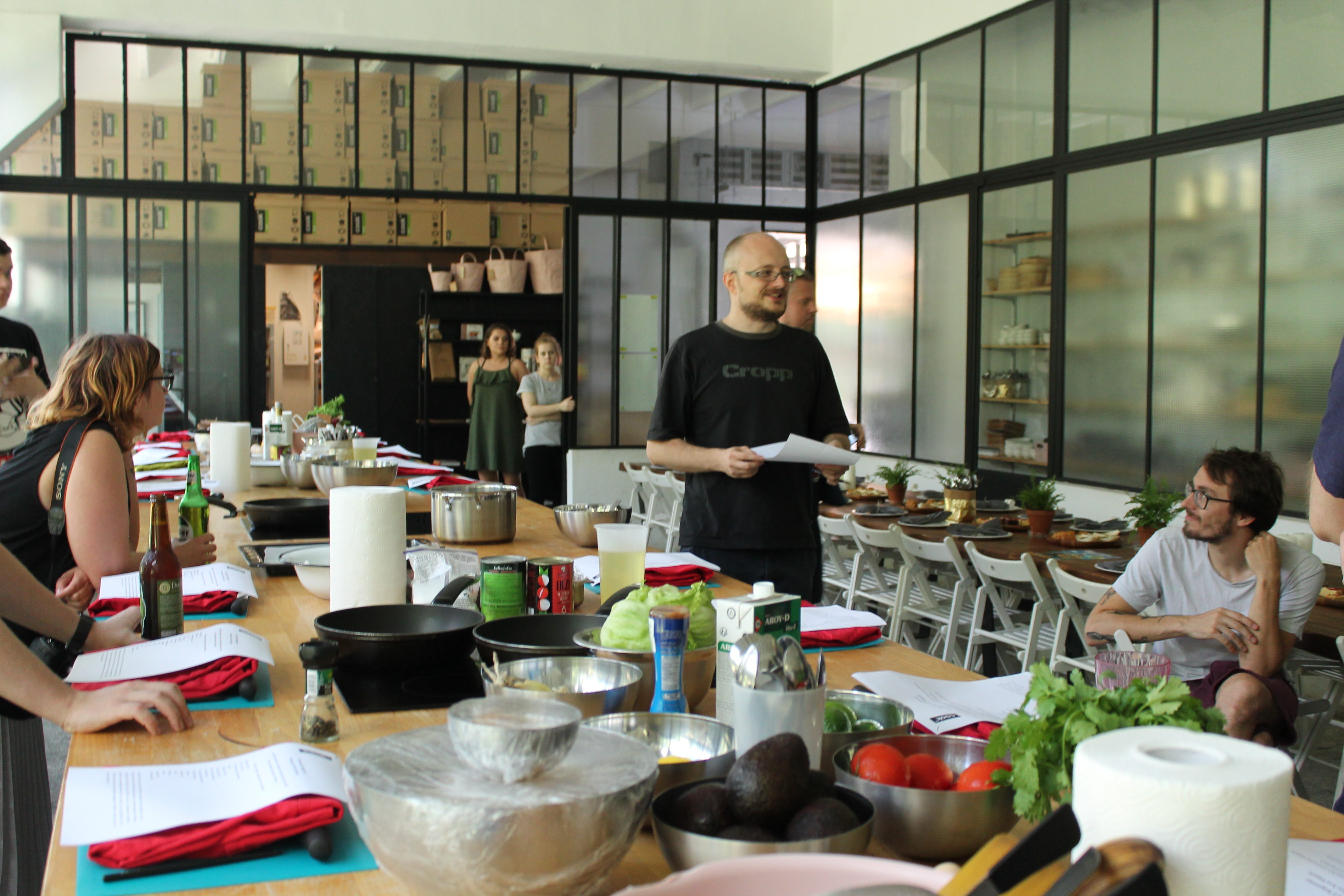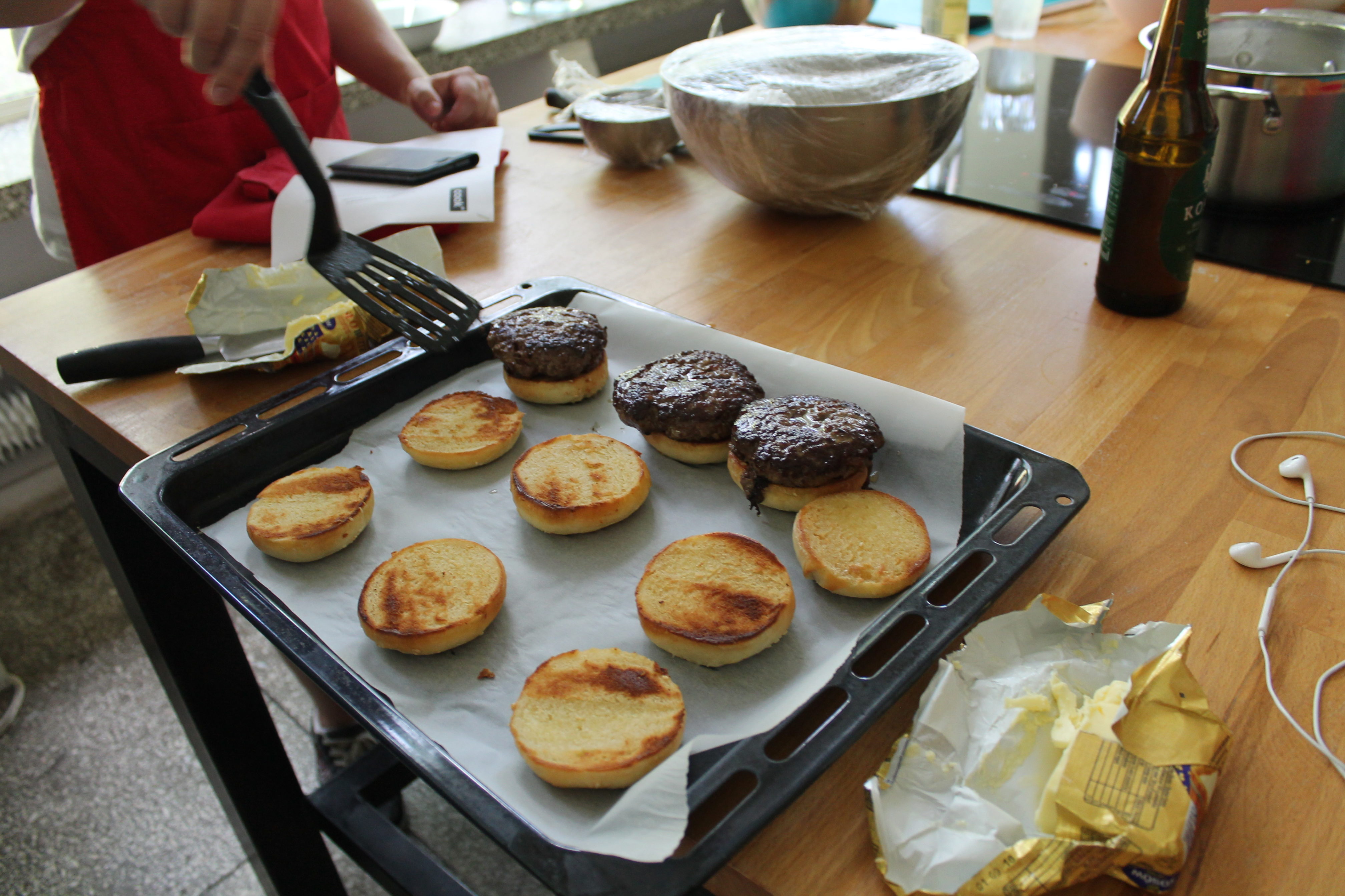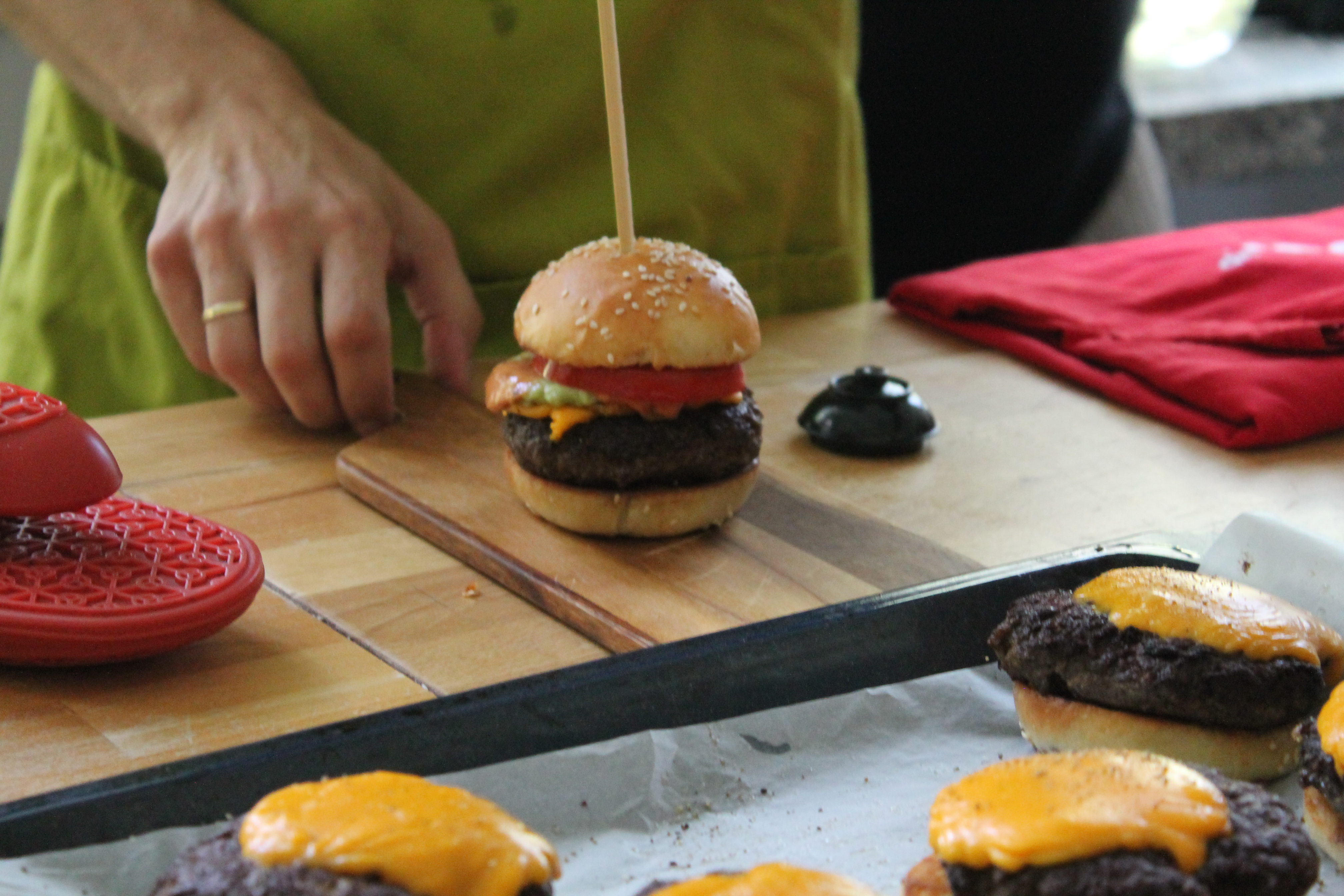 I teraz przechodzimy do części stricte kulinarnej. Otóż, pierwsza grupa skończyła swoje wojaże przy gotowaniu, więc przyszła pora abyśmy to my założyli stylowe czapki z logiem gry oraz gustowne czerwone fartuchy. Na początek otrzymaliśmy krótkie wprowadzenie, co mamy oddane do naszej dyspozycji podczas gotowania i kilka słów wprowadzenia. I po tym się zaczęło. Na początek mieliśmy odmierzyć odpowiednią ilość mięsa, które miało być sercem naszych burgerów. Oczywiście każdy zabrał się ochoczo do pracy i widać było, że wszyscy mieli ogromny ubaw podczas tych warsztatów. Tutaj jakieś komentarze na temat tego, co nawzajem robimy, żarty i ogólnie świetna atmosfera, której nie mogła pokonać nawet pogoda (wysoka temperatura plus gotowanie nie zawsze idą w parze). Bez większych problemów udało nam się stworzyć nasze małe dzieła sztuki i każdy mógł cieszyć się własnoręcznie zrobionym burgerem, który sam w sobie był przepyszny. Po radosnej konsumpcji przyszedł czas na podsumowanie naszych warsztatów. Tym podsumowaniem miało być rozdanie dwóch voucherów na warsztaty kulinarne w Akademii COOK UP. Jeden z nich miał być przekazany osobie, która według naszego prowadzącego wykazywała się największym zainteresowaniem w związku z warsztatami. Druga natomiast miała zostać wyłoniona na podstawie losowania. Po przyznaniu nagród (tutaj gratulacje dla Radka i Krzycha) przygoda z eventem Overcooked 2 mogła zostać uznana za zakończoną z ogromnym sukcesem.