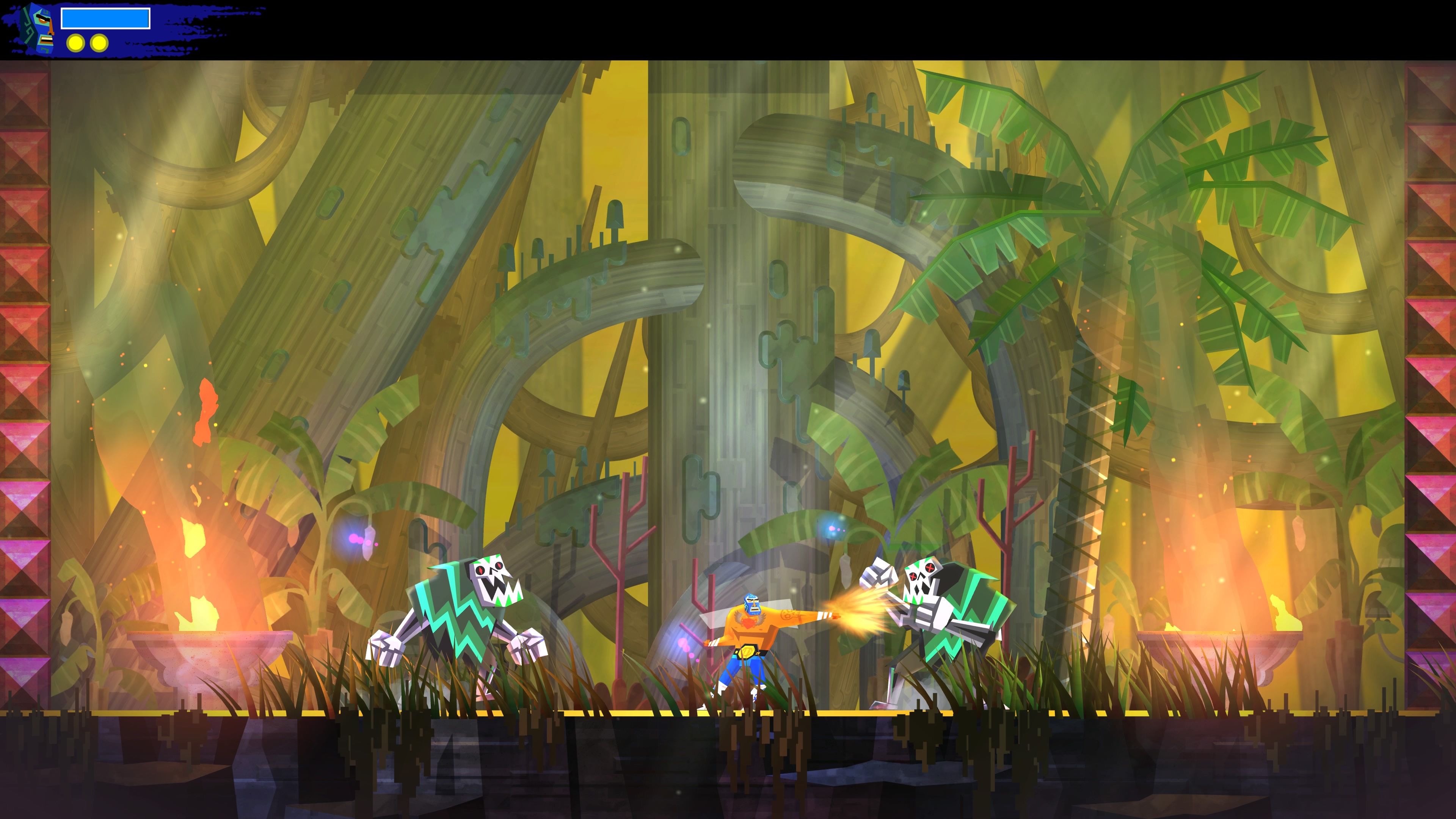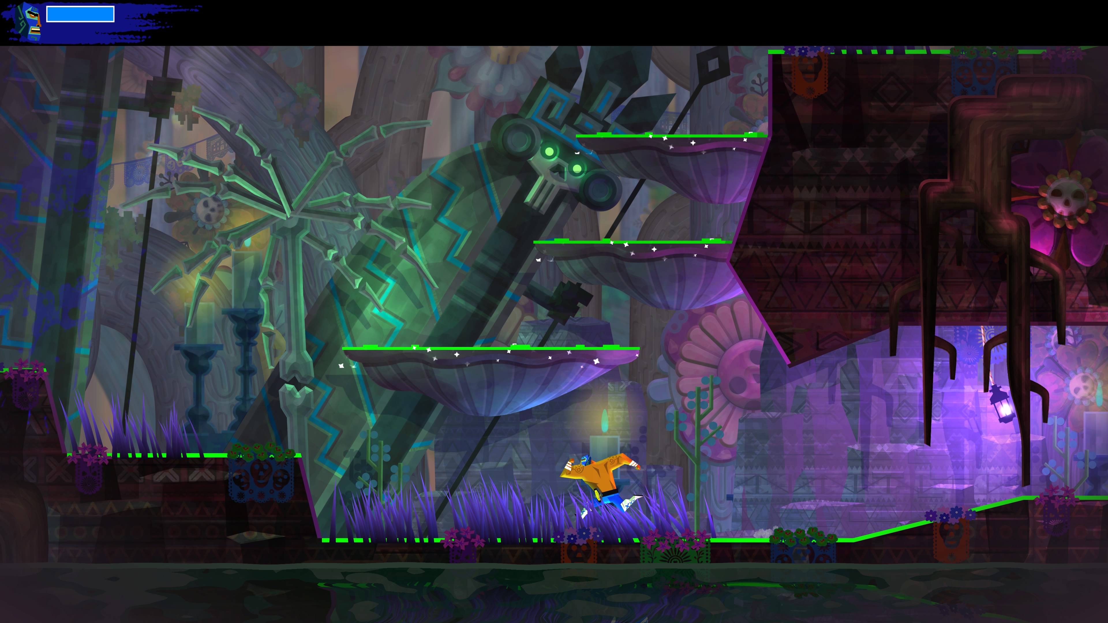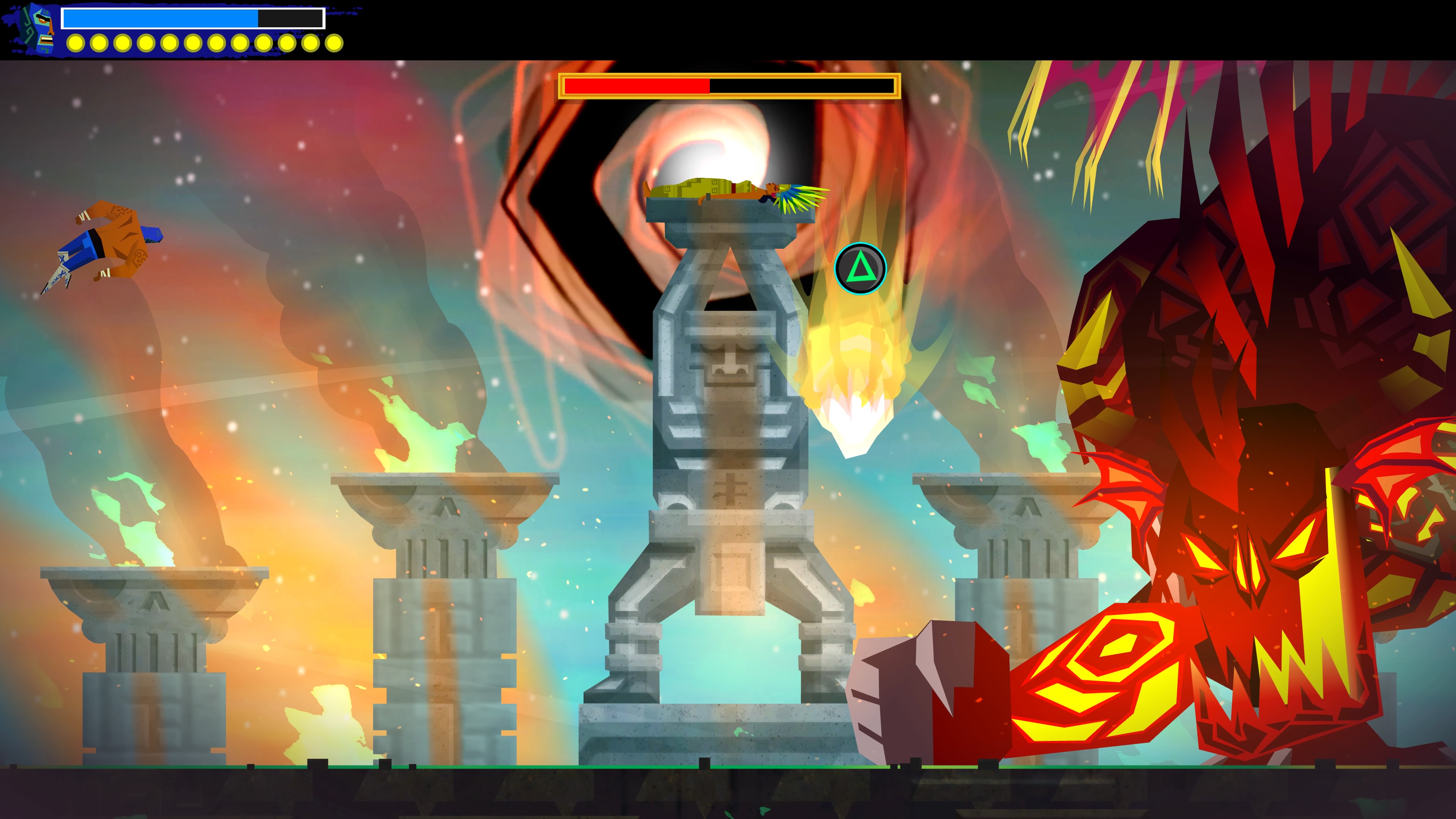 Wśród nowych umiejętności dostępne jest Eagle Boost. Dzięki temu talentowi Juan może wybijać się w powietrzu od specjalnych znaków porozrzucanych po świecie. Działa to trochę na podobnej zasadzie co Bash z gry Ori and the Blind Forest. Z tą różnicą, że w Guacamelee! 2 wymaga odrobinę więcej zręczności ze strony gracza.