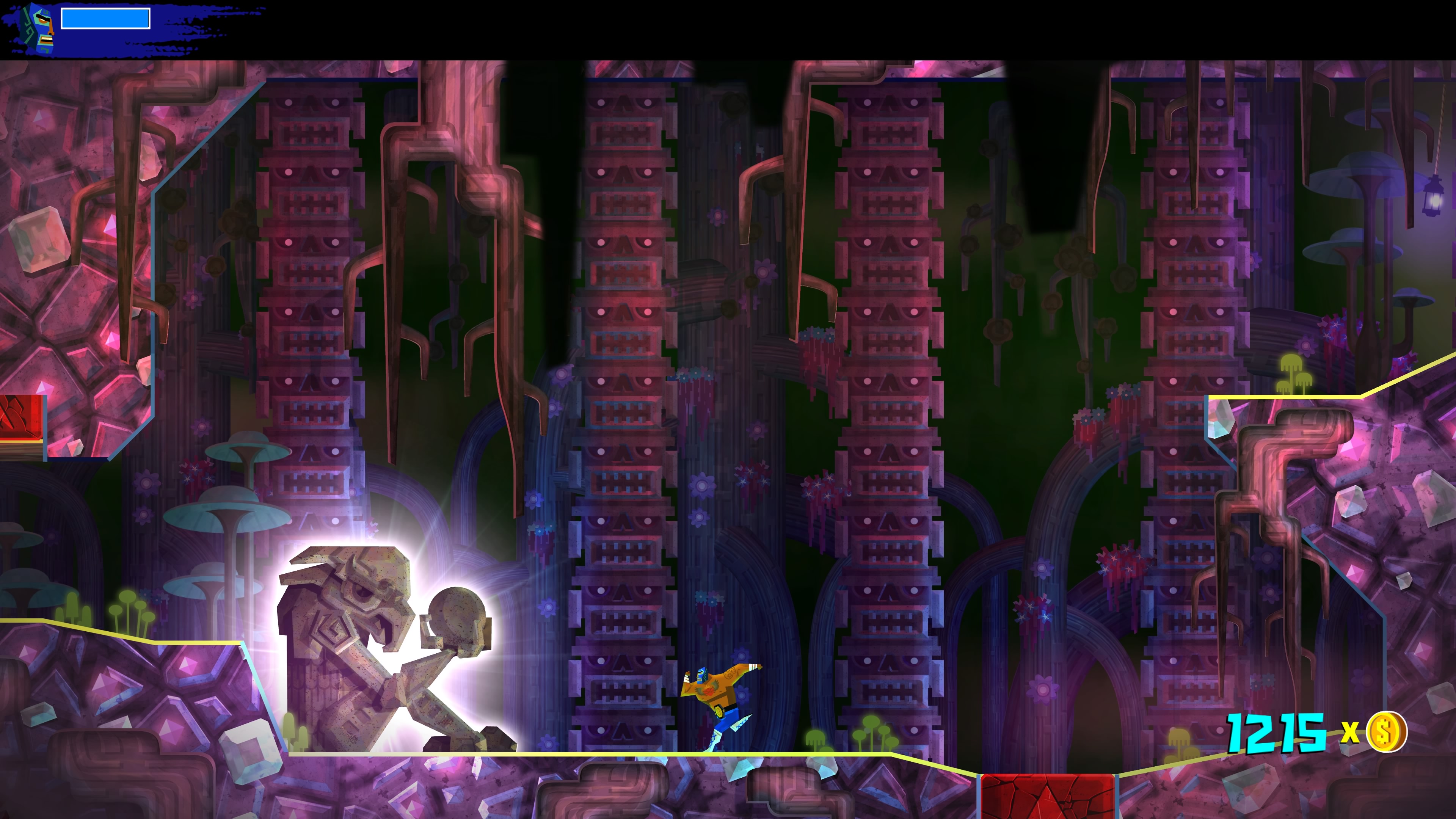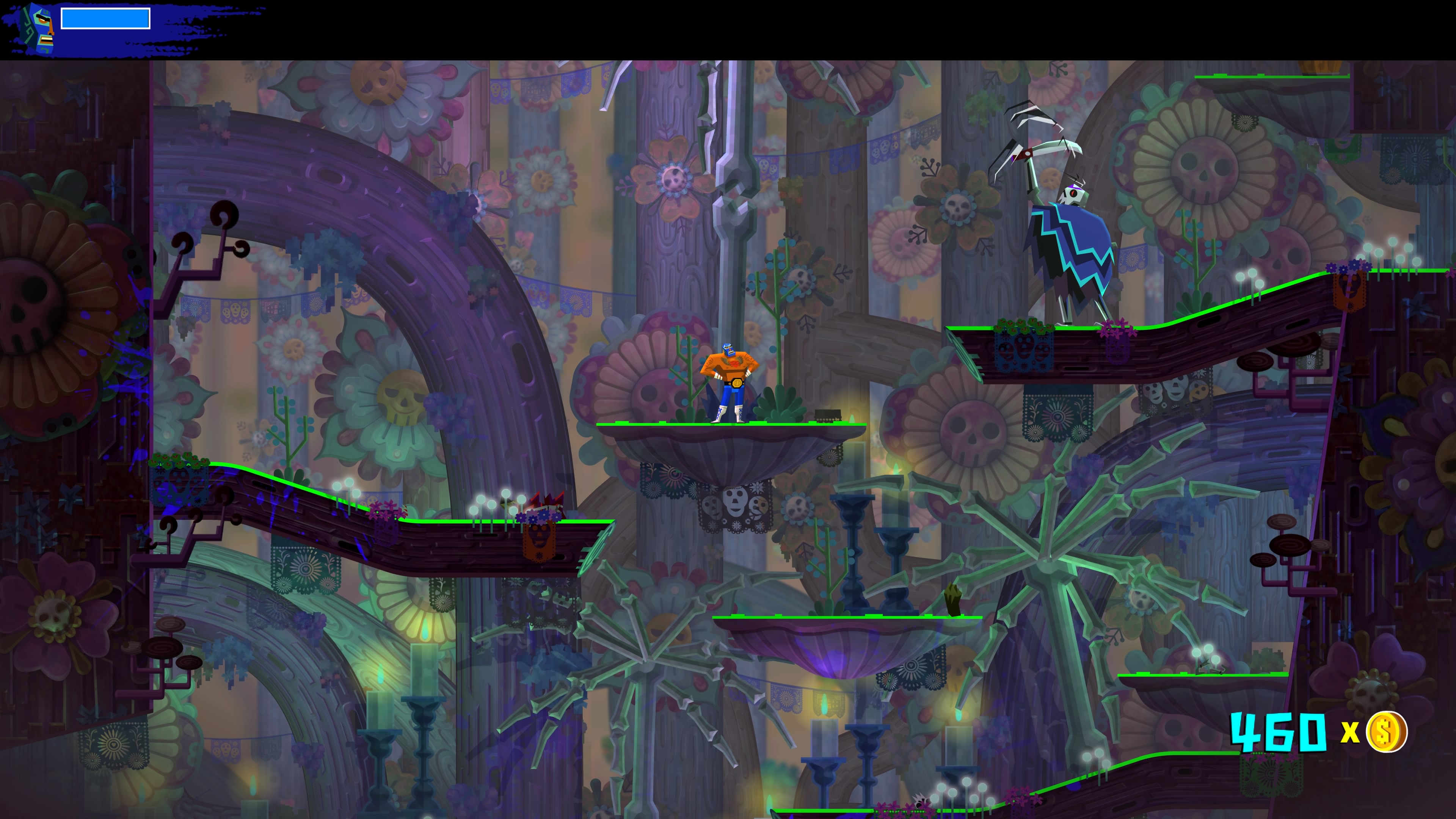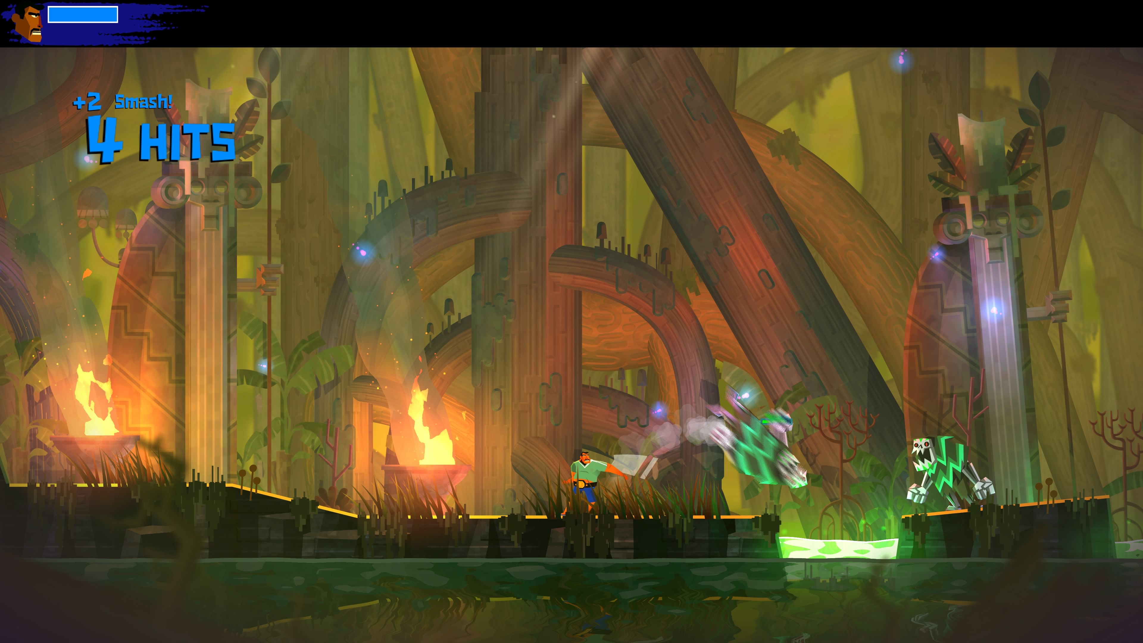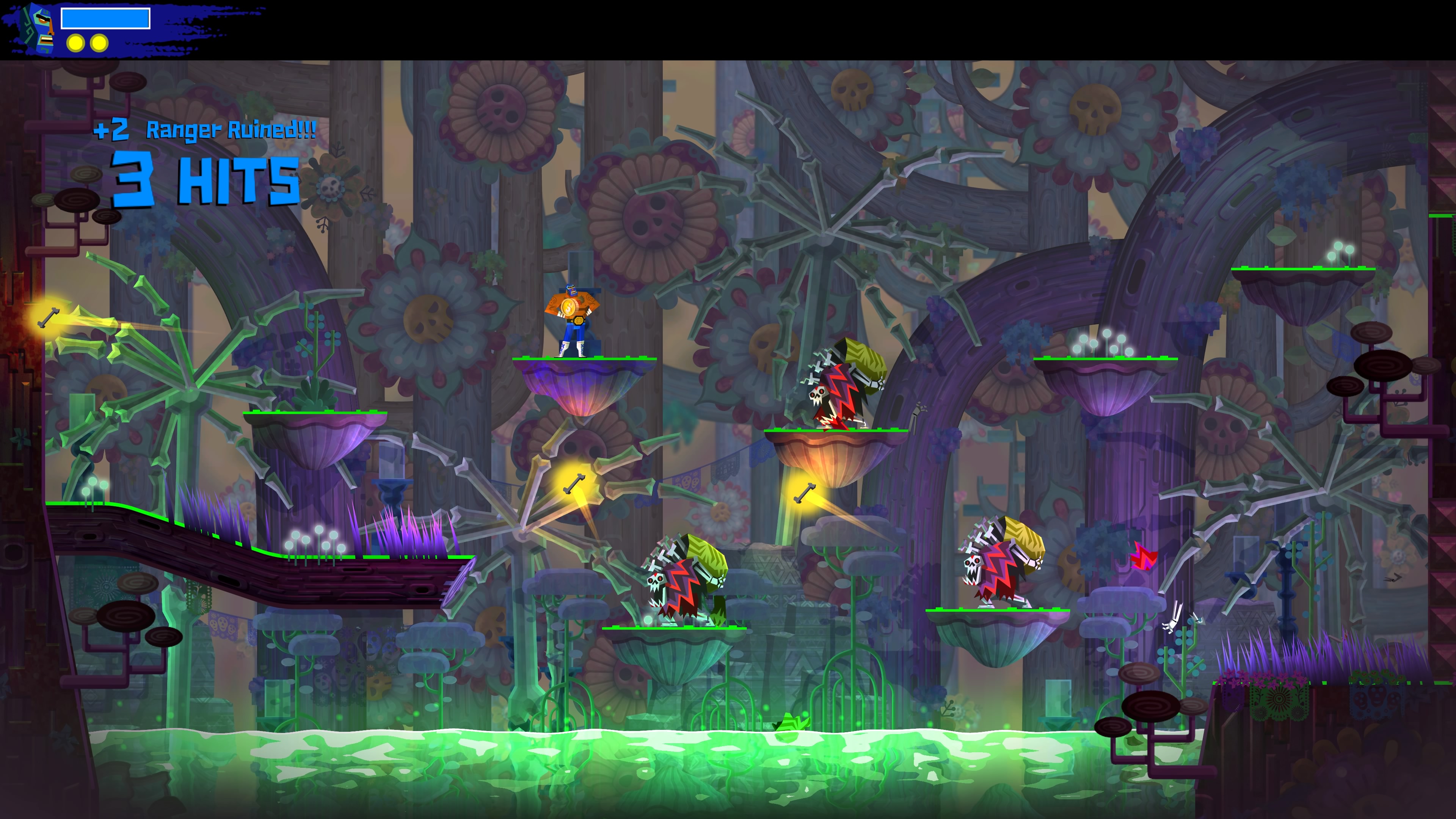 Wśród nowych umiejętności dostępne jest Eagle Boost. Dzięki temu talentowi Juan może wybijać się w powietrzu od specjalnych znaków porozrzucanych po świecie. Działa to trochę na podobnej zasadzie co Bash z gry Ori and the Blind Forest. Z tą różnicą, że w Guacamelee! 2 wymaga odrobinę więcej zręczności ze strony gracza.