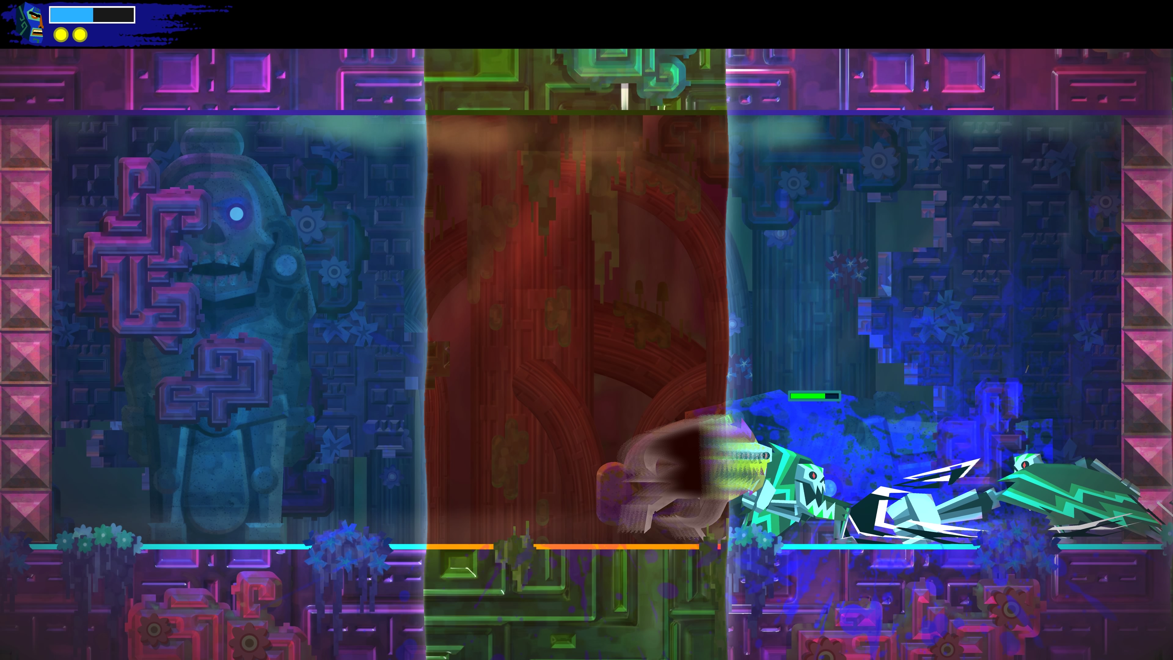 Twórcy pozwolili sobie również poszaleć w kwestii mechaniki przenikania między wymiarami. Dostępne są tu sekcje, w których niektóre przedmioty, przeciwnicy czy nawet platformy dostępne są tylko w określonym wymiarze, a po ekranie przesuwają się strefy międzywymiarowe. Okazać się może, że będziemy musieli tak skakać by przeskoczyć na platformę, której jeszcze chwilę temu nie widzieliśmy.