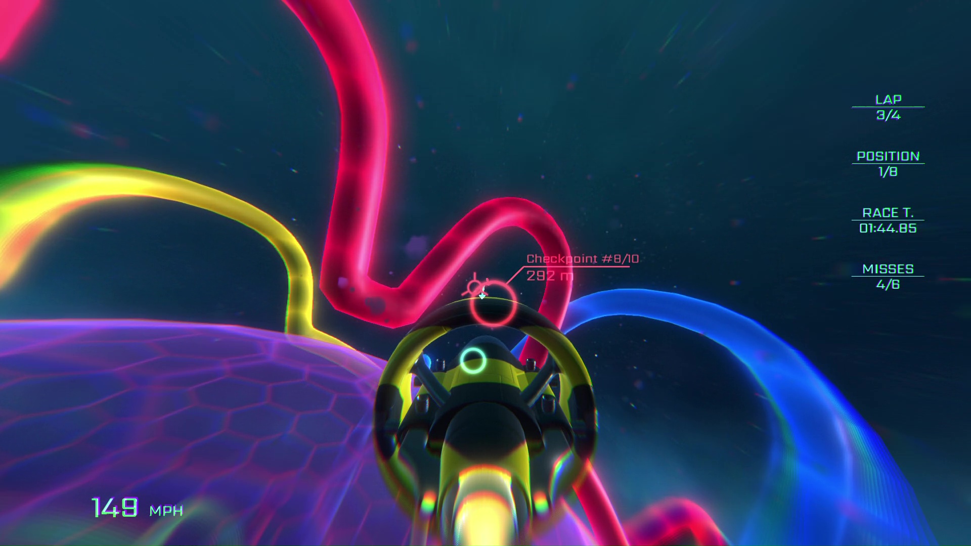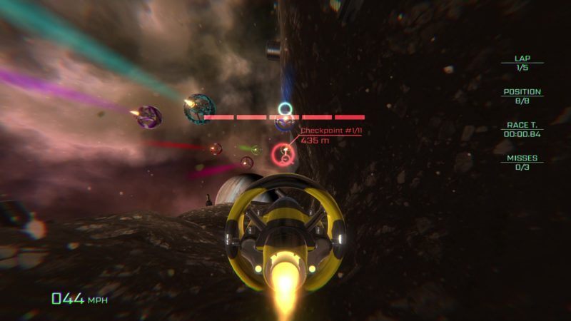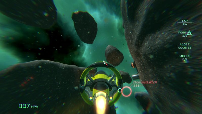Do dyspozycji gracza oddano tutaj trzy tryby rozgrywki. Podstawowym z nich jest pojedynczy wyścig, w którym ścigamy się przeciwko 7 kontrolowanym przez AI przeciwnikom. Każdy tor wymaga od nas pokonania określonej liczby punktów kontrolnych, do których docierać możemy dowolną trasą. Zwycięstwo odblokowuje kolejną z łącznie 8 map. Wyższe poziomy trudności nie wpływają zbyt mocno na umiejętności przeciwników. Ograniczają one maksymalną liczbę popełnionych przez nas błędów – wraz z wzrostem poziomu możemy pomijać mniej punktów kontrolnych oraz musimy pokonywać większą liczbę okrążeń.