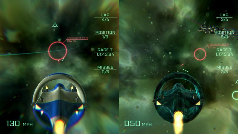 Ostatni tryb rozgrywki to multiplayer, pozwalający na wspólną zabawę maksymalnie 2 graczom. Do rozgrywki wystarcza pojedynczy Joy-Con, dzięki czemu każdy posiadacz konsoli posiada wystarczającą liczbę kontrolerów dla dwóch osób. Wyścigi wówczas odbywają się na identycznych zasadach jak w przypadku pojedynczego wyścigu. Spory problem związany z trybem wieloosobowym tkwi jednak w sterowaniu. To nie jest Mario Kart, gdzie każdy bez problemu może dołączyć do wyścigu i zająć sensowną pozycję. Nauka kierowania statku w VSR: Void Space Racing zajmuje nieco czasu, dołączając od tak ciężko pokonać nawet AI.