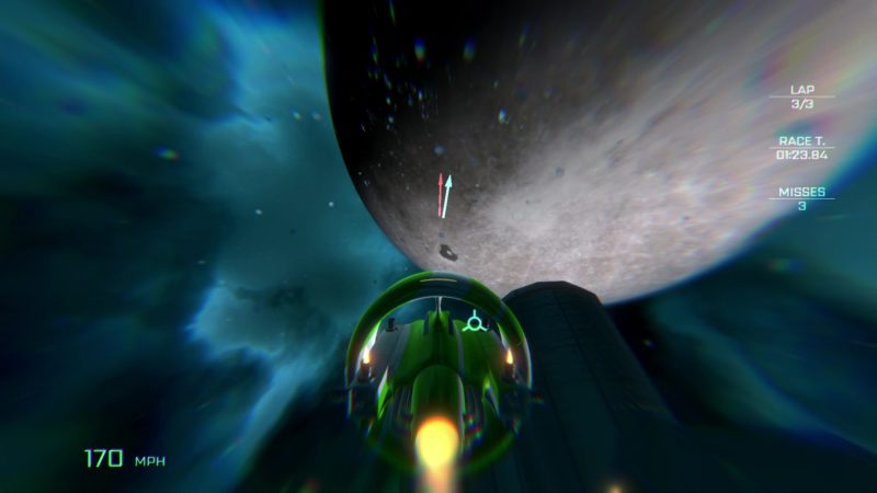 VSR: Void Space Racing pozwala nam zasiąść za sterami jednego z trzech statków kosmicznych i wziąć udział w nieco nietypowych wyścigach. Ważnym elementem rozgrywki jest bowiem zupełny brak grawitacji, mocno wpływający na sposób kierowania pojazdem. Choć na pierwszy rzut oka sterowanie jest bardzo proste (oparto je na gałce i czterech przyciskach, odpowiadających za gaz, hamulec i obracanie statku), niecodzienna fizyka wymaga poświęcenia paru wyścigów na naukę kierowania statkiem.