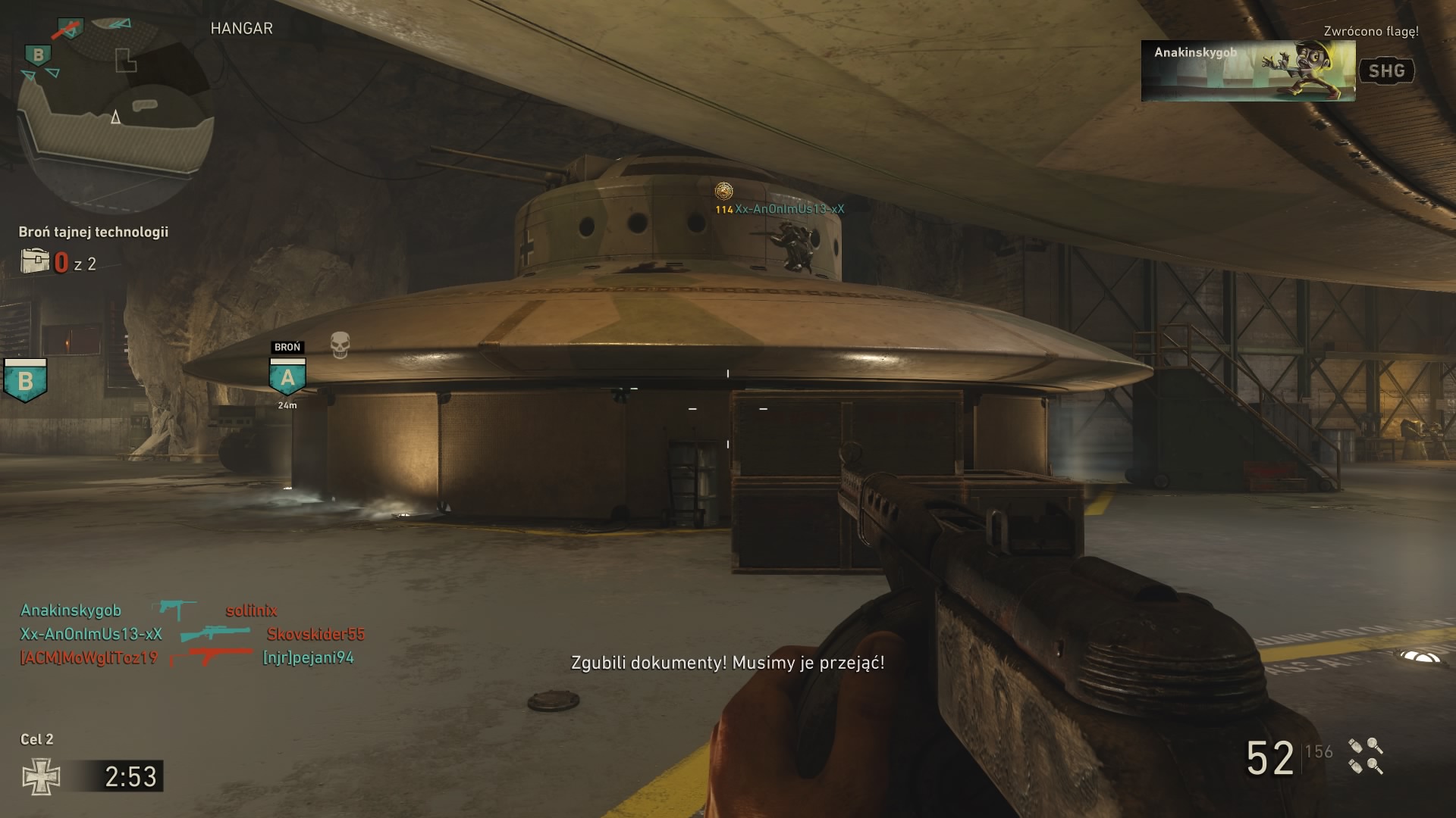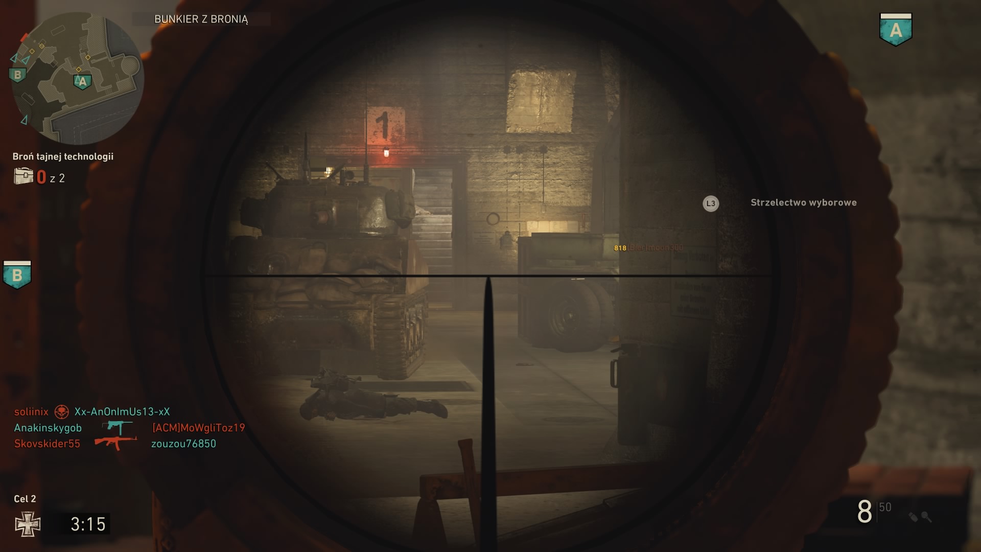 W bunkrze następuje przystanek i bierzemy się za wypełnienie drugiego celu, jakim jest wykradnięcie dokumentów z pomieszczenia A i B. Małym utrudnieniem jest lokalizacja dwóch punktów A i B, trzeba się odpowiednio podzielić, aby znaleźć dokumenty, wykraść je i zanieść do czołgu. W bunkrze wchodzą do gry… super moce! Moja fascynacja tą operacją właśnie sięgnęła poziomu zero. Na respach są rozmieszczone skrzynki z kolorowymi suplementami. Możemy w nich znaleźne działko Tesli, miecz (totalny absurd!), czy serum, które wzmocnienia obrażenia. Nie rozumiem tych udziwnień, są one tak bardzo nie potrzebne w grze, która nawiązuje do drugiej wojny światowej. Owszem, naziści eksperymentowali na ludziach, ale nie w taki sposób, jak to Sledgehammer Games przedstawiło w czwartym DLC.