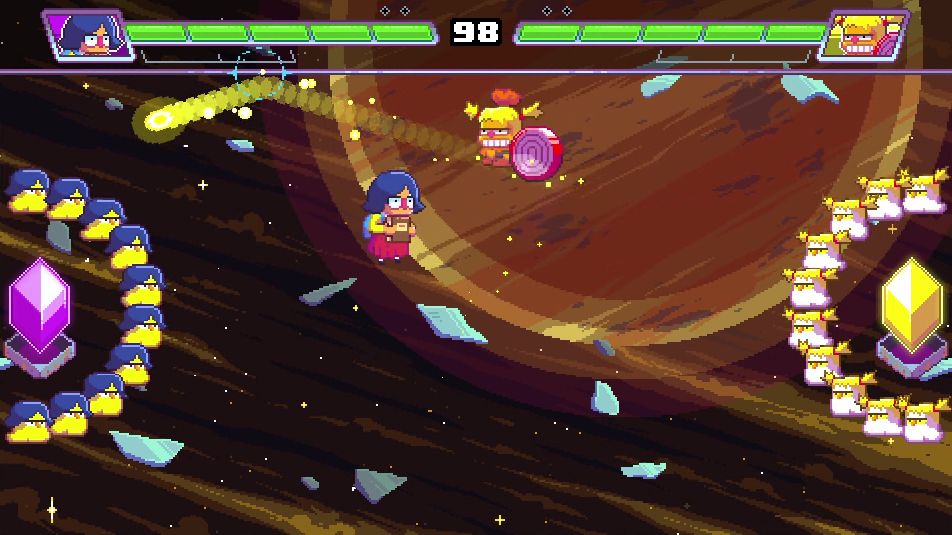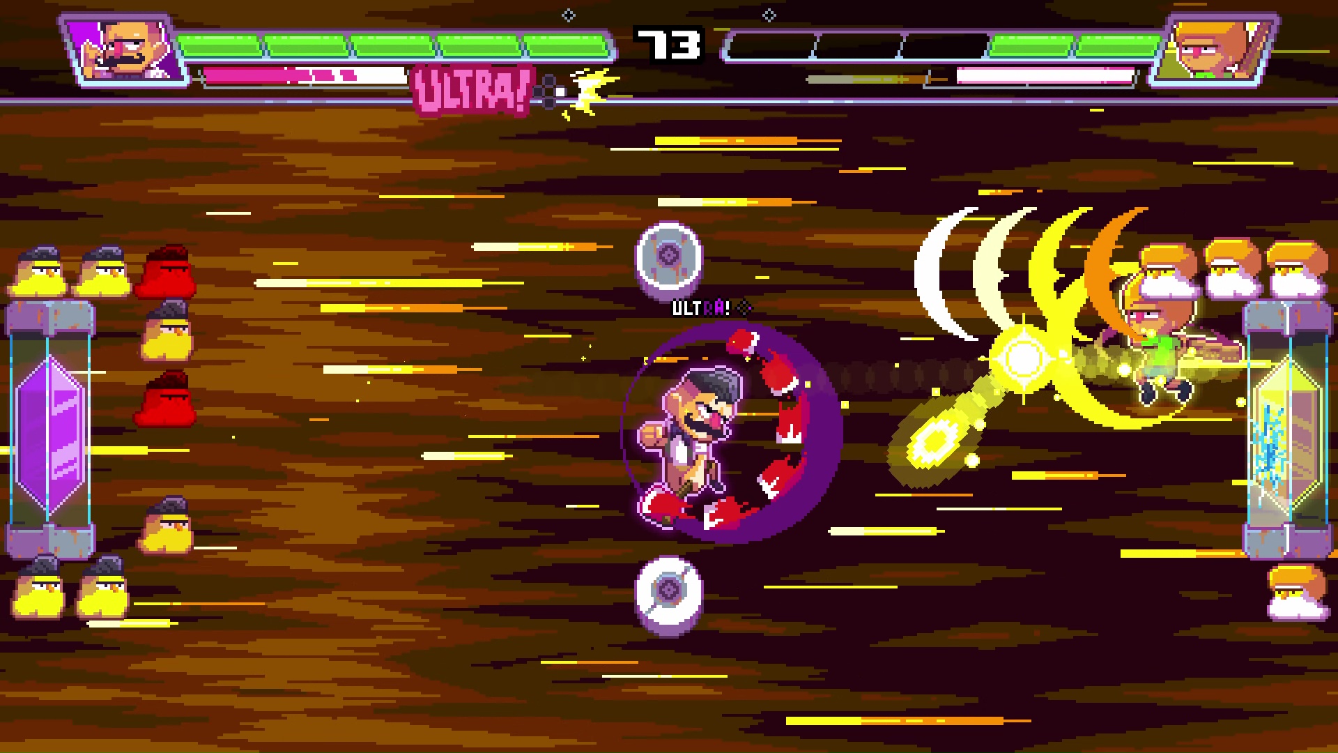 Ultra Space Battle Brawl na konsoli Nintendo Switch działa bez większych problemów. Sterowanie sprawdza się dobrze, a podczas rozgrywki tytuł przez większość czasu utrzymuje stałą płynność. Prosta, pixel-artowa oprawa graficzna wygląda ok. Nie jest to dzieło sztuki, jednak nieźle spełnia swoje zadanie. Ścieżka dźwiękowa jest przyjemna dla ucha.