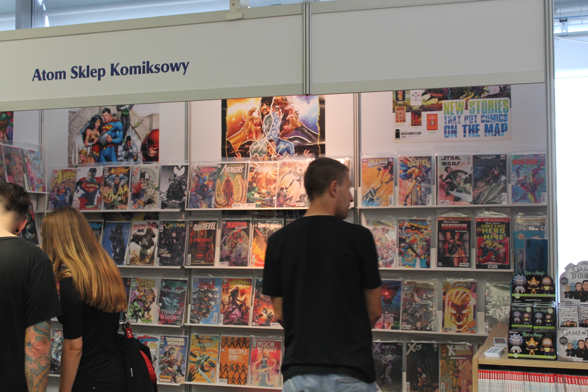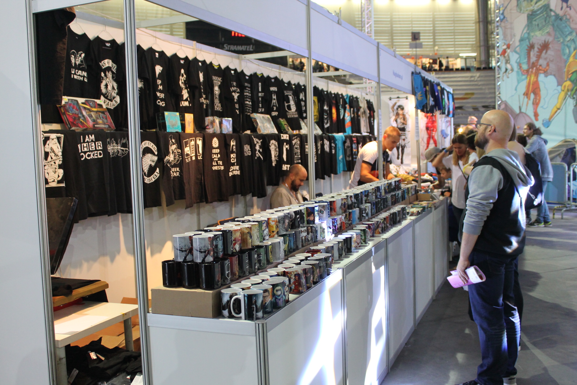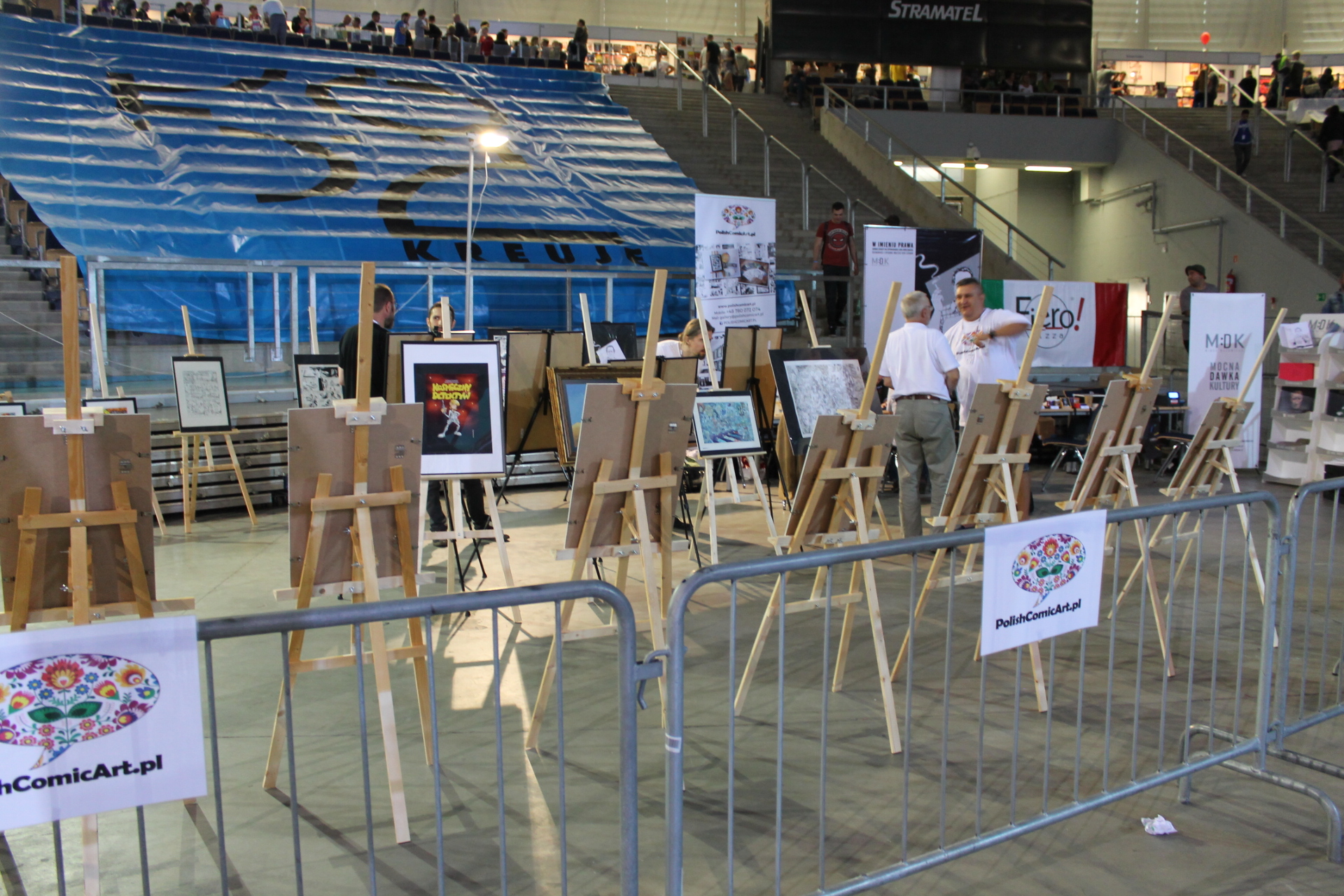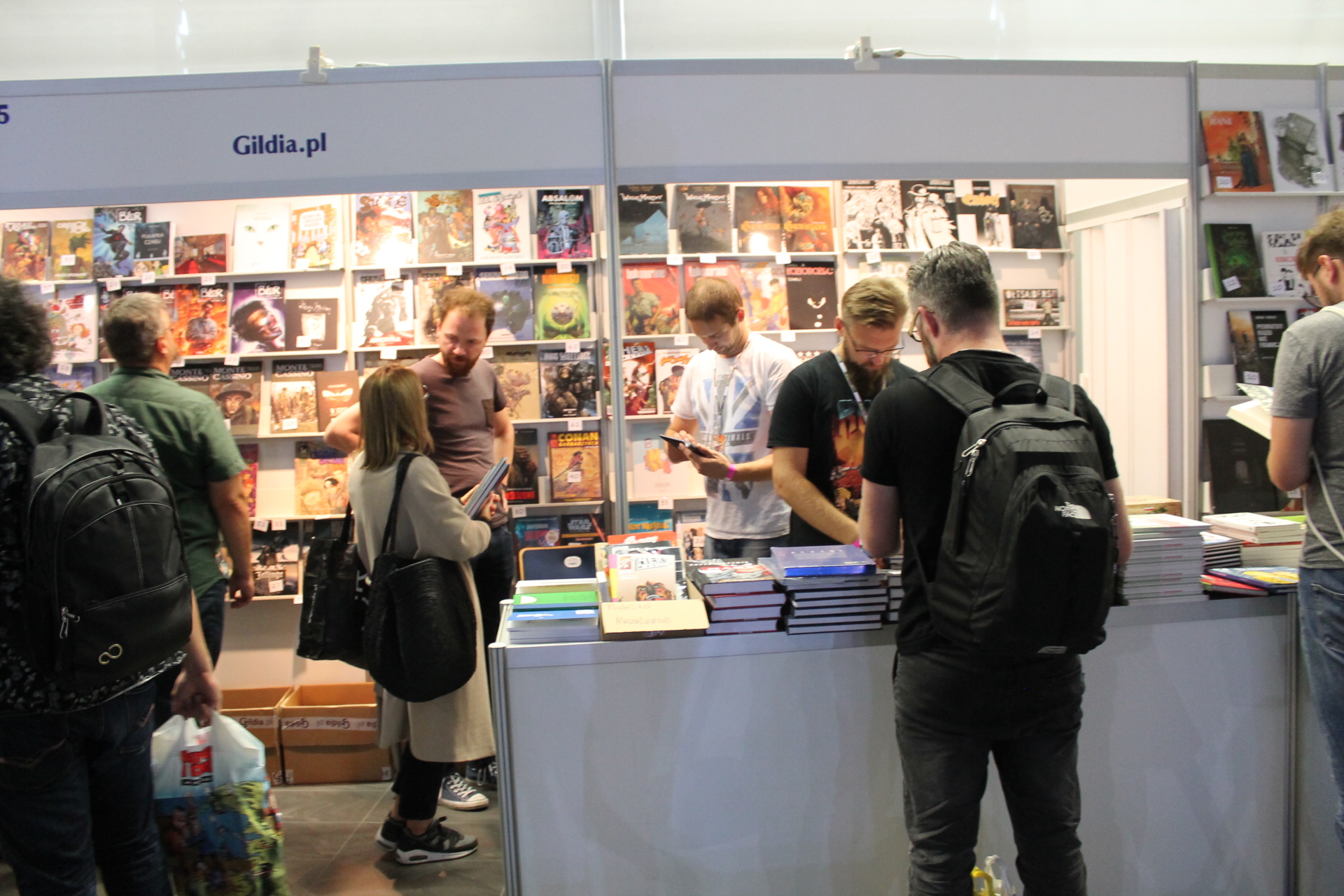 Całość imprezy zaczęła się dla mnie 14 września w piątek. Wyposażony w dobry humor przekroczyłem próg Atlas Areny i poczułem to co zawsze. W powietrzu unosił się zapach komiksów, a z każdej półki albo stoiska zachęcającym wzrokiem spoglądały zeszyty bądź wydania zbiorcze. Wybór był gigantyczny. Od klasycznych opowieści o superbohaterach Marvela, DC czy Vertigo przez komiks europejski, aż po wielkie tomy zawierające grafiki koncepcyjne dla których wiele fanów oddałoby pół dobytku. W tym wszystkim nie zabrakło również azjatyckiego pierwiastka i mangi też dumnie prezentowały się obok swoich zachodnich braci. Gdyby jednak komuś taki wybór komiksów nie wystarczył do zabicia portfela, to tutaj z pomocą przychodziły inne stoiska. A na nich wszystko co może przyjść do głowy fanowi popkultury. Gry wideo w różnych edycjach, figurki wszystkich rozmiarów oraz profesji czy zestawy startowe do bitewniaków takich jak Warhammer. Poza tym koszulki, kubki, gry planszowe, elementy wystroju wnętrz takie jak kielichy prosto z krainy wikingów. Jednym słowem festiwal nikomu nie pozwalał wyjść z portfelem, w którym było coś więcej niż powietrze.