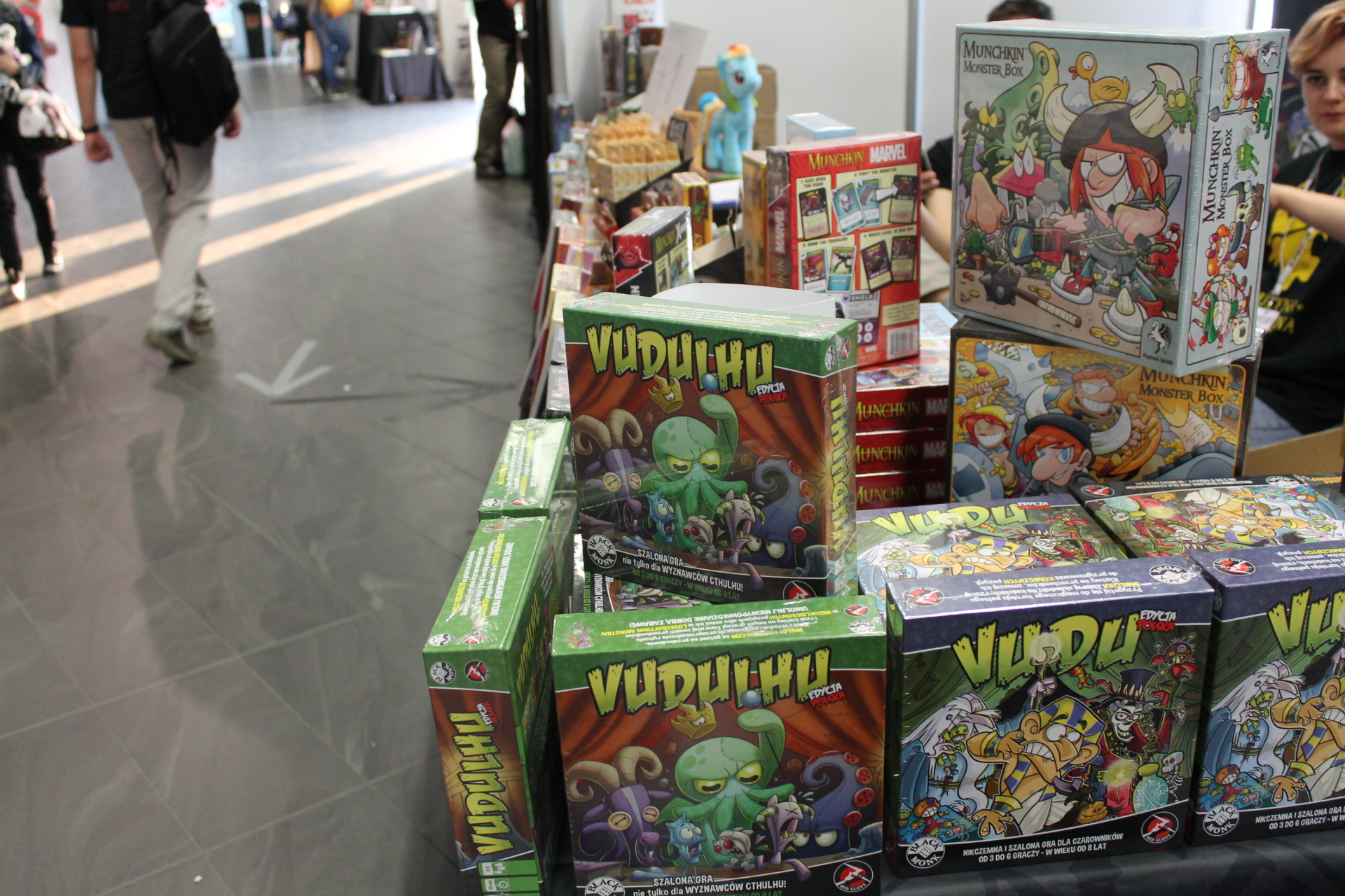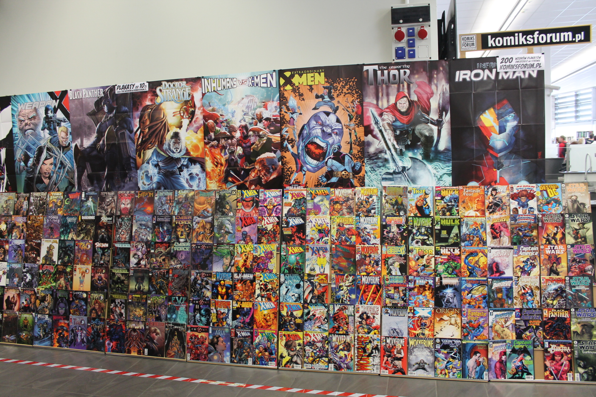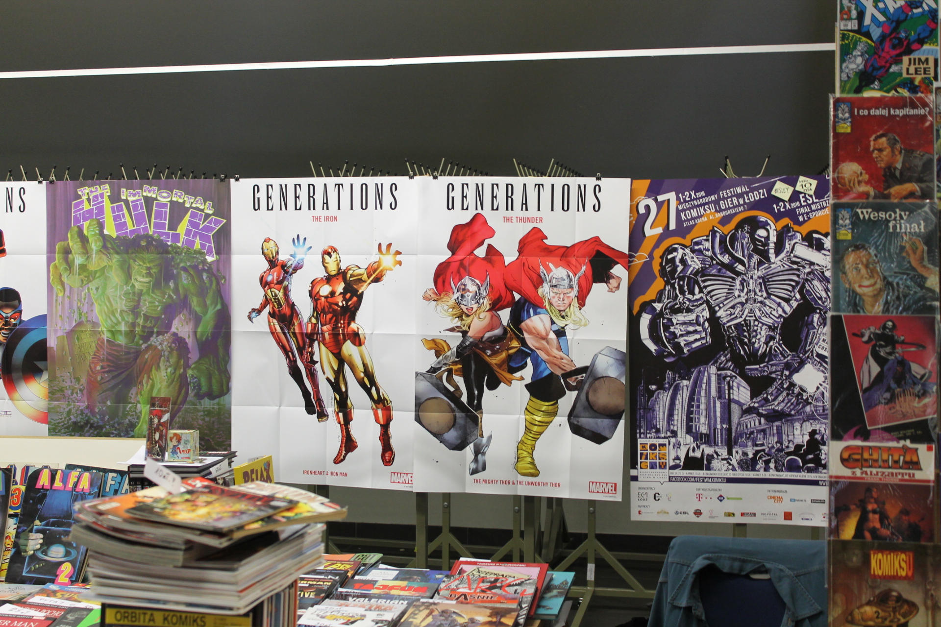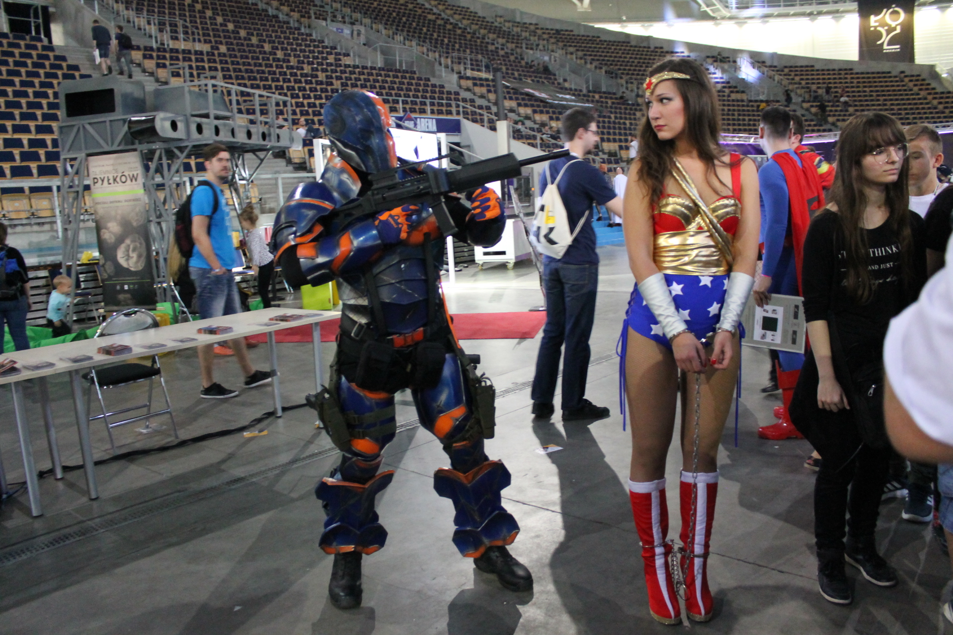 Całość imprezy zaczęła się dla mnie 14 września w piątek. Wyposażony w dobry humor przekroczyłem próg Atlas Areny i poczułem to co zawsze. W powietrzu unosił się zapach komiksów, a z każdej półki albo stoiska zachęcającym wzrokiem spoglądały zeszyty bądź wydania zbiorcze. Wybór był gigantyczny. Od klasycznych opowieści o superbohaterach Marvela, DC czy Vertigo przez komiks europejski, aż po wielkie tomy zawierające grafiki koncepcyjne dla których wiele fanów oddałoby pół dobytku. W tym wszystkim nie zabrakło również azjatyckiego pierwiastka i mangi też dumnie prezentowały się obok swoich zachodnich braci. Gdyby jednak komuś taki wybór komiksów nie wystarczył do zabicia portfela, to tutaj z pomocą przychodziły inne stoiska. A na nich wszystko co może przyjść do głowy fanowi popkultury. Gry wideo w różnych edycjach, figurki wszystkich rozmiarów oraz profesji czy zestawy startowe do bitewniaków takich jak Warhammer. Poza tym koszulki, kubki, gry planszowe, elementy wystroju wnętrz takie jak kielichy prosto z krainy wikingów. Jednym słowem festiwal nikomu nie pozwalał wyjść z portfelem, w którym było coś więcej niż powietrze.