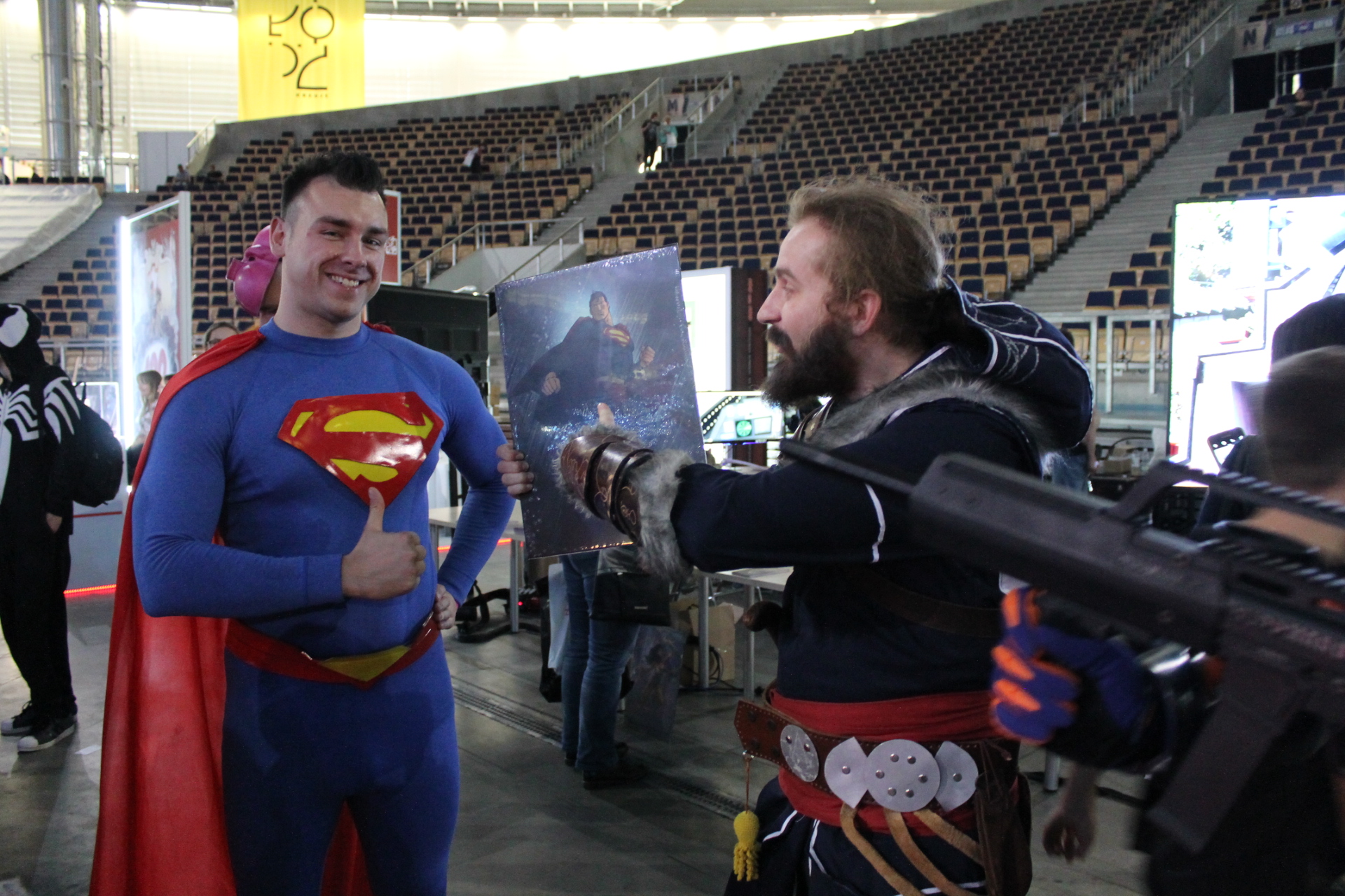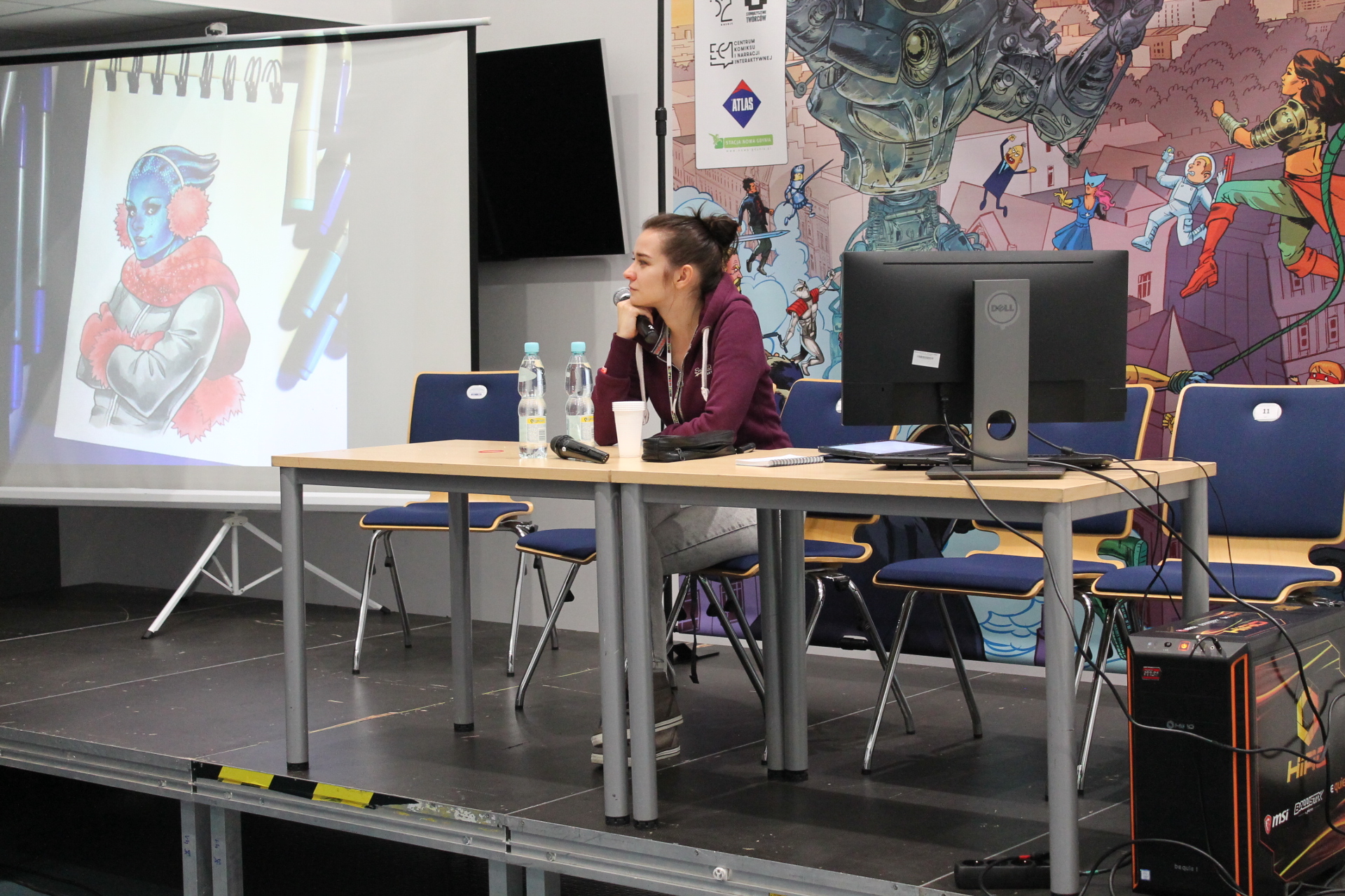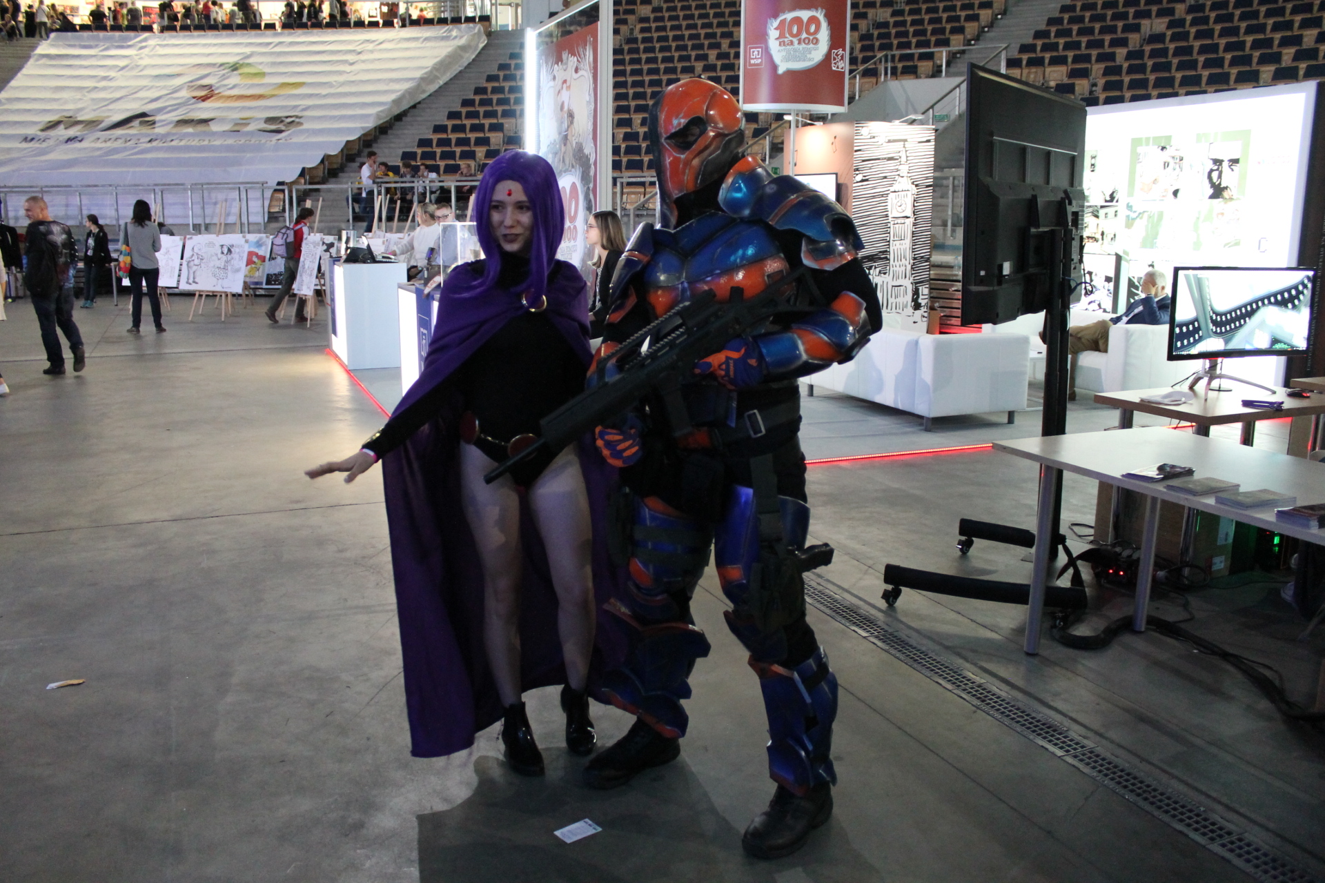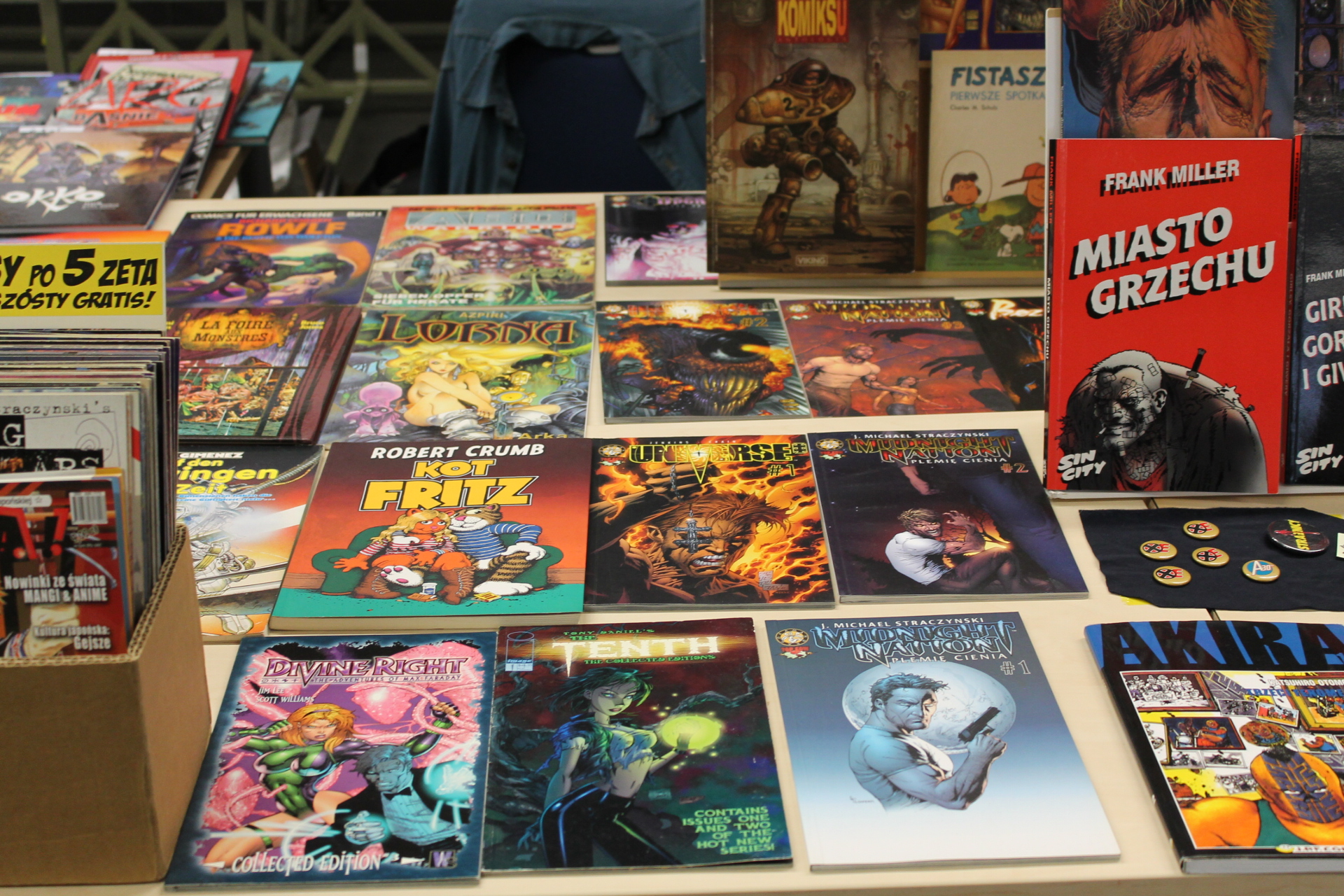 Całość imprezy zaczęła się dla mnie 14 września w piątek. Wyposażony w dobry humor przekroczyłem próg Atlas Areny i poczułem to co zawsze. W powietrzu unosił się zapach komiksów, a z każdej półki albo stoiska zachęcającym wzrokiem spoglądały zeszyty bądź wydania zbiorcze. Wybór był gigantyczny. Od klasycznych opowieści o superbohaterach Marvela, DC czy Vertigo przez komiks europejski, aż po wielkie tomy zawierające grafiki koncepcyjne dla których wiele fanów oddałoby pół dobytku. W tym wszystkim nie zabrakło również azjatyckiego pierwiastka i mangi też dumnie prezentowały się obok swoich zachodnich braci. Gdyby jednak komuś taki wybór komiksów nie wystarczył do zabicia portfela, to tutaj z pomocą przychodziły inne stoiska. A na nich wszystko co może przyjść do głowy fanowi popkultury. Gry wideo w różnych edycjach, figurki wszystkich rozmiarów oraz profesji czy zestawy startowe do bitewniaków takich jak Warhammer. Poza tym koszulki, kubki, gry planszowe, elementy wystroju wnętrz takie jak kielichy prosto z krainy wikingów. Jednym słowem festiwal nikomu nie pozwalał wyjść z portfelem, w którym było coś więcej niż powietrze.